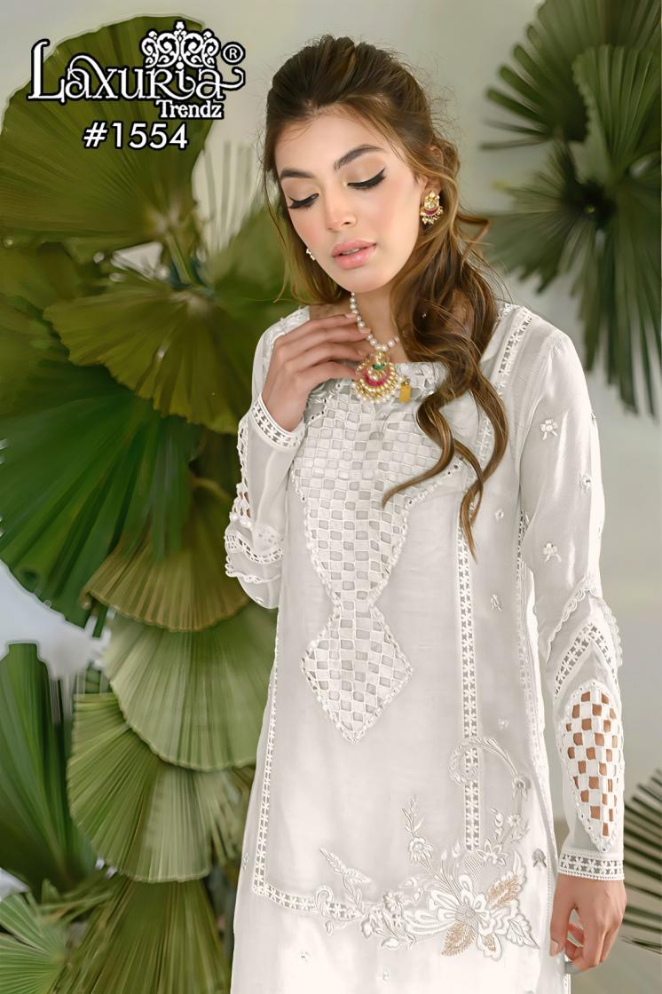 Looking for 1554 BY LAXURIA TRENDZ VICHITRA SIMMER READYMADE SUIT FOR WOMENS Full Catalouge at Best Price? Buy Now 1554 BY LAXURIA TRENDZ VICHITRA SIMMER READYMADE SUIT FOR WOMENS at Wholesale Rate of Rs 8100 with Total 6 Pcs from authroized dealer and supplier of Laxuria Trendz Brand. Cost of Each piece is just only Rs 1350 which is very low and affordable price to resale the product in your retail store. rrgandhi is Surat based Wholesale Supplier & Dealer of Laxuria Trendz Brand. Click on Brand name to Know more about Brand's products.
