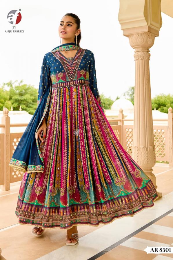 Looking for AR 8501 BY ANJU FAB READYMADE CHINON CHIFFON COMBO ANARKALI GOWN WITH DUPATTA Full Catalouge at Best Price? Buy Now AR 8501 BY ANJU FAB READYMADE CHINON CHIFFON COMBO ANARKALI GOWN WITH DUPATTA at Wholesale Rate of Rs 10200 with Total 4 Pcs from authroized dealer and supplier of A F Kurti Brand. Cost of Each piece is just only Rs 2550 which is very low and affordable price to resale the product in your retail store. rrgandhi is Surat based Wholesale Supplier & Dealer of A F Kurti Brand. Click on Brand name to Know more about Brand's products.