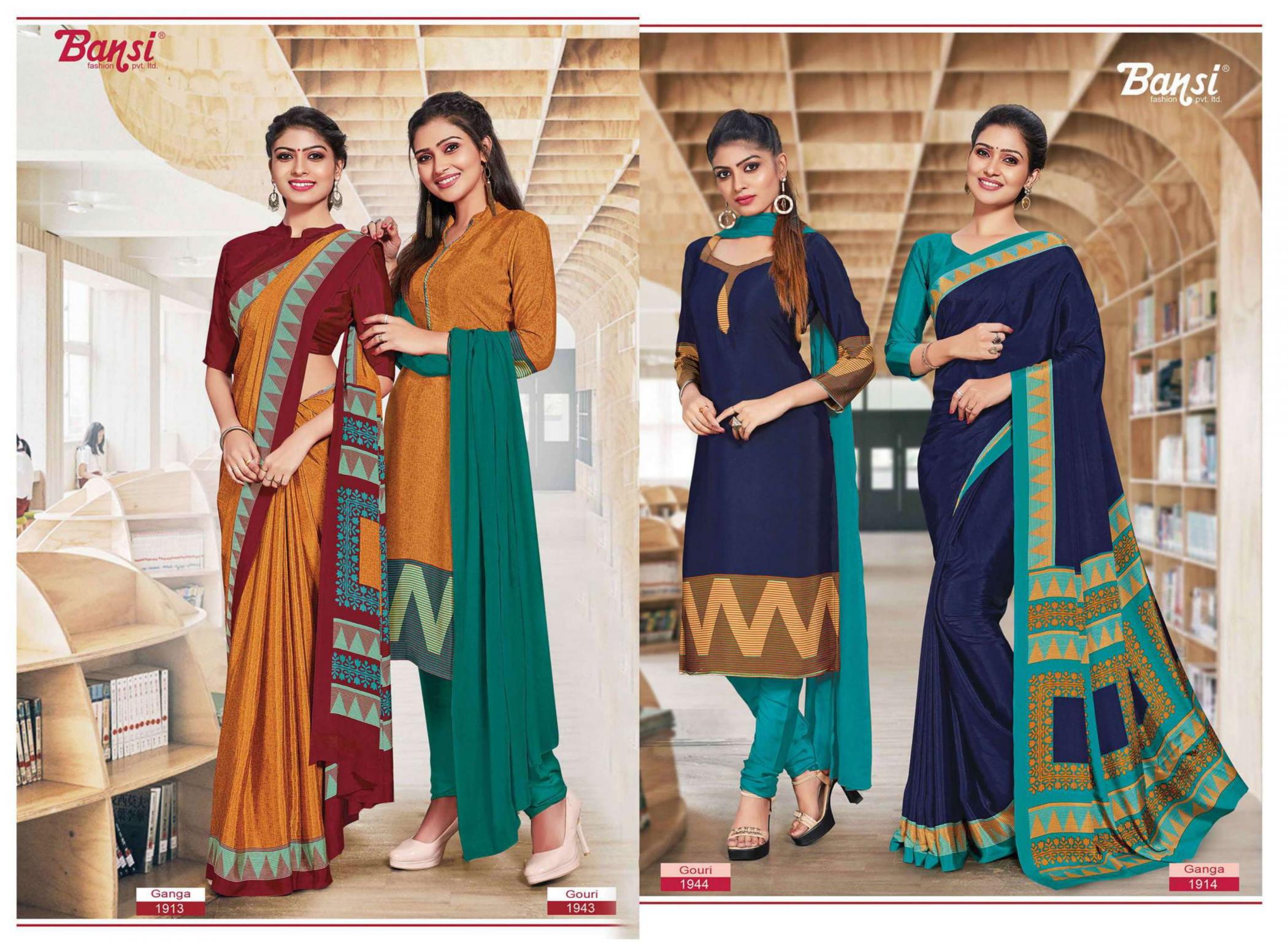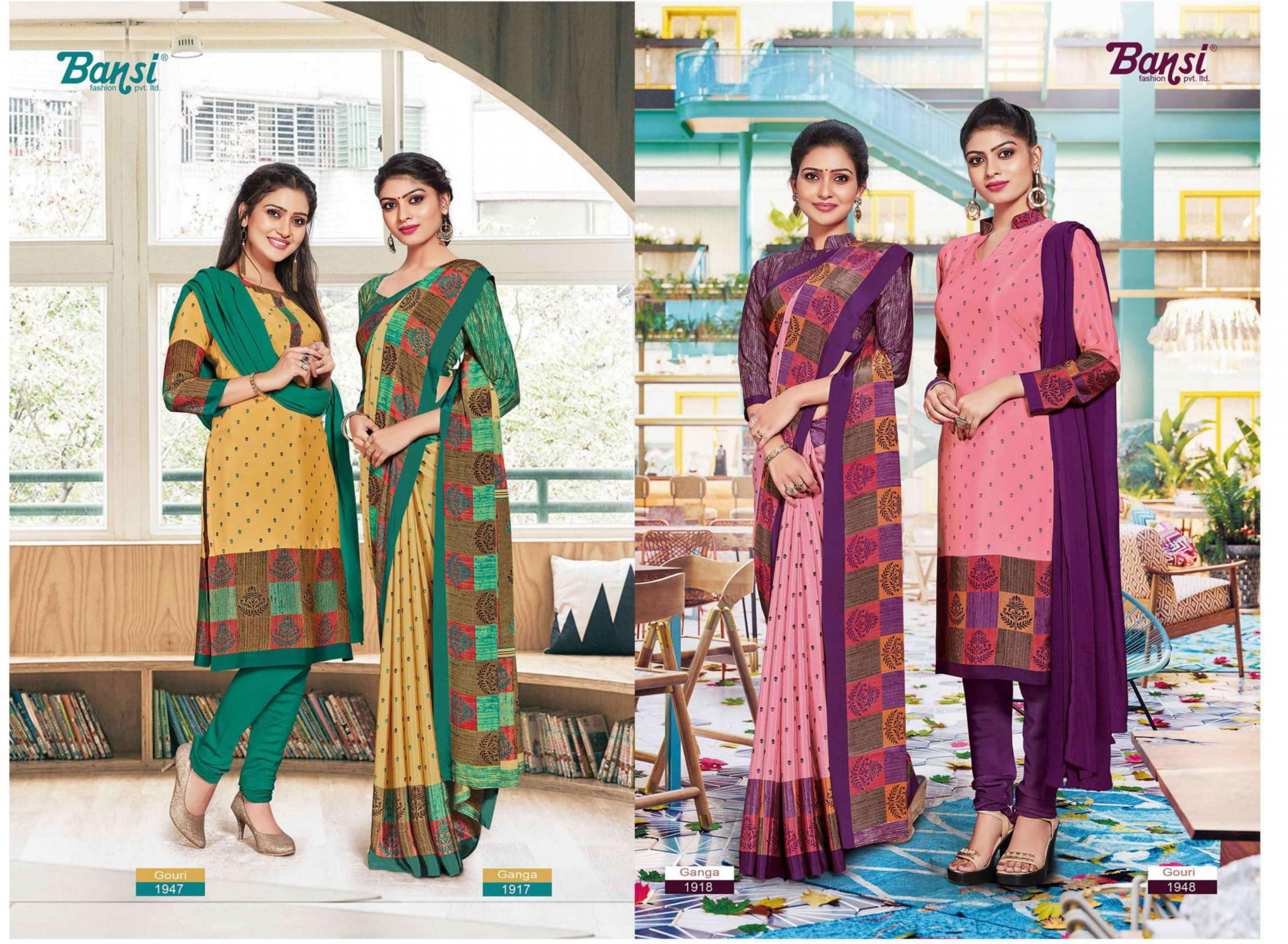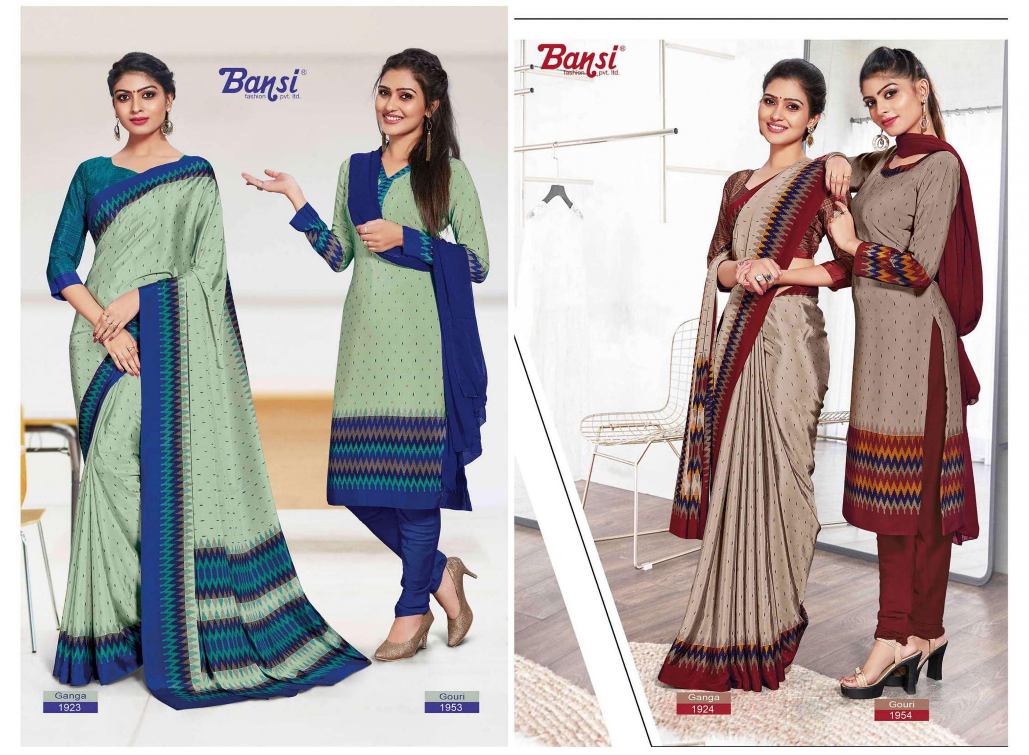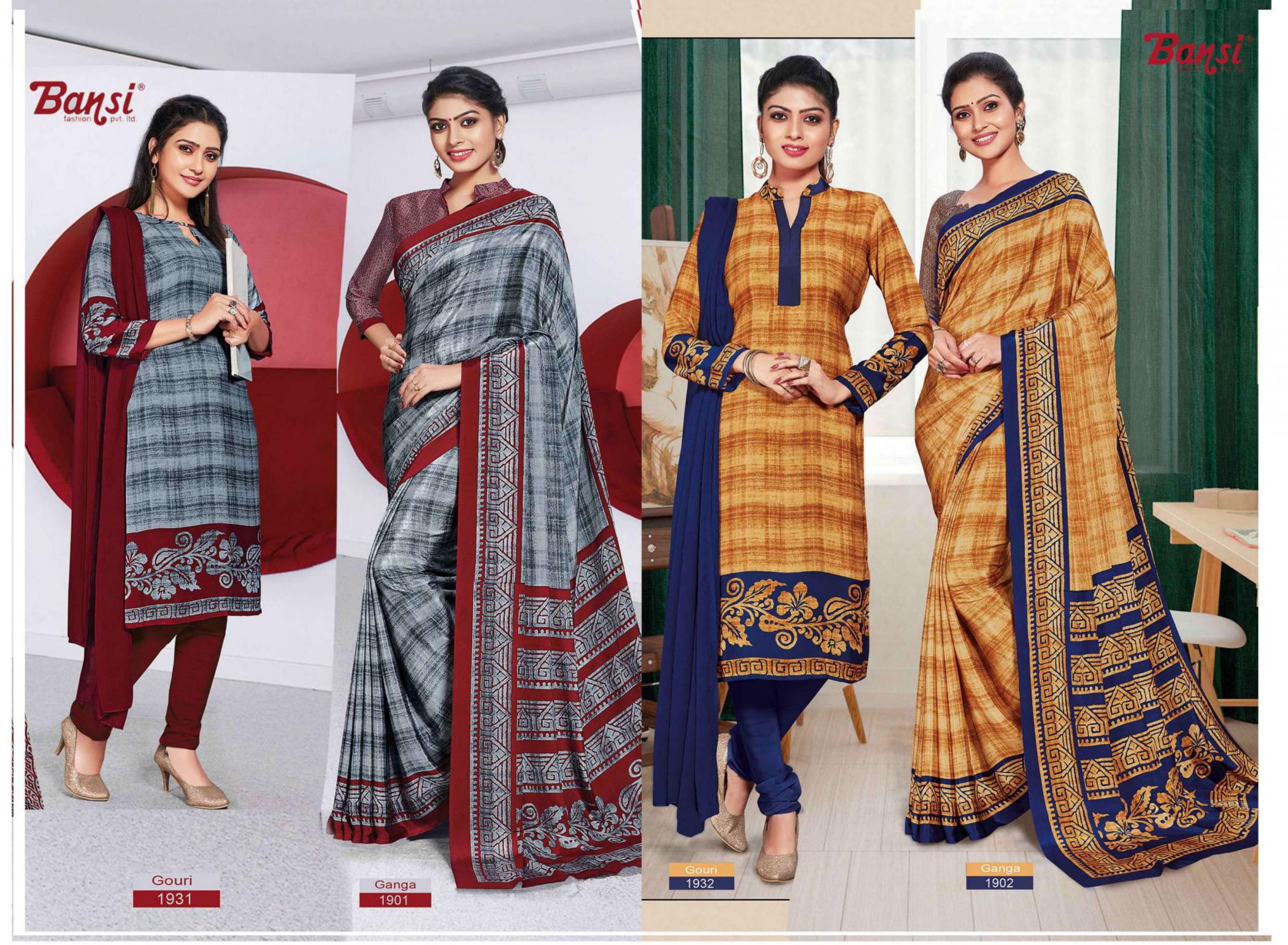 Looking for BANSI GANGA & GOURI FANCY CRAPE COMBO SAREE WITH DRESS Full Catalouge at Best Price? Buy Now BANSI GANGA & GOURI FANCY CRAPE COMBO SAREE WITH DRESS at Wholesale Rate of Rs 15450 with Total 30 Pcs from authroized dealer and supplier of Bansi Fashion Brand. Cost of Each piece is just only Rs 515 which is very low and affordable price to resale the product in your retail store. rrgandhi is Surat based Wholesale Supplier & Dealer of Bansi Fashion Brand. Click on Brand name to Know more about Brand's products.