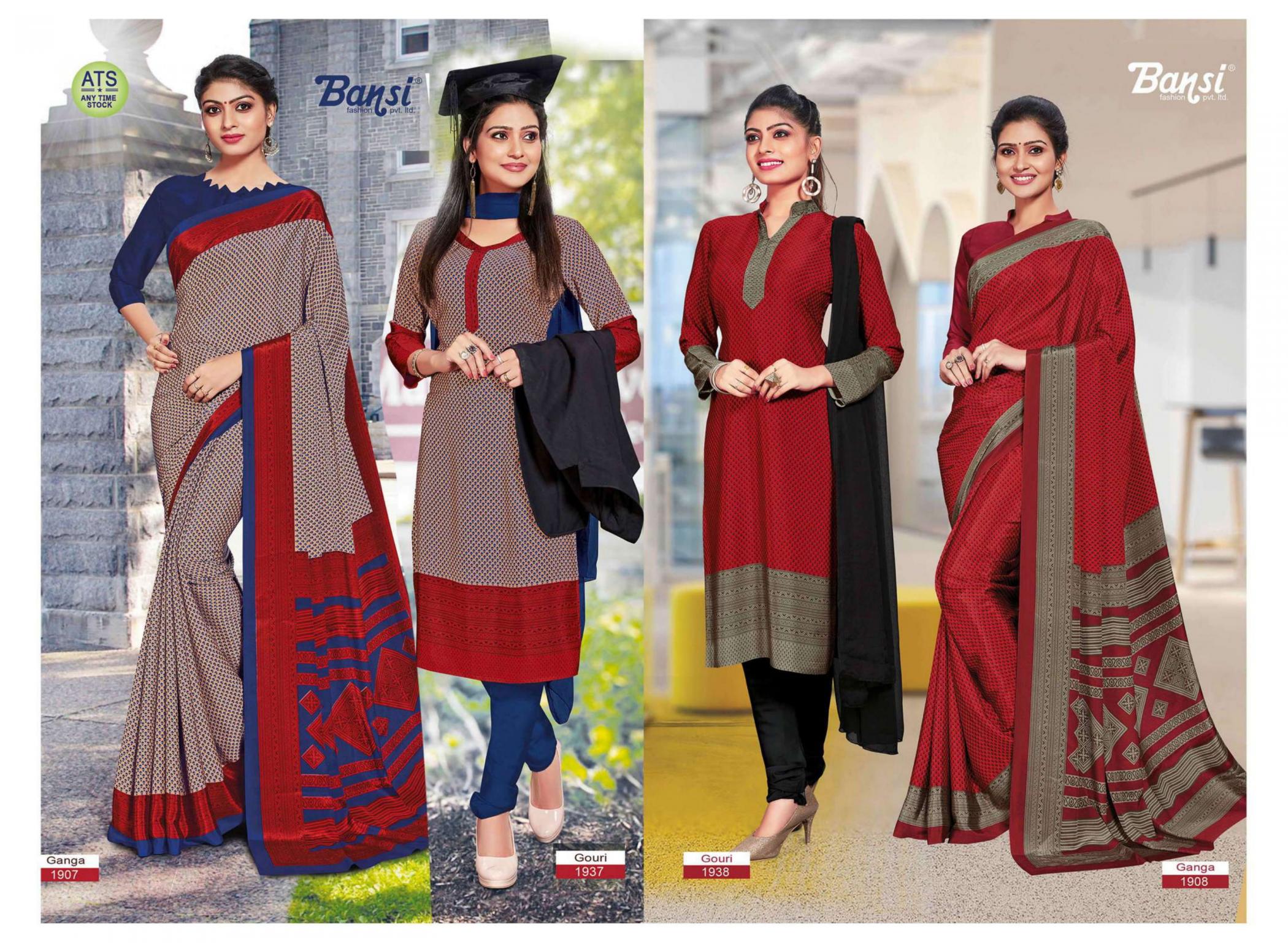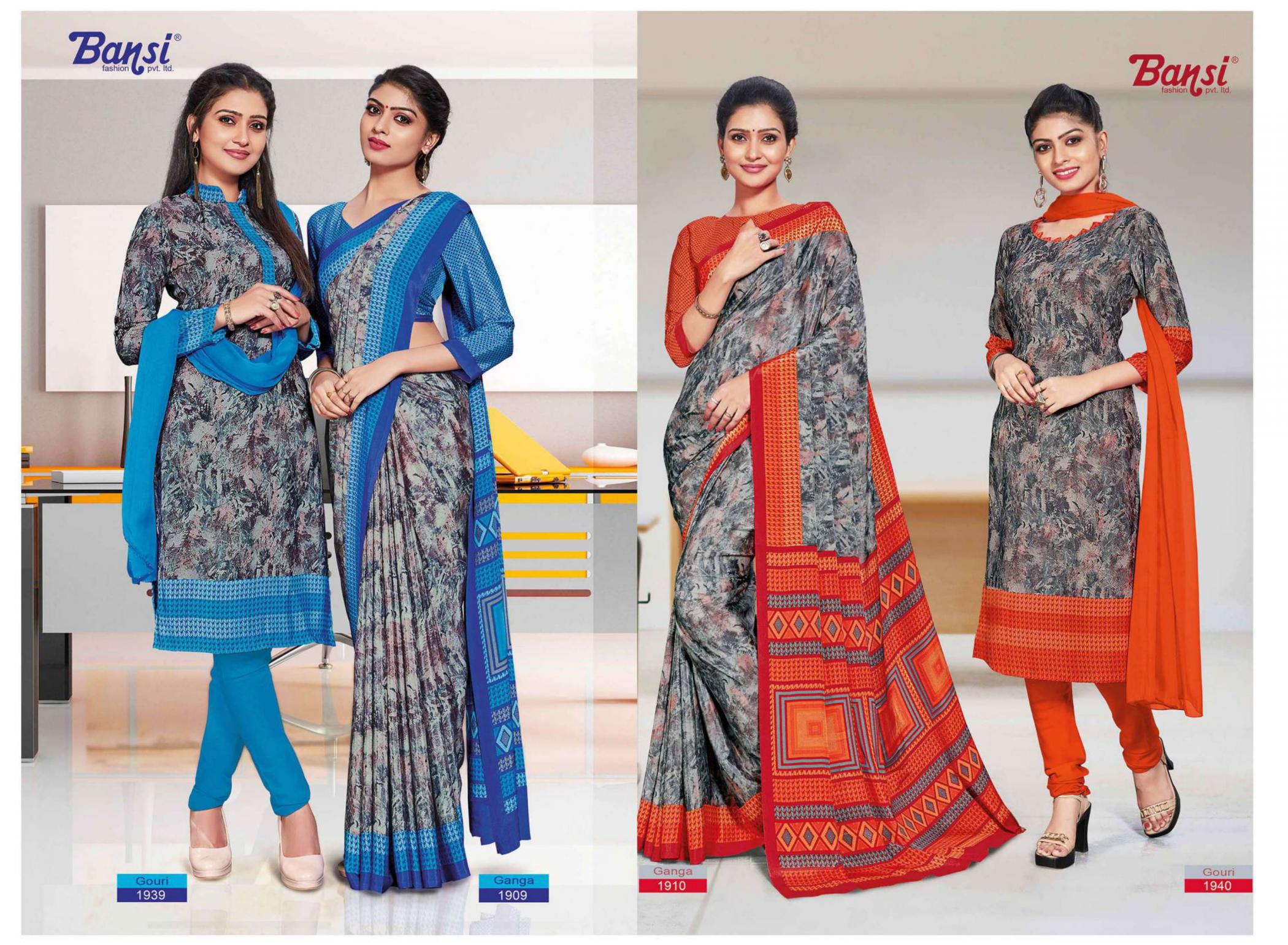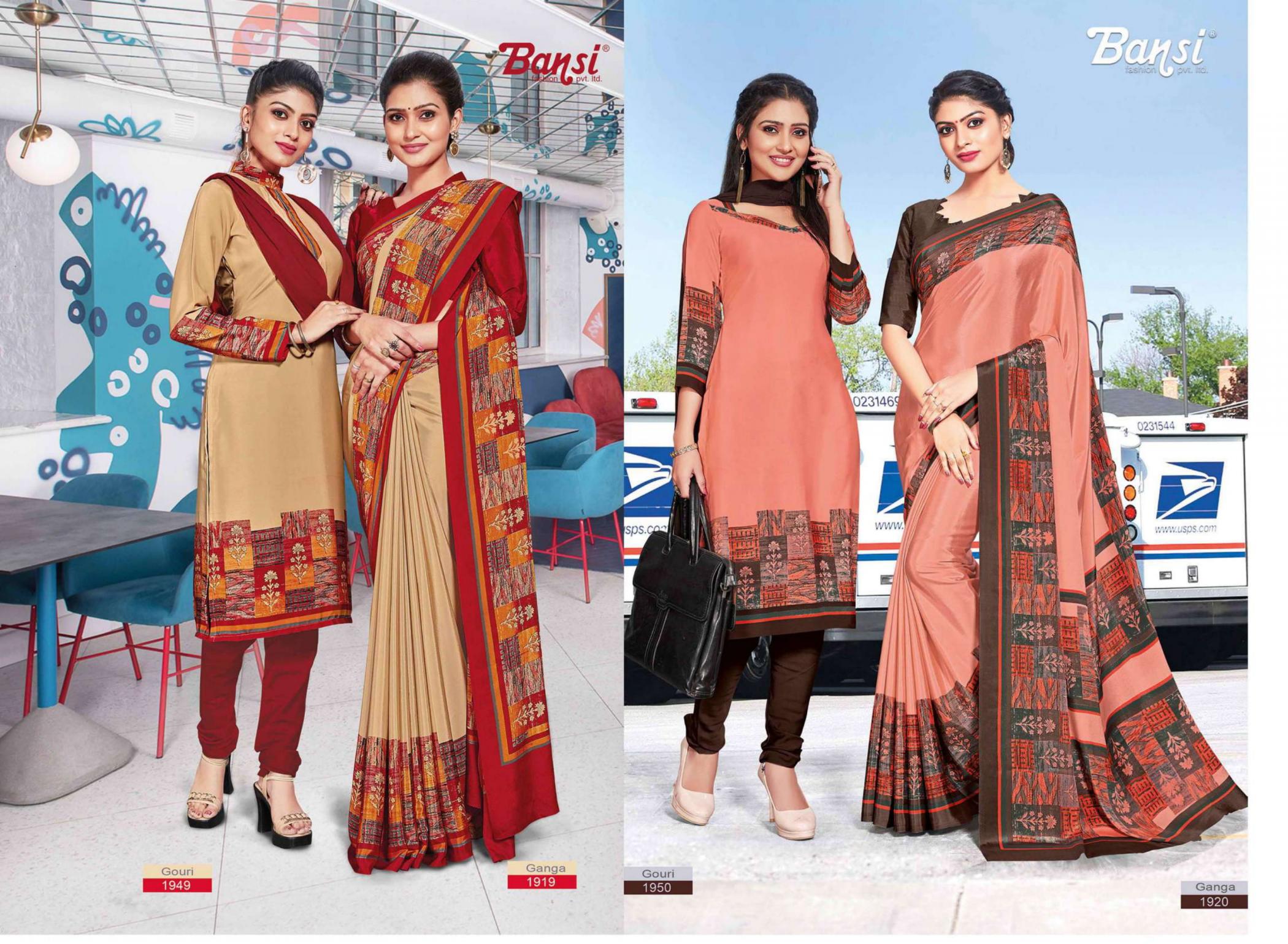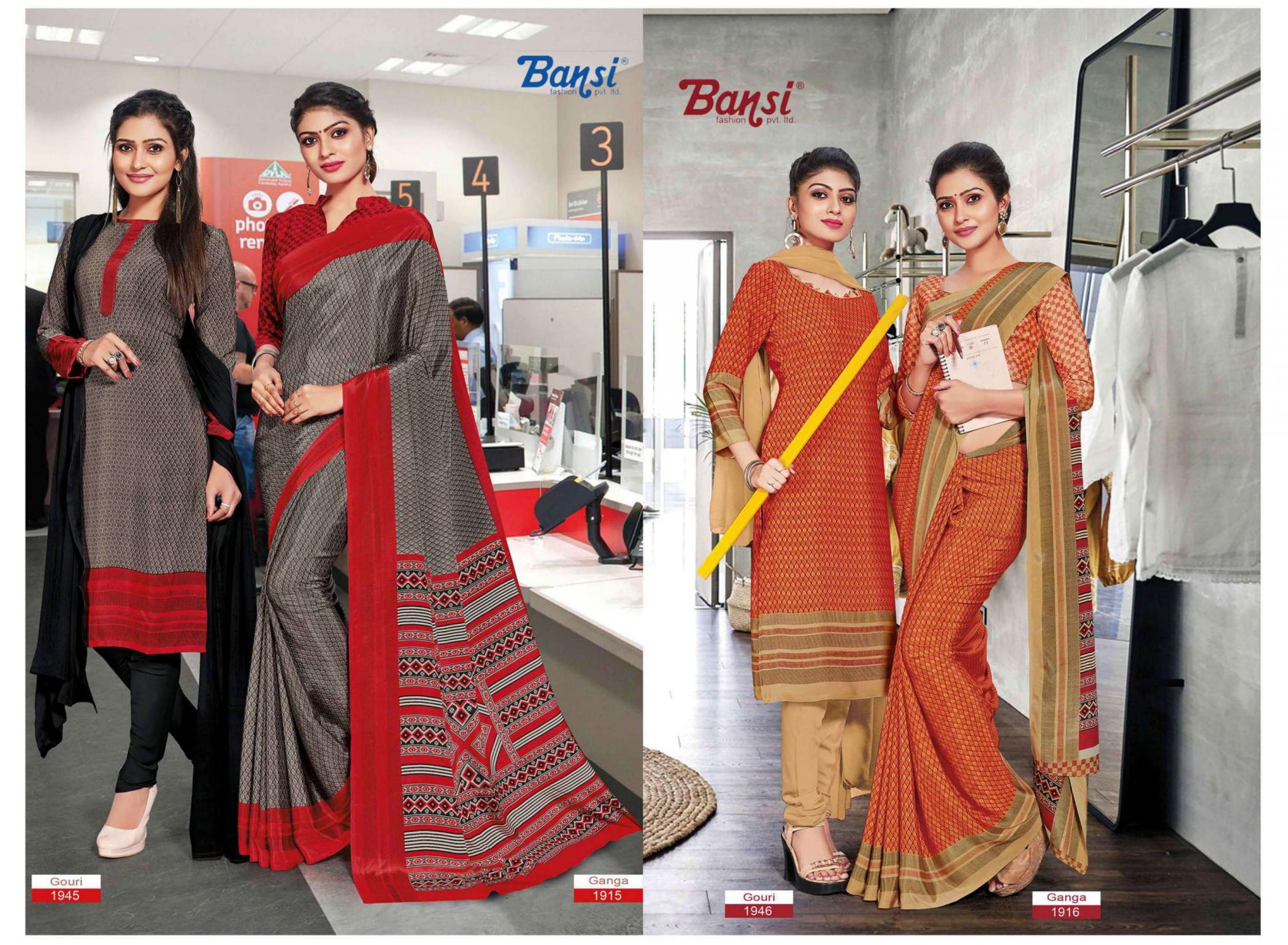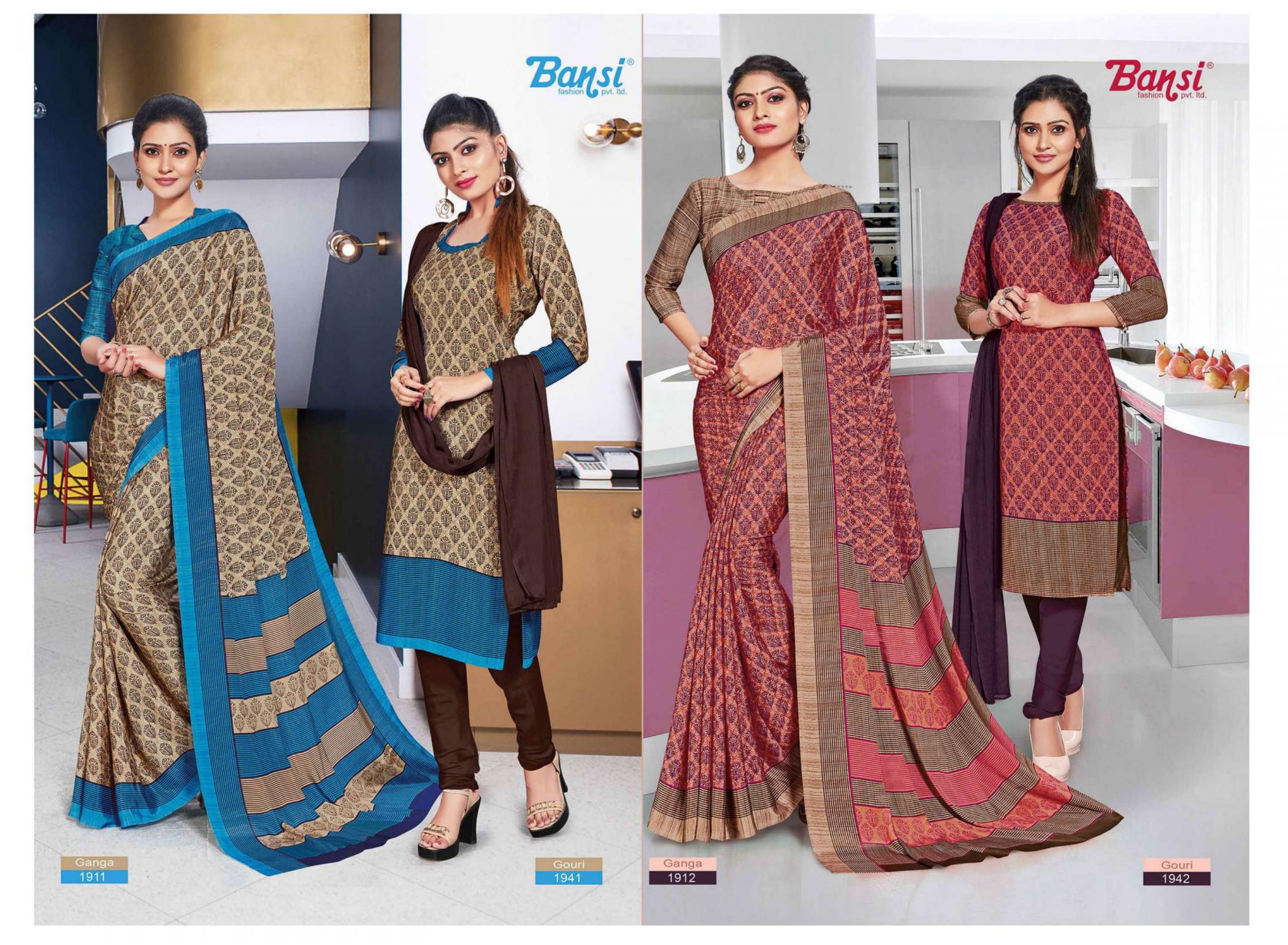 Looking for BANSI GANGA & GOURI FANCY CRAPE COMBO SAREE WITH DRESS Full Catalouge at Best Price? Buy Now BANSI GANGA & GOURI FANCY CRAPE COMBO SAREE WITH DRESS at Wholesale Rate of Rs 15450 with Total 30 Pcs from authroized dealer and supplier of Bansi Fashion Brand. Cost of Each piece is just only Rs 515 which is very low and affordable price to resale the product in your retail store. rrgandhi is Surat based Wholesale Supplier & Dealer of Bansi Fashion Brand. Click on Brand name to Know more about Brand's products.