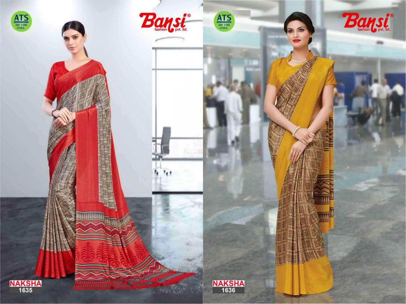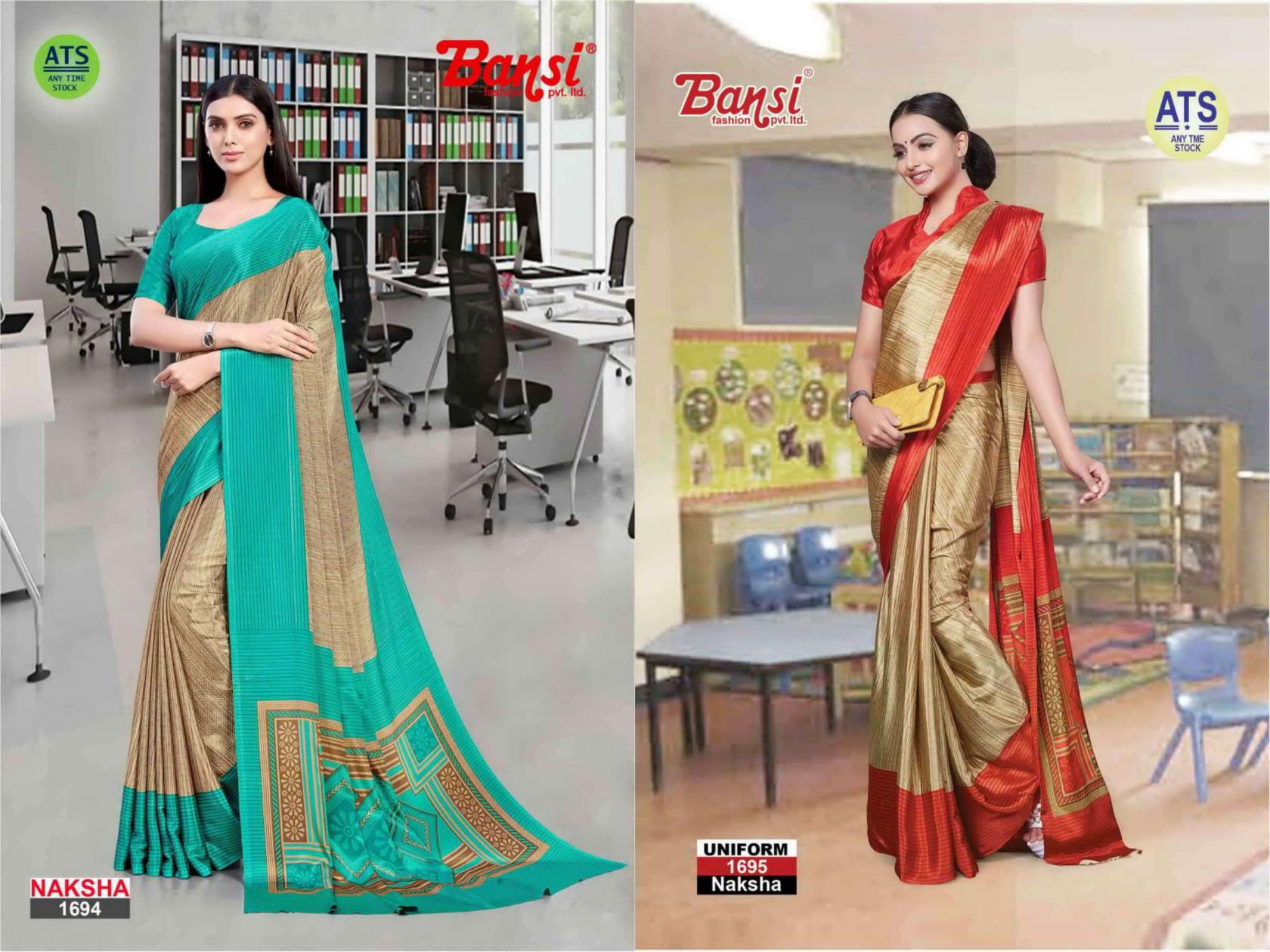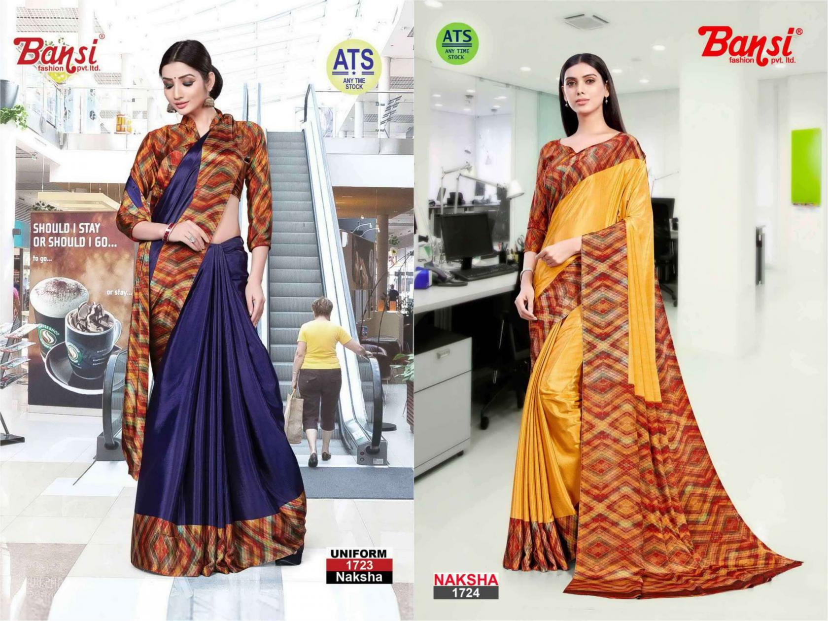 Looking for BANSI NAKSHA AMAZING TURKEY UNIFORM SAREE ONLINE Full Catalouge at Best Price? Buy Now BANSI NAKSHA AMAZING TURKEY UNIFORM SAREE ONLINE at Wholesale Rate of Rs 13950 with Total 30 Pcs from authroized dealer and supplier of Bansi Fashion Brand. Cost of Each piece is just only Rs 465 which is very low and affordable price to resale the product in your retail store. rrgandhi is Surat based Wholesale Supplier & Dealer of Bansi Fashion Brand. Click on Brand name to Know more about Brand's products.