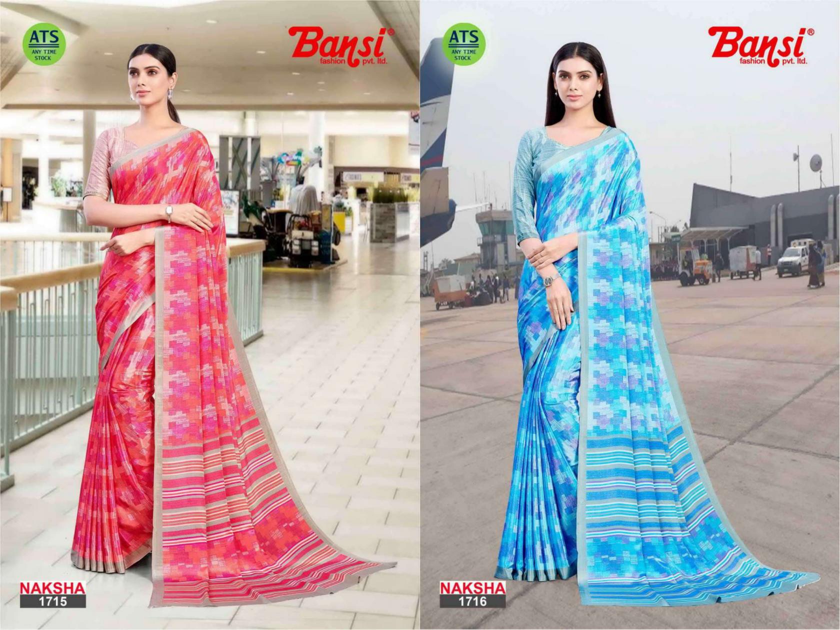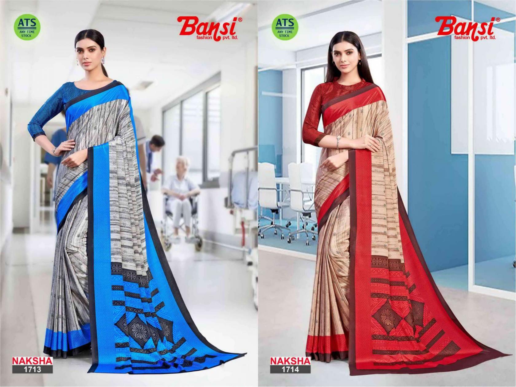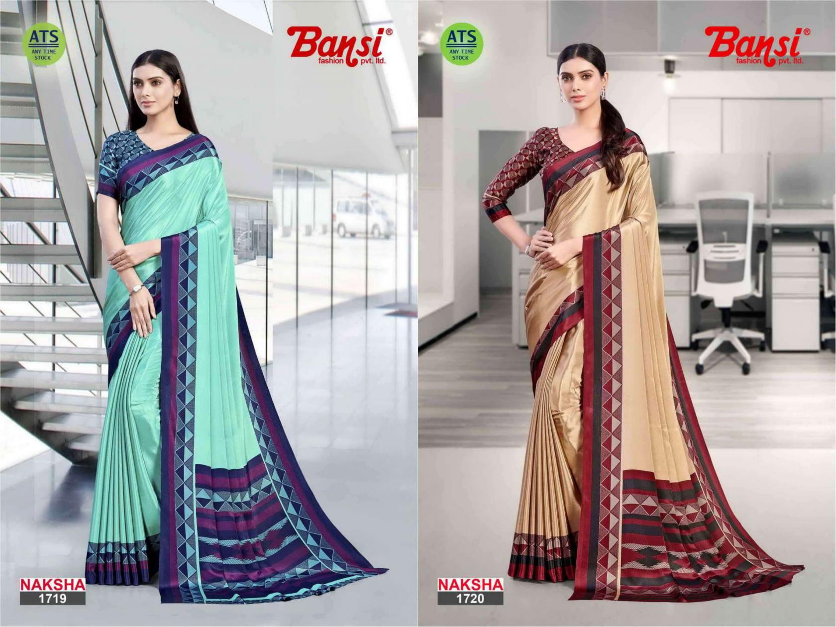 Looking for BANSI NAKSHA AMAZING TURKEY UNIFORM SAREE ONLINE Full Catalouge at Best Price? Buy Now BANSI NAKSHA AMAZING TURKEY UNIFORM SAREE ONLINE at Wholesale Rate of Rs 13950 with Total 30 Pcs from authroized dealer and supplier of Bansi Fashion Brand. Cost of Each piece is just only Rs 465 which is very low and affordable price to resale the product in your retail store. rrgandhi is Surat based Wholesale Supplier & Dealer of Bansi Fashion Brand. Click on Brand name to Know more about Brand's products.