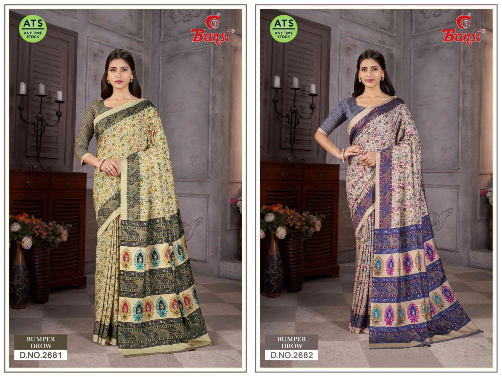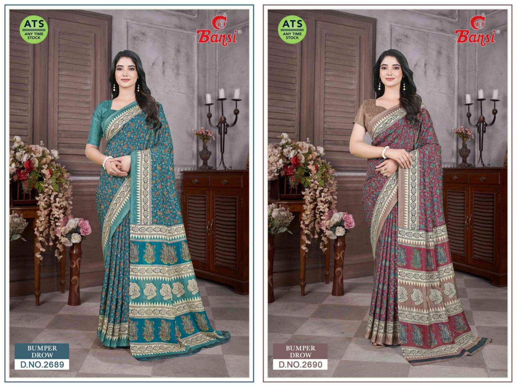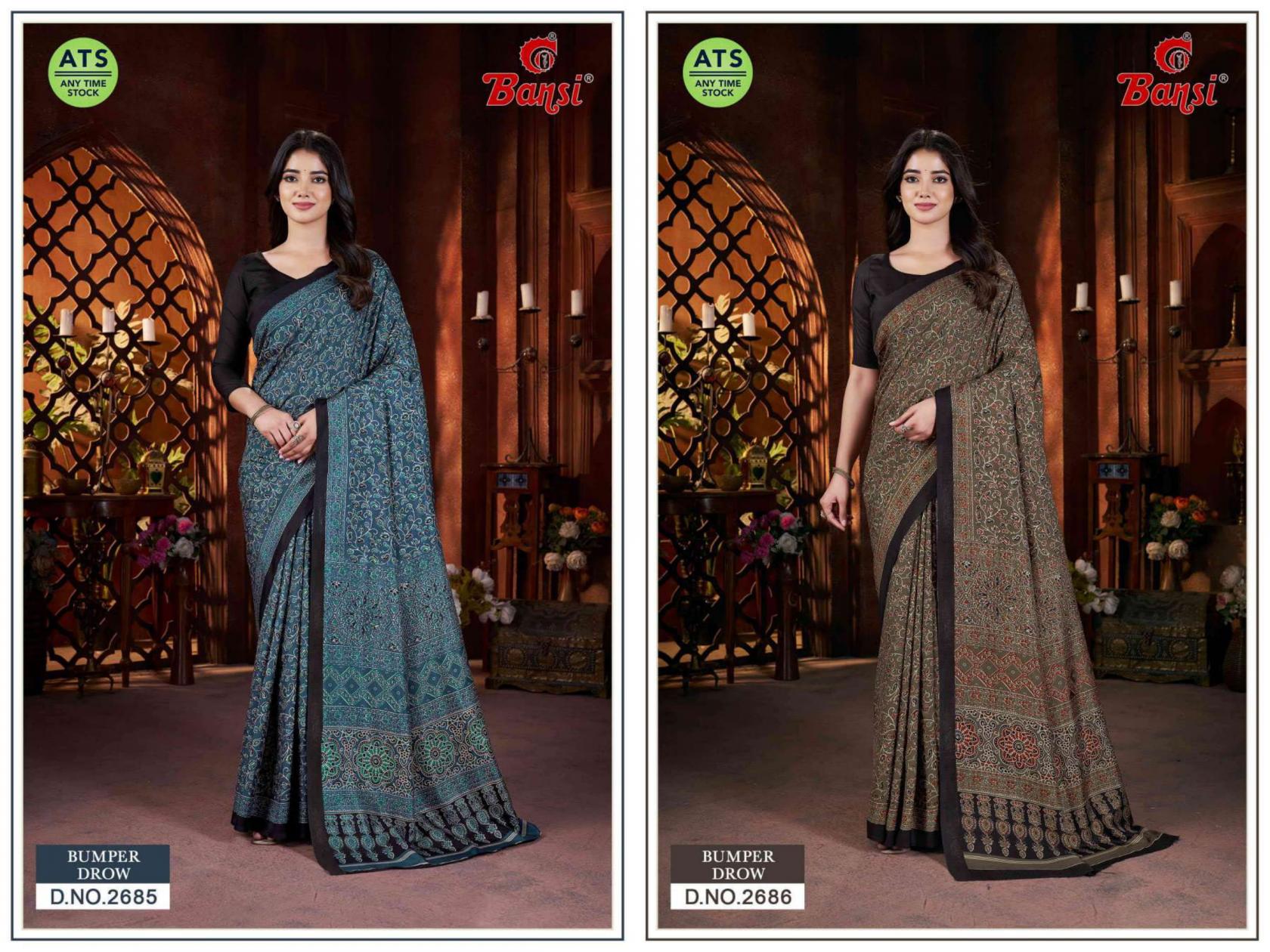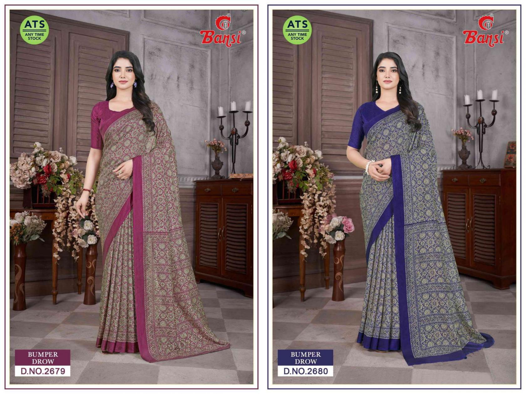 Looking for BUMPER DROW BY BANSI SHOP TRENDY CRACKLE SAREES Full Catalouge at Best Price? Buy Now BUMPER DROW BY BANSI SHOP TRENDY CRACKLE SAREES at Wholesale Rate of Rs 9450 with Total 30 Pcs from authroized dealer and supplier of Bansi Fashion Brand. Cost of Each piece is just only Rs 315 which is very low and affordable price to resale the product in your retail store. rrgandhi is Surat based Wholesale Supplier & Dealer of Bansi Fashion Brand. Click on Brand name to Know more about Brand's products.