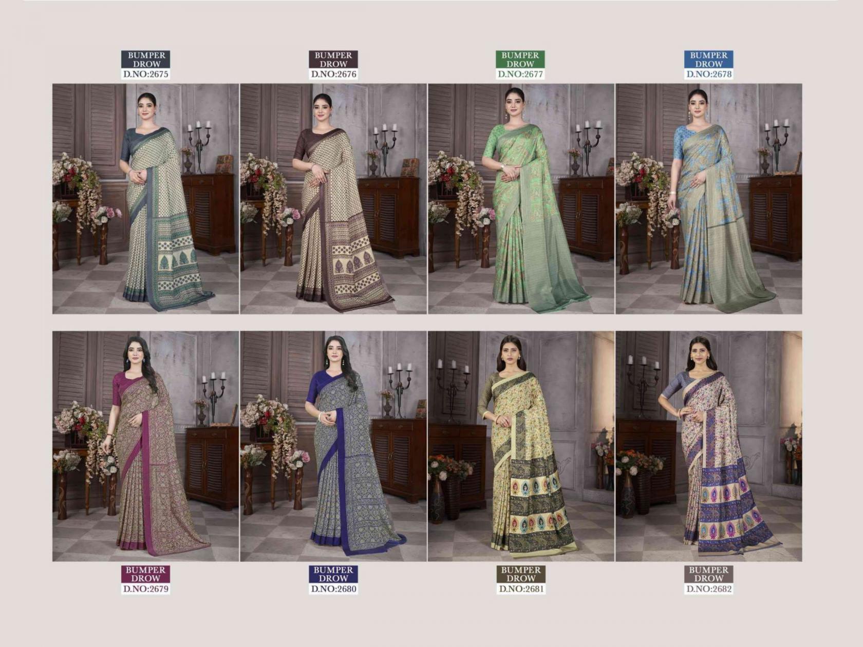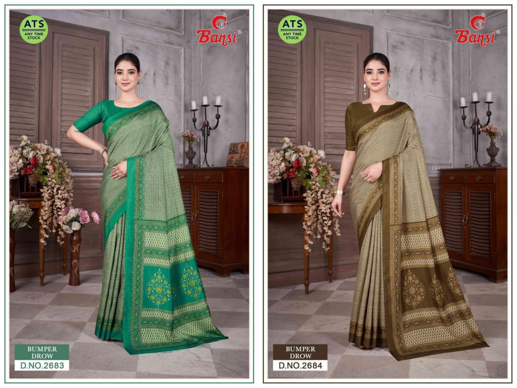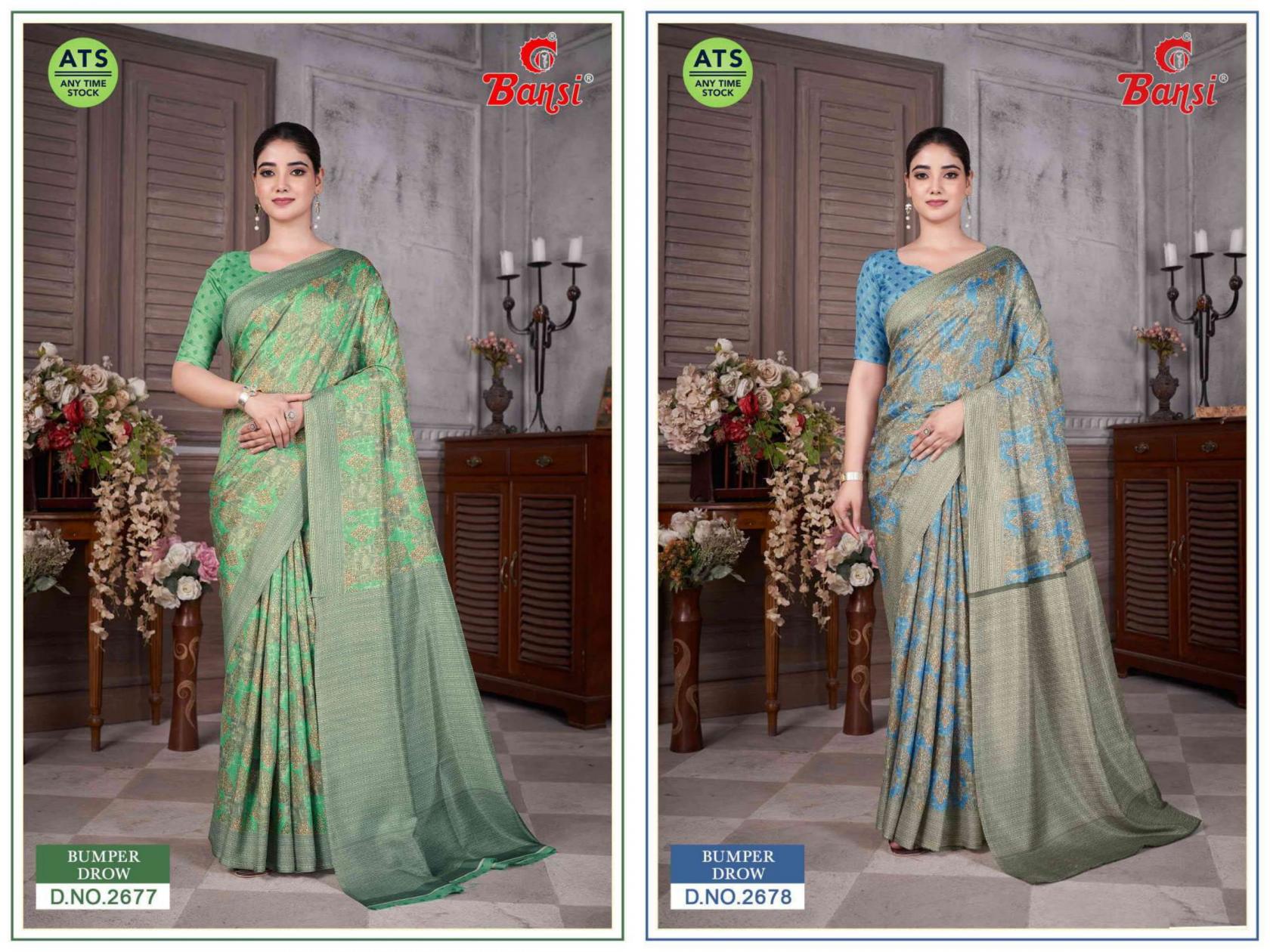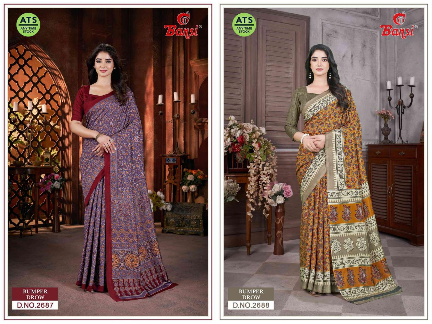 Looking for BUMPER DROW BY BANSI SHOP TRENDY CRACKLE SAREES Full Catalouge at Best Price? Buy Now BUMPER DROW BY BANSI SHOP TRENDY CRACKLE SAREES at Wholesale Rate of Rs 9450 with Total 30 Pcs from authroized dealer and supplier of Bansi Fashion Brand. Cost of Each piece is just only Rs 315 which is very low and affordable price to resale the product in your retail store. rrgandhi is Surat based Wholesale Supplier & Dealer of Bansi Fashion Brand. Click on Brand name to Know more about Brand's products.