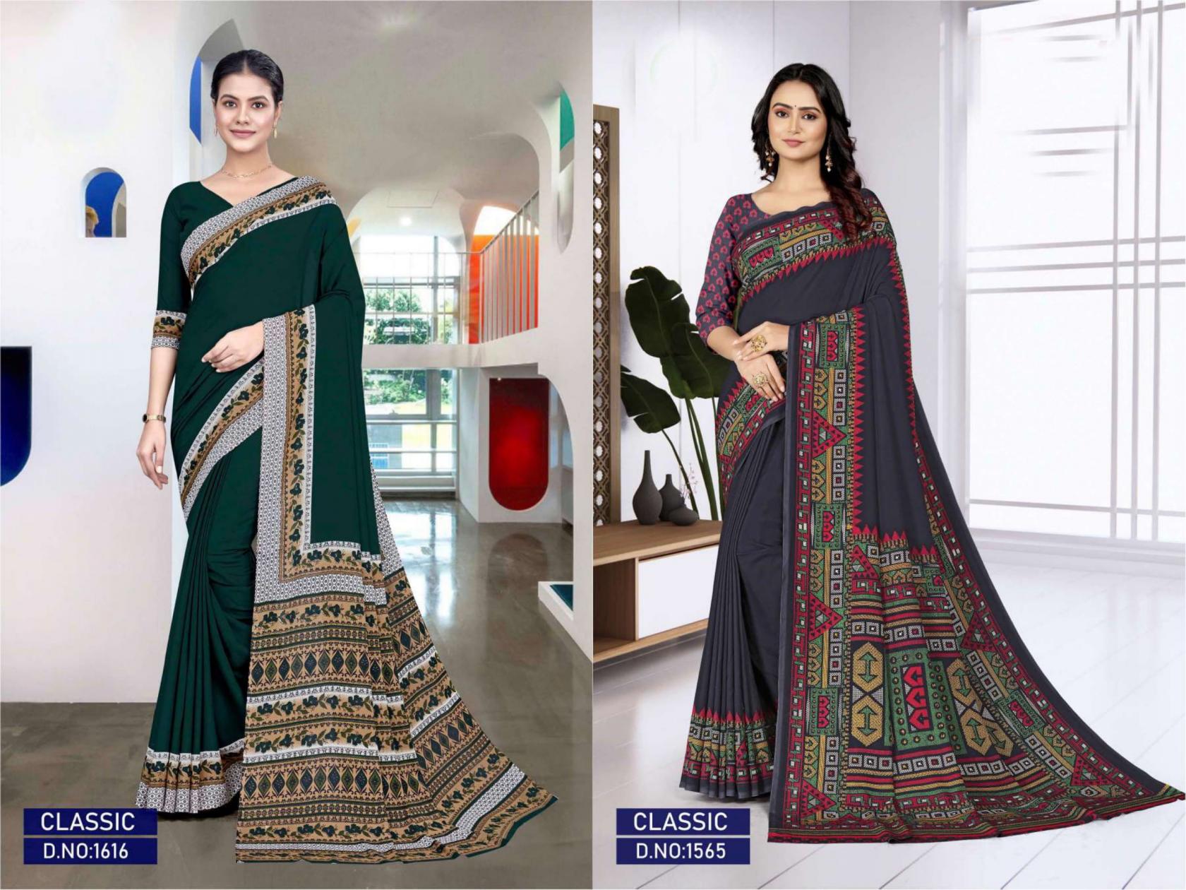 Looking for CLASSIC BY BANSI AMAZING CRAPE UNIFORM LOOK SAREES Full Catalouge at Best Price? Buy Now CLASSIC BY BANSI AMAZING CRAPE UNIFORM LOOK SAREES at Wholesale Rate of Rs 13350 with Total 30 Pcs from authroized dealer and supplier of Bansi Fashion Brand. Cost of Each piece is just only Rs 445 which is very low and affordable price to resale the product in your retail store. rrgandhi is Surat based Wholesale Supplier & Dealer of Bansi Fashion Brand. Click on Brand name to Know more about Brand's products.