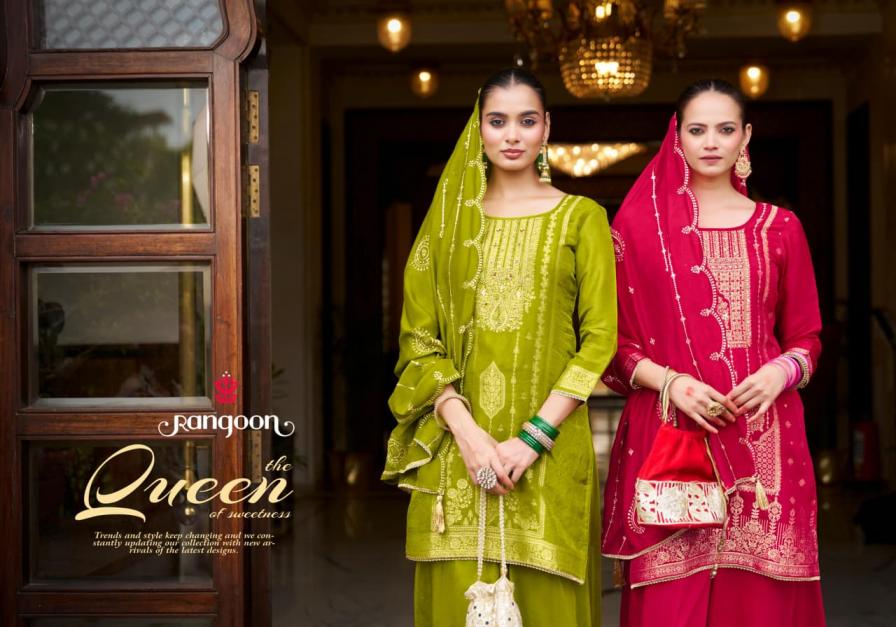 Looking for DARPAN BY RANGOON FULL STITCH DOLA RUSSIAN JACQUARD PLAZZO SUITS Full Catalouge at Best Price? Buy Now DARPAN BY RANGOON FULL STITCH DOLA RUSSIAN JACQUARD PLAZZO SUITS at Wholesale Rate of Rs 5596 with Total 4 Pcs from authroized dealer and supplier of Rangoon Brand. Cost of Each piece is just only Rs 1399 which is very low and affordable price to resale the product in your retail store. rrgandhi is Surat based Wholesale Supplier & Dealer of Rangoon Brand. Click on Brand name to Know more about Brand's products.