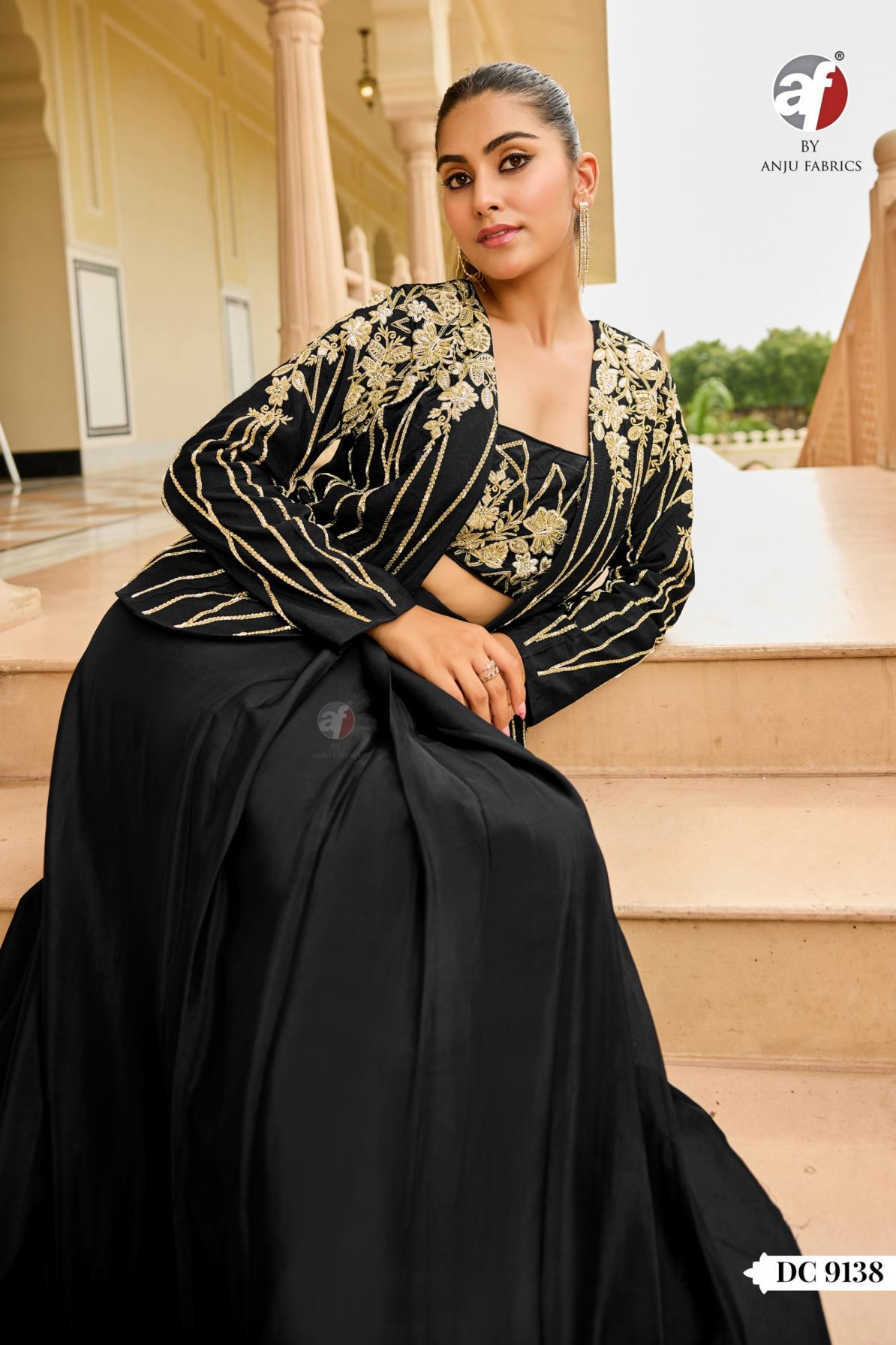 Looking for DC 9138 BY ANJU FAB CHINON CHIFFON FULL STITCH CROP TOP DRAP SKIRT WITH JACKET Full Catalouge at Best Price? Buy Now DC 9138 BY ANJU FAB CHINON CHIFFON FULL STITCH CROP TOP DRAP SKIRT WITH JACKET at Wholesale Rate of Rs 9800 with Total 4 Pcs from authroized dealer and supplier of A F Kurti Brand. Cost of Each piece is just only Rs 2450 which is very low and affordable price to resale the product in your retail store. rrgandhi is Surat based Wholesale Supplier & Dealer of A F Kurti Brand. Click on Brand name to Know more about Brand's products.