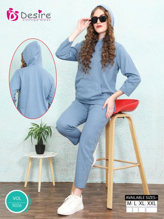 Looking for DESIRE VOL 5026 WINTER TEXTURED JACQUARD FULL STITCH FANCY CO-ORD Full Catalouge at Best Price? Buy Now DESIRE VOL 5026 WINTER TEXTURED JACQUARD FULL STITCH FANCY CO-ORD at Wholesale Rate of Rs 3840 with Total 6 Pcs from authroized dealer and supplier of Desire Lounge Wear Brand. Cost of Each piece is just only Rs 640 which is very low and affordable price to resale the product in your retail store. rrgandhi is Surat based Wholesale Supplier & Dealer of Desire Lounge Wear Brand. Click on Brand name to Know more about Brand's products.