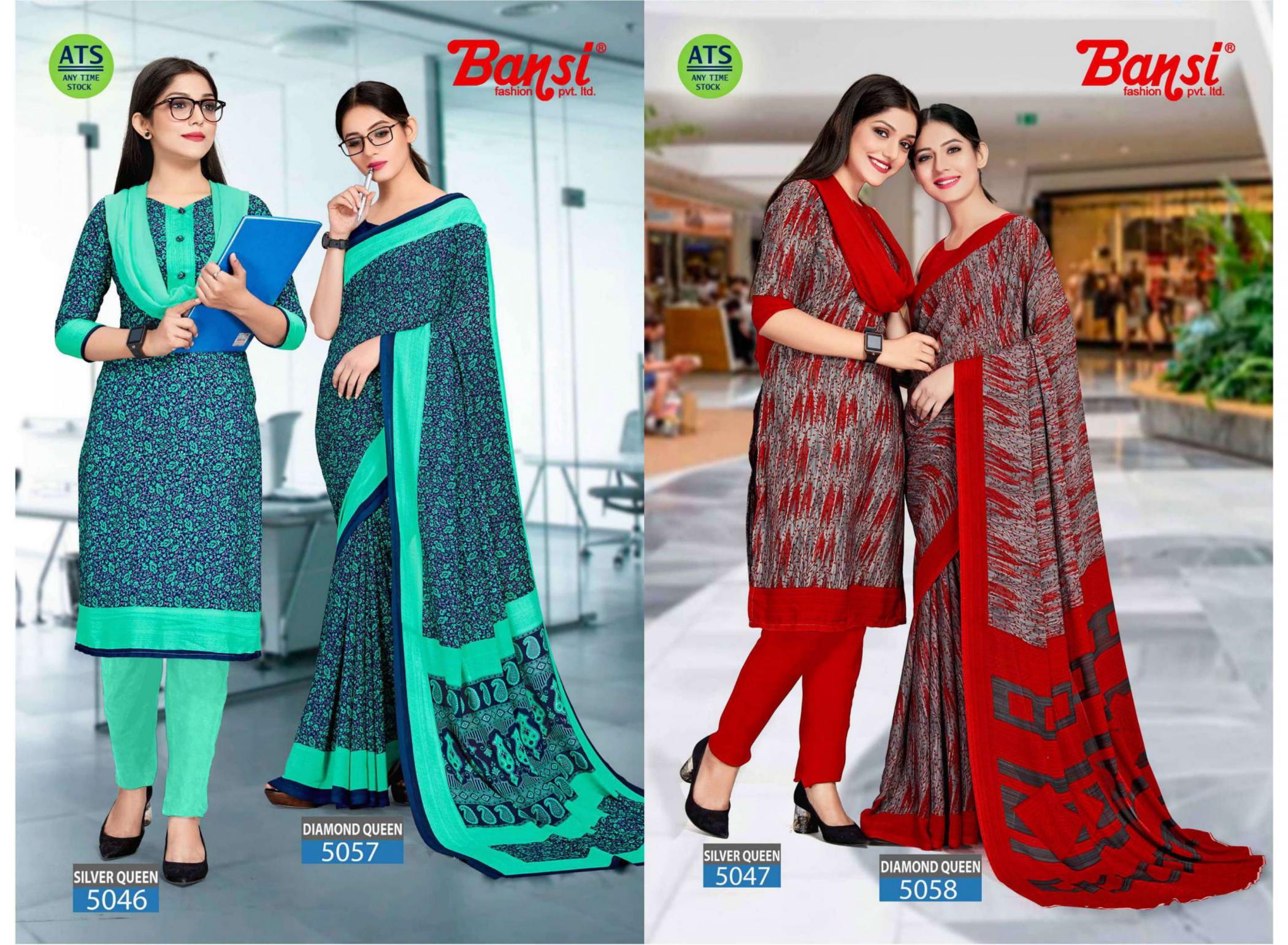 Looking for DIAMOND QUEEN & SILVER QUEEN BY BANSI KIMAYA SAREE WITH CRACKLE COMBO SUITS Full Catalouge at Best Price? Buy Now DIAMOND QUEEN & SILVER QUEEN BY BANSI KIMAYA SAREE WITH CRACKLE COMBO SUITS at Wholesale Rate of Rs 12450 with Total 30 Pcs from authroized dealer and supplier of Bansi Fashion Brand. Cost of Each piece is just only Rs 415 which is very low and affordable price to resale the product in your retail store. rrgandhi is Surat based Wholesale Supplier & Dealer of Bansi Fashion Brand. Click on Brand name to Know more about Brand's products.