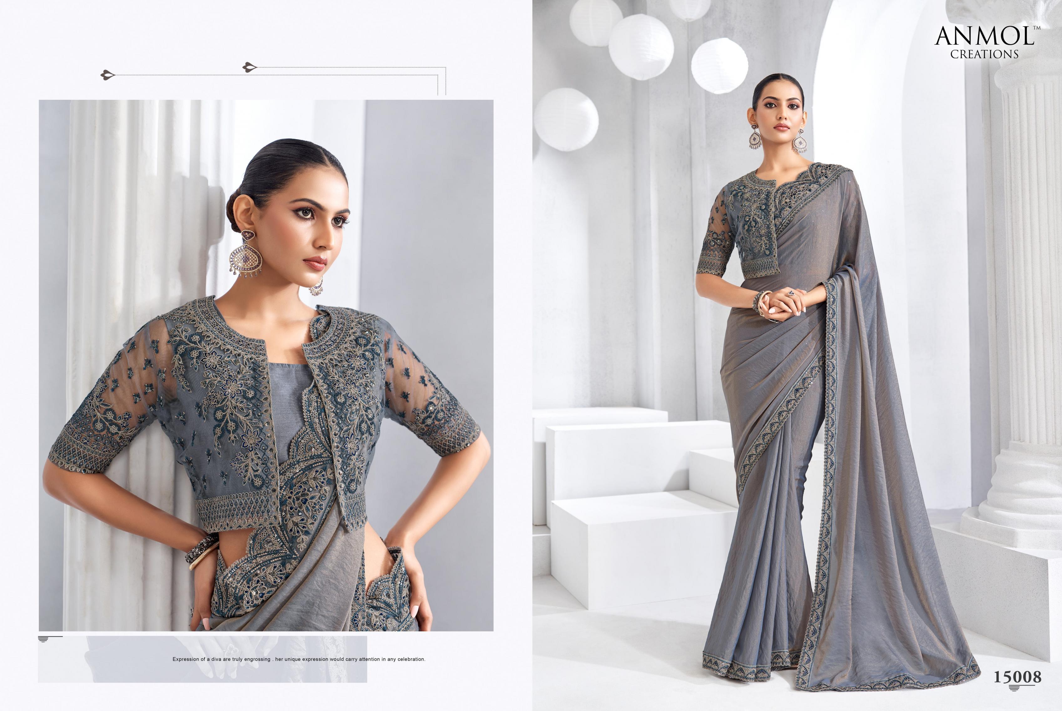 Looking for ELEGANCE VOL 20 BY ANMOL CREATION OCCASION WEAR SAREES Full Catalouge at Best Price? Buy Now ELEGANCE VOL 20 BY ANMOL CREATION OCCASION WEAR SAREES at Wholesale Rate of Rs 28704 with Total 16 Pcs from authroized dealer and supplier of Anmol Creation Brand. Cost of Each piece is just only Rs 1794 which is very low and affordable price to resale the product in your retail store. rrgandhi is Surat based Wholesale Supplier & Dealer of Anmol Creation Brand. Click on Brand name to Know more about Brand's products.