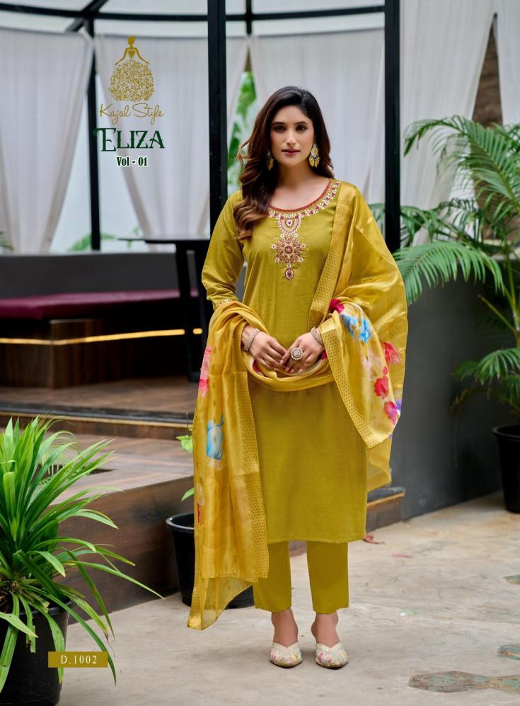 Looking for ELIZA VOL 1 BY KAJAL STYLE VERTICAN READYMADE PLUS SIZE SUITS Full Catalouge at Best Price? Buy Now ELIZA VOL 1 BY KAJAL STYLE VERTICAN READYMADE PLUS SIZE SUITS at Wholesale Rate of Rs 5000 with Total 8 Pcs from authroized dealer and supplier of Kajal Style Brand. Cost of Each piece is just only Rs 625 which is very low and affordable price to resale the product in your retail store. rrgandhi is Surat based Wholesale Supplier & Dealer of Kajal Style Brand. Click on Brand name to Know more about Brand's products.