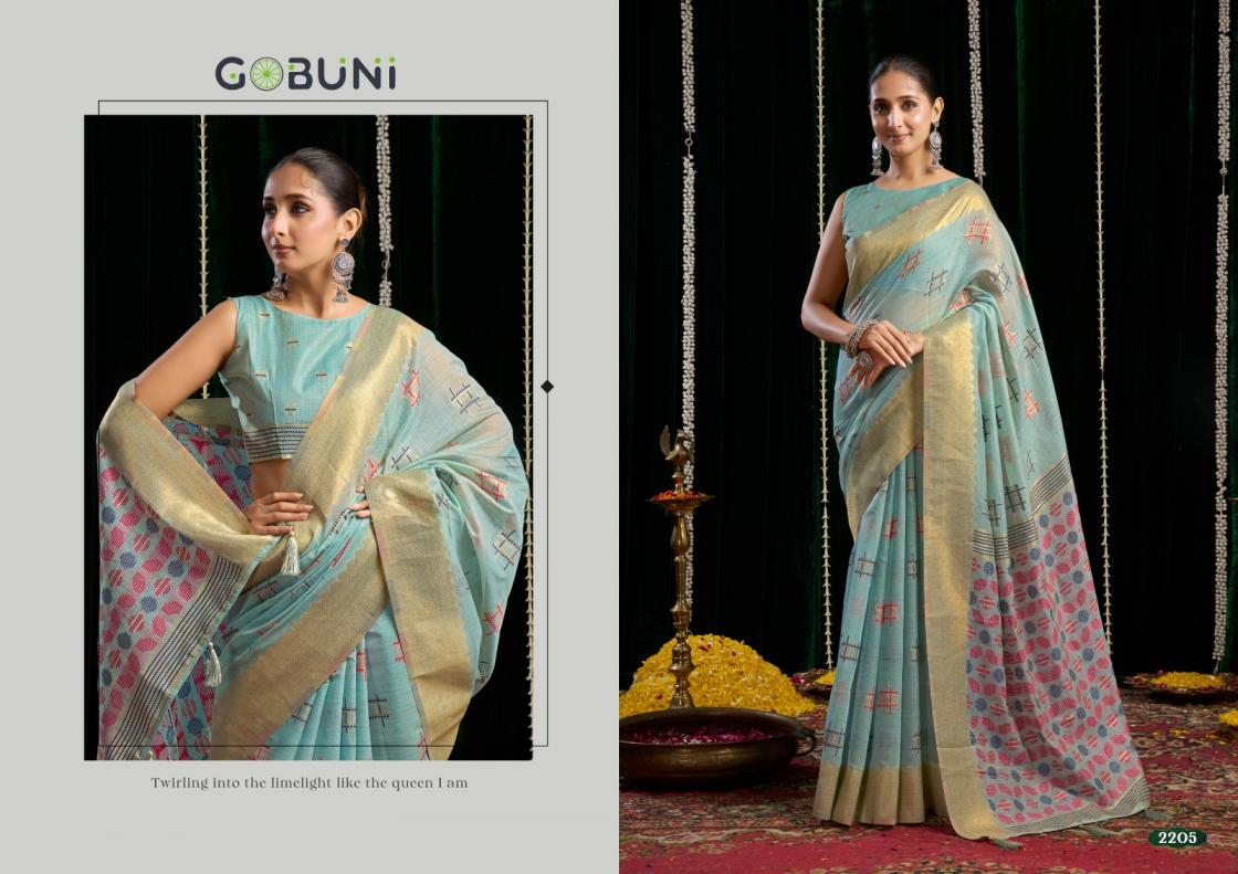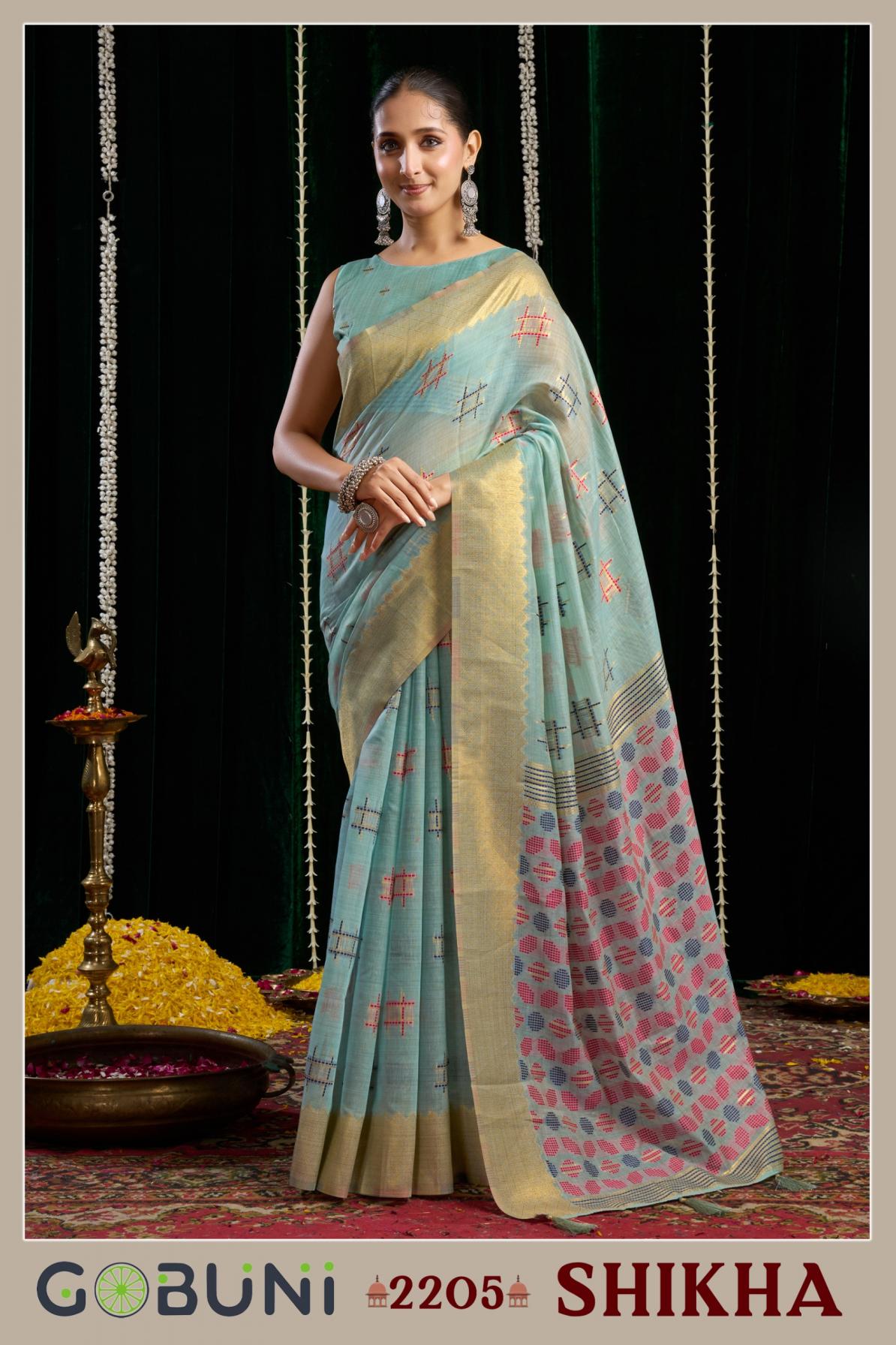 Looking for gobuni shikha traditional lightweight spun cotton saree at best rates Full Catalouge at Best Price? Buy Now gobuni shikha traditional lightweight spun cotton saree at best rates at Wholesale Rate of Rs 5475 with Total 5 Pcs from authroized dealer and supplier of Gobuni Brand. Cost of Each piece is just only Rs 1095 which is very low and affordable price to resale the product in your retail store. rrgandhi is Surat based Wholesale Supplier & Dealer of Gobuni Brand. Click on Brand name to Know more about Brand's products.