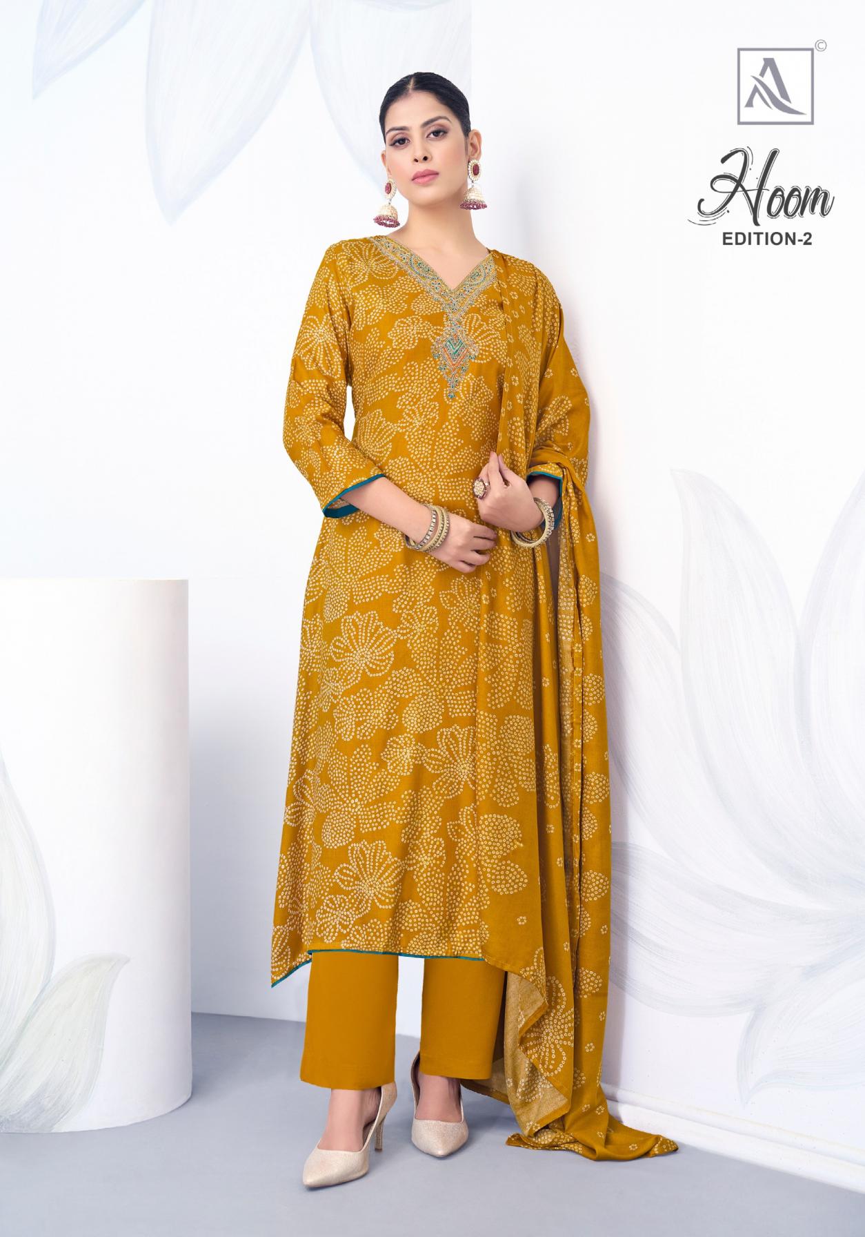 Looking for hoom vol 2 by alok viscose pashmina readymade pakistani suit online shopping Full Catalouge at Best Price? Buy Now hoom vol 2 by alok viscose pashmina readymade pakistani suit online shopping at Wholesale Rate of Rs 7590 with Total 6 Pcs from authroized dealer and supplier of Alok Suit Brand. Cost of Each piece is just only Rs 1265 which is very low and affordable price to resale the product in your retail store. rrgandhi is Surat based Wholesale Supplier & Dealer of Alok Suit Brand. Click on Brand name to Know more about Brand's products.