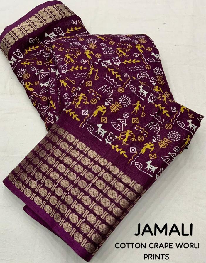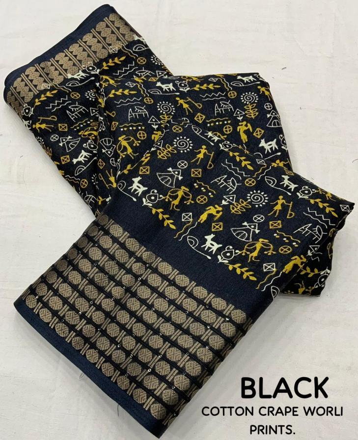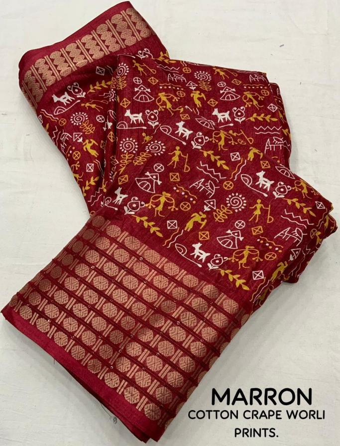 Looking for JACKPOT COTTON CRAPE WORLI PRINTED FANCY SAREES Full Catalouge at Best Price? Buy Now JACKPOT COTTON CRAPE WORLI PRINTED FANCY SAREES at Wholesale Rate of Rs 3000 with Total 6 Pcs from authroized dealer and supplier of P R Clothing Brand. Cost of Each piece is just only Rs 500 which is very low and affordable price to resale the product in your retail store. rrgandhi is Surat based Wholesale Supplier & Dealer of P R Clothing Brand. Click on Brand name to Know more about Brand's products.