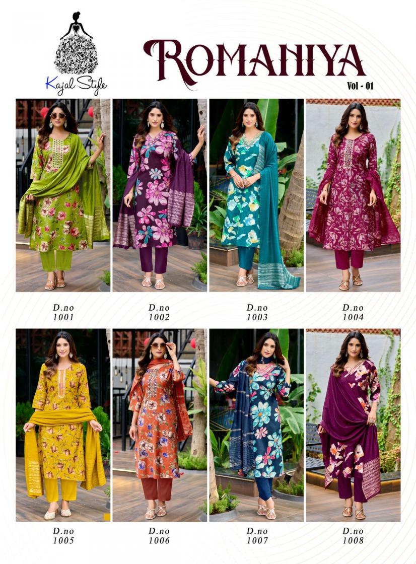 Looking for KAJAL STYLE ROMANIYA VOL 1 FANCY VERTICAN FULL STITCH PLUS SIZE 3PCS DRESS Full Catalouge at Best Price? Buy Now KAJAL STYLE ROMANIYA VOL 1 FANCY VERTICAN FULL STITCH PLUS SIZE 3PCS DRESS at Wholesale Rate of Rs 4680 with Total 8 Pcs from authroized dealer and supplier of Kajal Style Brand. Cost of Each piece is just only Rs 585 which is very low and affordable price to resale the product in your retail store. rrgandhi is Surat based Wholesale Supplier & Dealer of Kajal Style Brand. Click on Brand name to Know more about Brand's products.