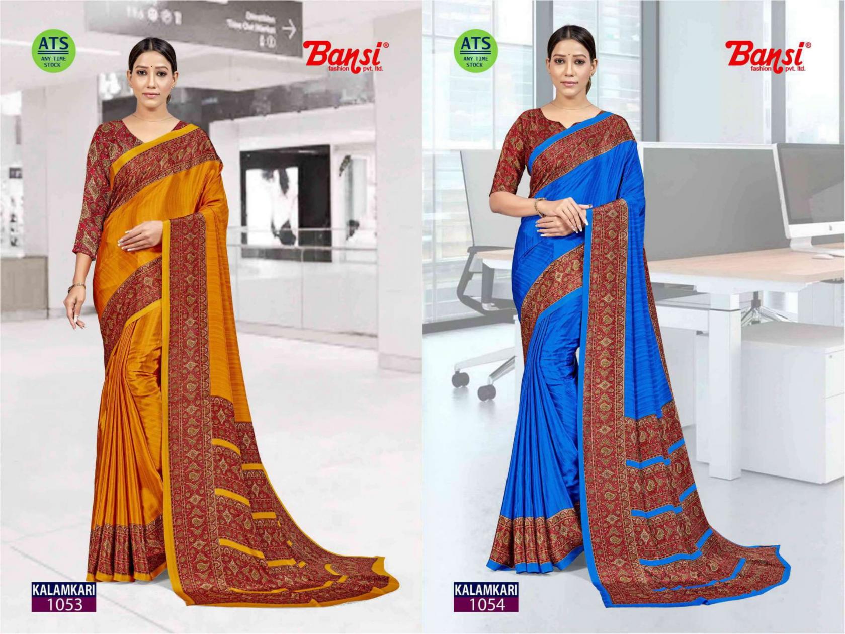 Looking for KALAMKARI BY BANSI TRENDY CRAPE SAREES ONLINE Full Catalouge at Best Price? Buy Now KALAMKARI BY BANSI TRENDY CRAPE SAREES ONLINE at Wholesale Rate of Rs 14850 with Total 30 Pcs from authroized dealer and supplier of Bansi Fashion Brand. Cost of Each piece is just only Rs 495 which is very low and affordable price to resale the product in your retail store. rrgandhi is Surat based Wholesale Supplier & Dealer of Bansi Fashion Brand. Click on Brand name to Know more about Brand's products.