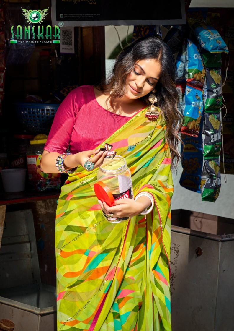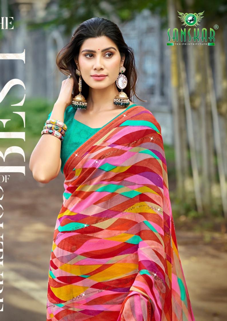 Looking for KALIKAR BY SANSAKR TEX PRINTS STYLISH WEIGHTLESS SAREE ONLINE Full Catalouge at Best Price? Buy Now KALIKAR BY SANSAKR TEX PRINTS STYLISH WEIGHTLESS SAREE ONLINE at Wholesale Rate of Rs 5040 with Total 8 Pcs from authroized dealer and supplier of Sanskar Tex Prints Brand. Cost of Each piece is just only Rs 630 which is very low and affordable price to resale the product in your retail store. rrgandhi is Surat based Wholesale Supplier & Dealer of Sanskar Tex Prints Brand. Click on Brand name to Know more about Brand's products.