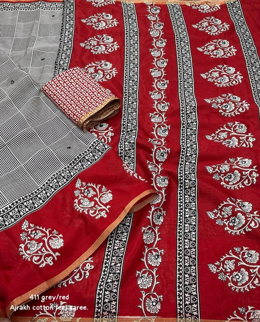 Looking for kc 411 cotton ajrakj jari woven border pretty look sarees Full Catalouge at Best Price? Buy Now kc 411 cotton ajrakj jari woven border pretty look sarees at Wholesale Rate of Rs 670 with Total 1 Pcs from authroized dealer and supplier of P R Clothing Brand. Cost of Each piece is just only Rs 670 which is very low and affordable price to resale the product in your retail store. rrgandhi is Surat based Wholesale Supplier & Dealer of P R Clothing Brand. Click on Brand name to Know more about Brand's products.