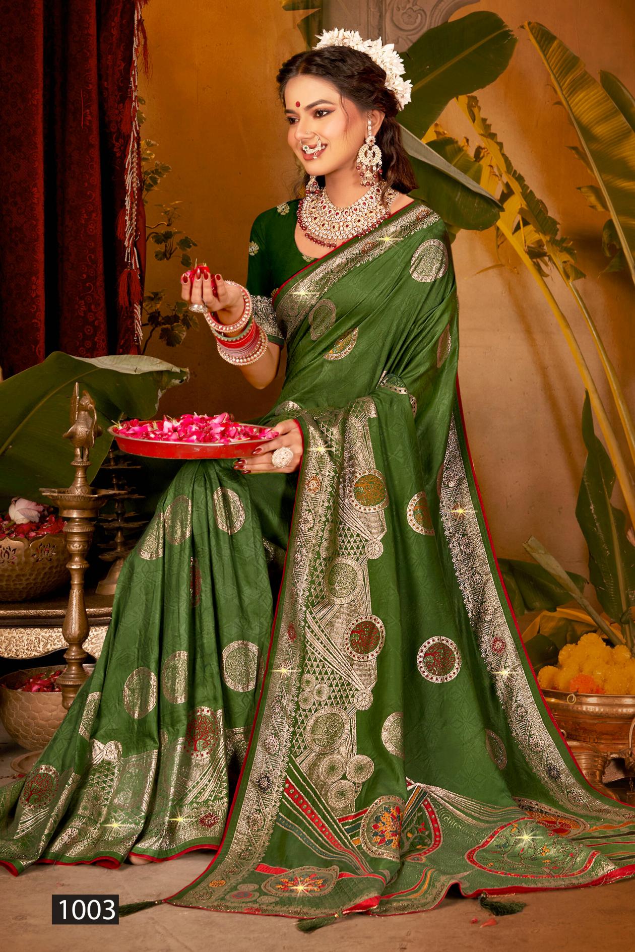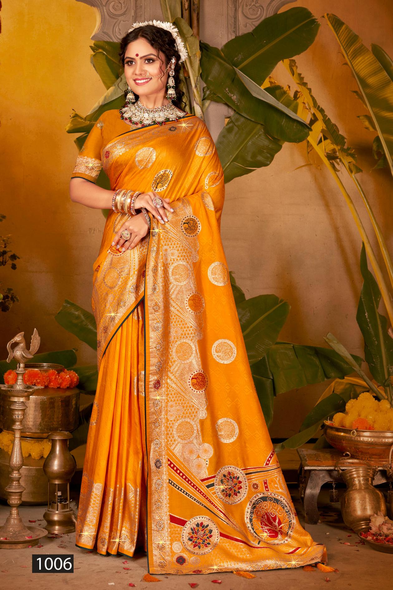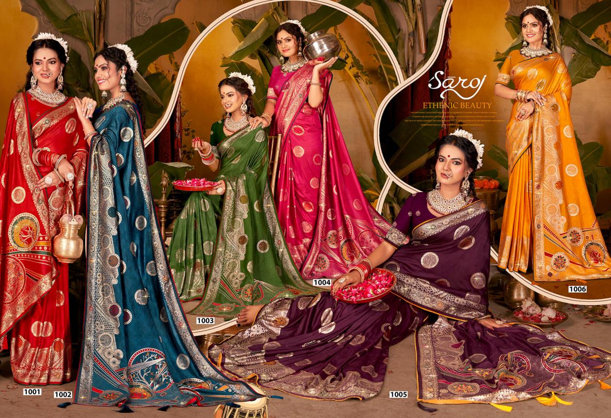 Looking for Kesar dola saroski Saroj vol.3 Dola silk saree Full Catalouge at Best Price? Buy Now Kesar dola saroski Saroj vol.3 Dola silk saree at Wholesale Rate of Rs 6540 with Total 6 Pcs from authroized dealer and supplier of Saroj Textiles Brand. Cost of Each piece is just only Rs 1090 which is very low and affordable price to resale the product in your retail store. rrgandhi is Surat based Wholesale Supplier & Dealer of Saroj Textiles Brand. Click on Brand name to Know more about Brand's products.