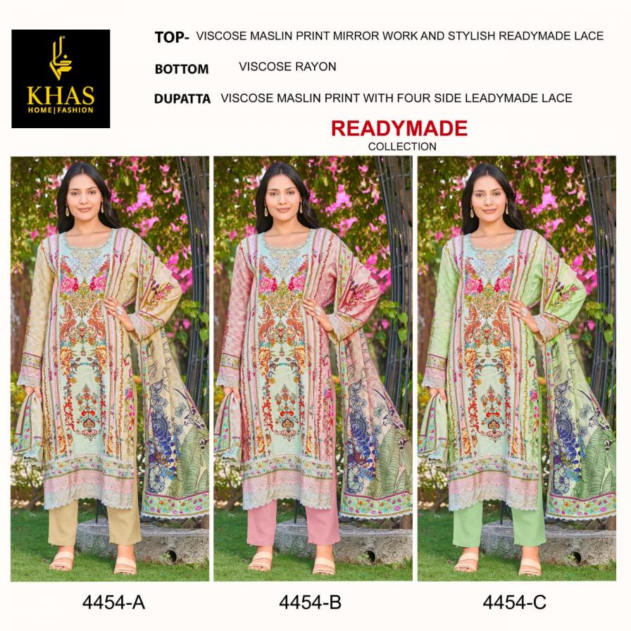 Looking for KHAS 4454 READYMADE STYLISH VISCOSE MUSLIN PAKISTANI 3PCS DRESS Full Catalouge at Best Price? Buy Now KHAS 4454 READYMADE STYLISH VISCOSE MUSLIN PAKISTANI 3PCS DRESS at Wholesale Rate of Rs 11691 with Total 9 Pcs from authroized dealer and supplier of Khas Brand. Cost of Each piece is just only Rs 1299 which is very low and affordable price to resale the product in your retail store. rrgandhi is Surat based Wholesale Supplier & Dealer of Khas Brand. Click on Brand name to Know more about Brand's products.
