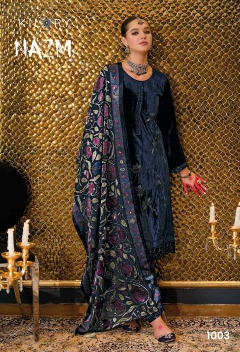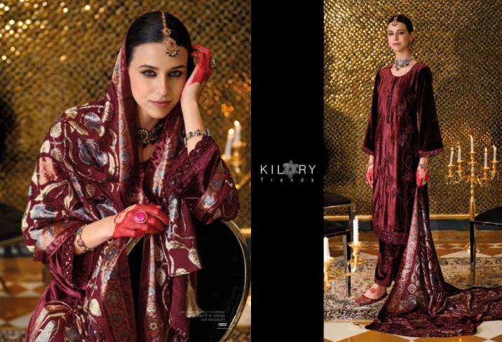 Looking for KILORY TRENDS NAZM WINTER SPECIAL VELVET 3PCS DRESS Full Catalouge at Best Price? Buy Now KILORY TRENDS NAZM WINTER SPECIAL VELVET 3PCS DRESS at Wholesale Rate of Rs 9980 with Total 4 Pcs from authroized dealer and supplier of Kilory Trends Brand. Cost of Each piece is just only Rs 2495 which is very low and affordable price to resale the product in your retail store. rrgandhi is Surat based Wholesale Supplier & Dealer of Kilory Trends Brand. Click on Brand name to Know more about Brand's products.