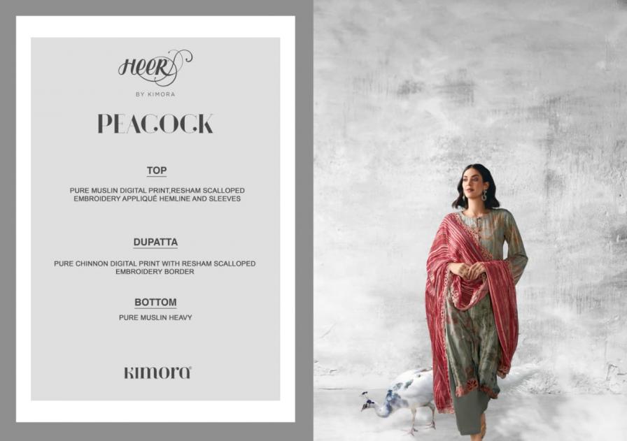 Looking for KIMORA HEER PEACOCK VOL 223 PRETTY LOOK MUSLIN 3PCS DRESS Full Catalouge at Best Price? Buy Now KIMORA HEER PEACOCK VOL 223 PRETTY LOOK MUSLIN 3PCS DRESS at Wholesale Rate of Rs 12540 with Total 6 Pcs from authroized dealer and supplier of KIMORA Brand. Cost of Each piece is just only Rs 2090 which is very low and affordable price to resale the product in your retail store. rrgandhi is Surat based Wholesale Supplier & Dealer of KIMORA Brand. Click on Brand name to Know more about Brand's products.