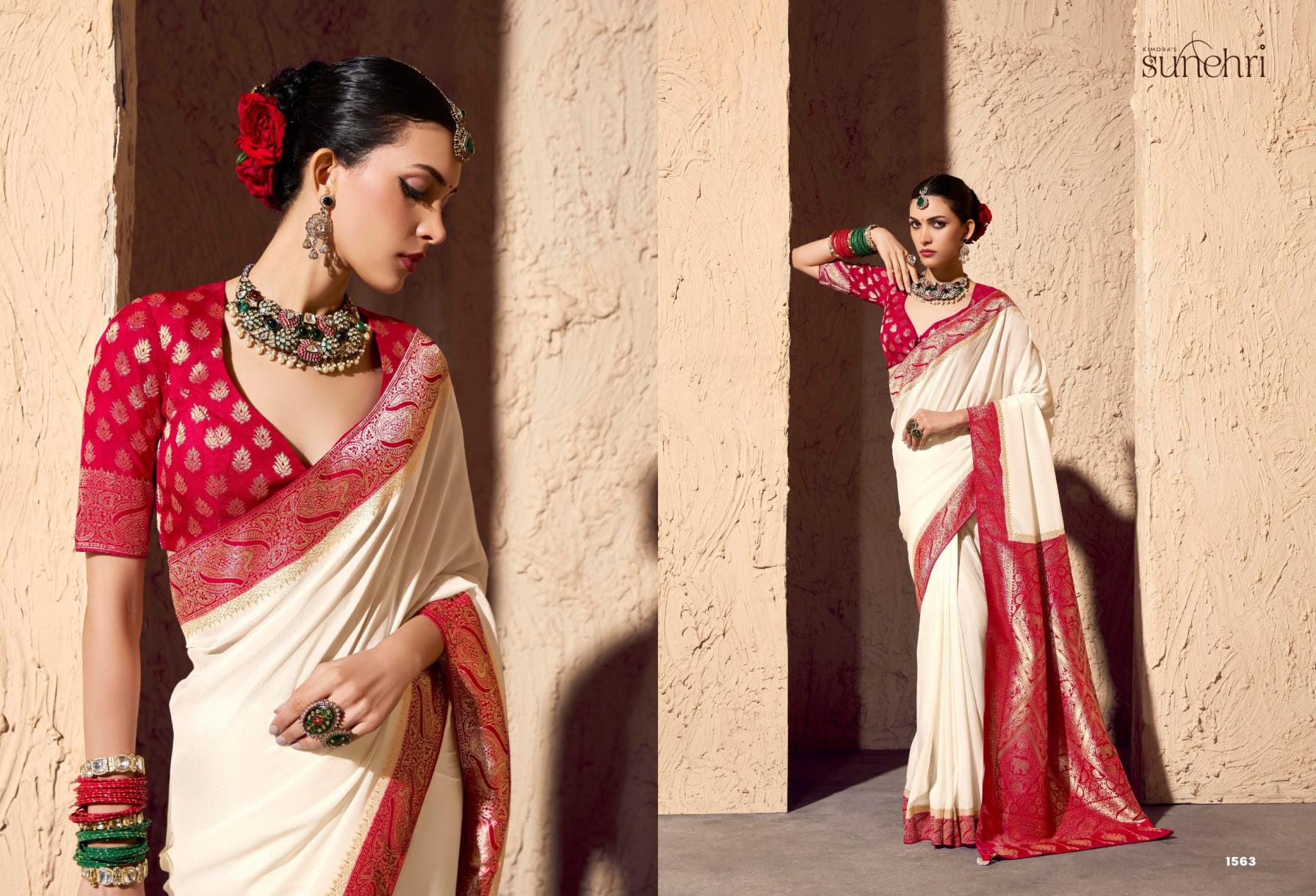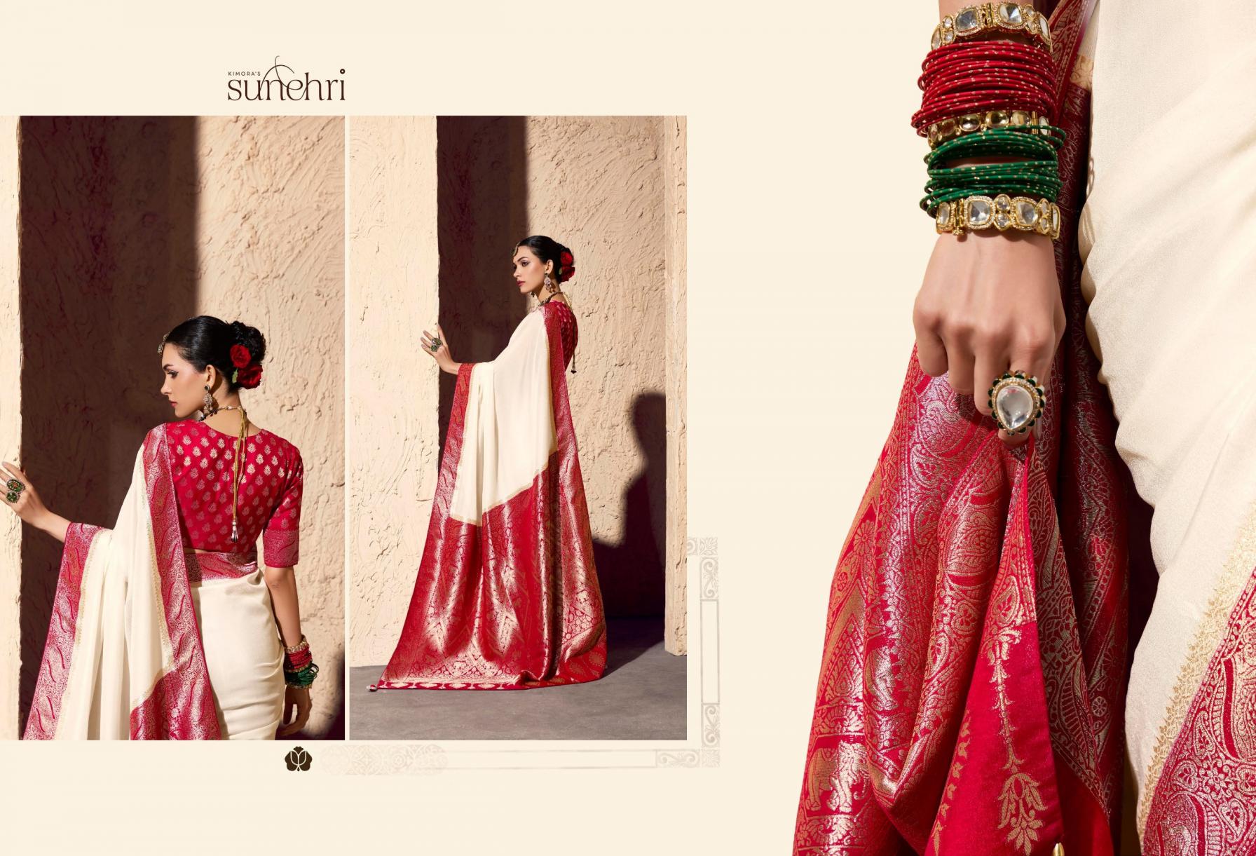 Looking for KIMORA INDRI SUNEHRI TRADITIONAL CRAPE GEORGETTE 1561-1571 SAREES Full Catalouge at Best Price? Buy Now KIMORA INDRI SUNEHRI TRADITIONAL CRAPE GEORGETTE 1561-1571 SAREES at Wholesale Rate of Rs 21890 with Total 11 Pcs from authroized dealer and supplier of KIMORA Brand. Cost of Each piece is just only Rs 1990 which is very low and affordable price to resale the product in your retail store. rrgandhi is Surat based Wholesale Supplier & Dealer of KIMORA Brand. Click on Brand name to Know more about Brand's products.