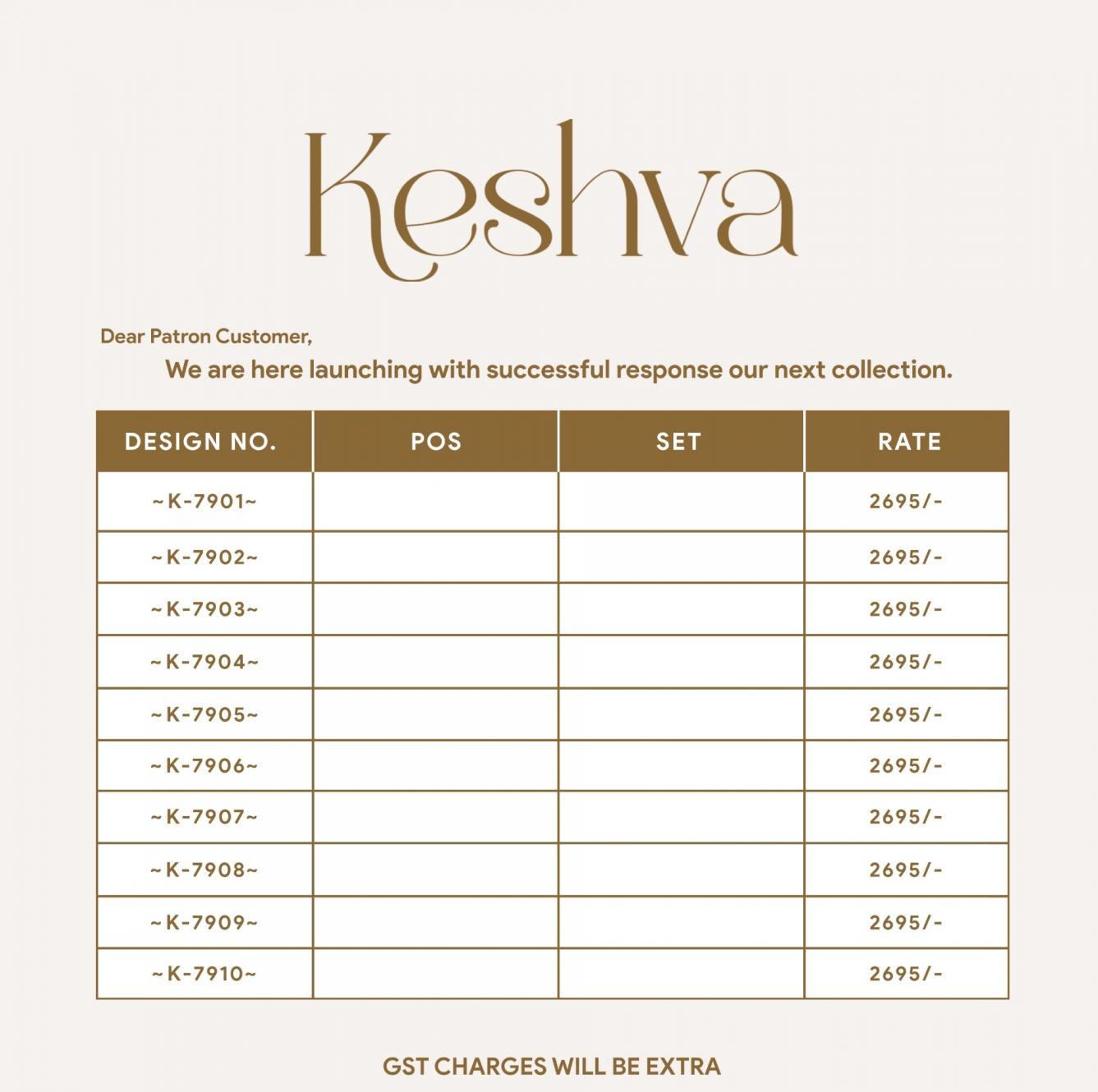 Looking for KIRA CREATION KESHVA 7901-7910 TRADITIONAL SAREES ONLINE Full Catalouge at Best Price? Buy Now KIRA CREATION KESHVA 7901-7910 TRADITIONAL SAREES ONLINE at Wholesale Rate of Rs 26950 with Total 10 Pcs from authroized dealer and supplier of Kira Creation Brand. Cost of Each piece is just only Rs 2695 which is very low and affordable price to resale the product in your retail store. rrgandhi is Surat based Wholesale Supplier & Dealer of Kira Creation Brand. Click on Brand name to Know more about Brand's products.