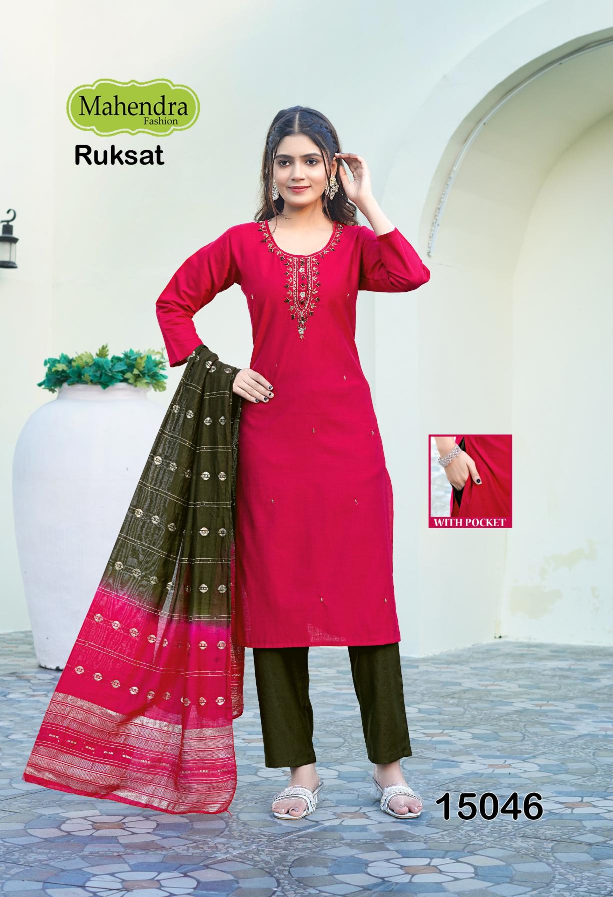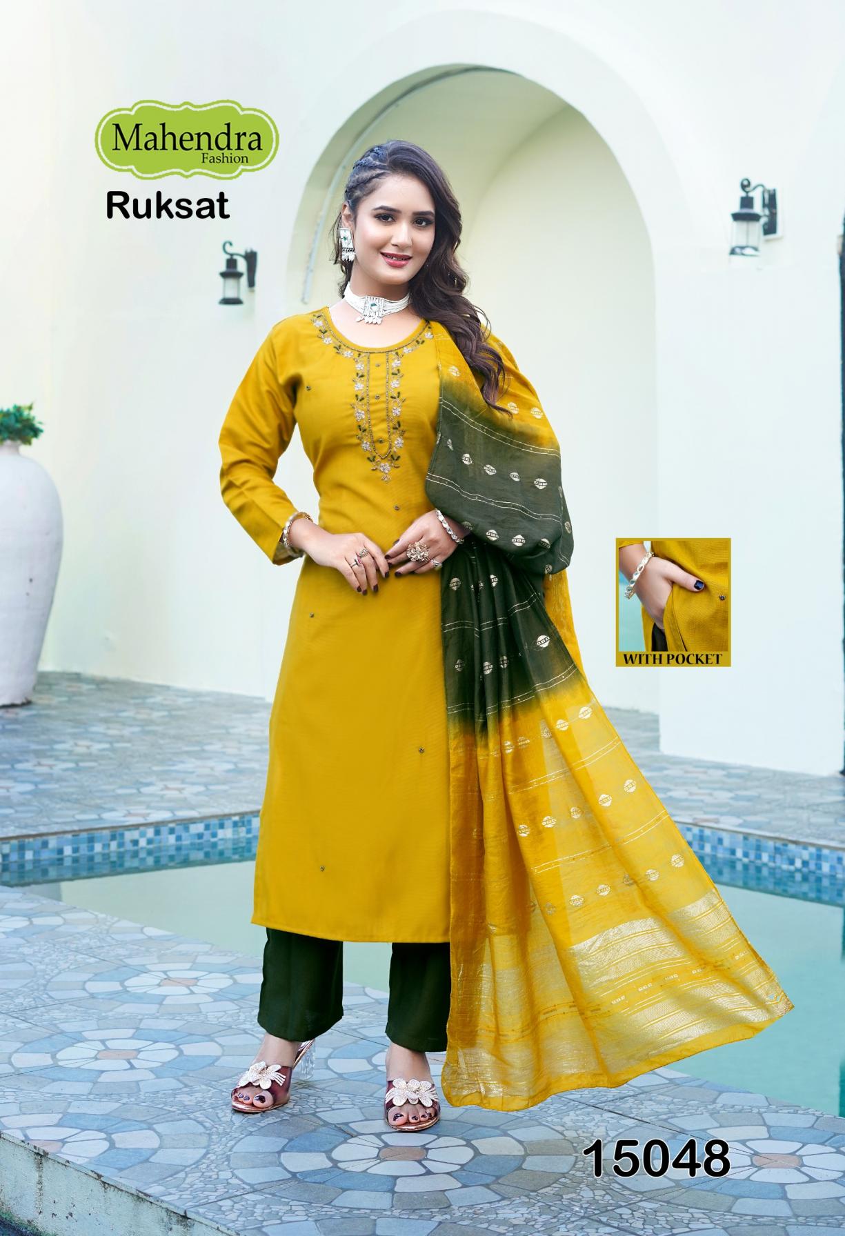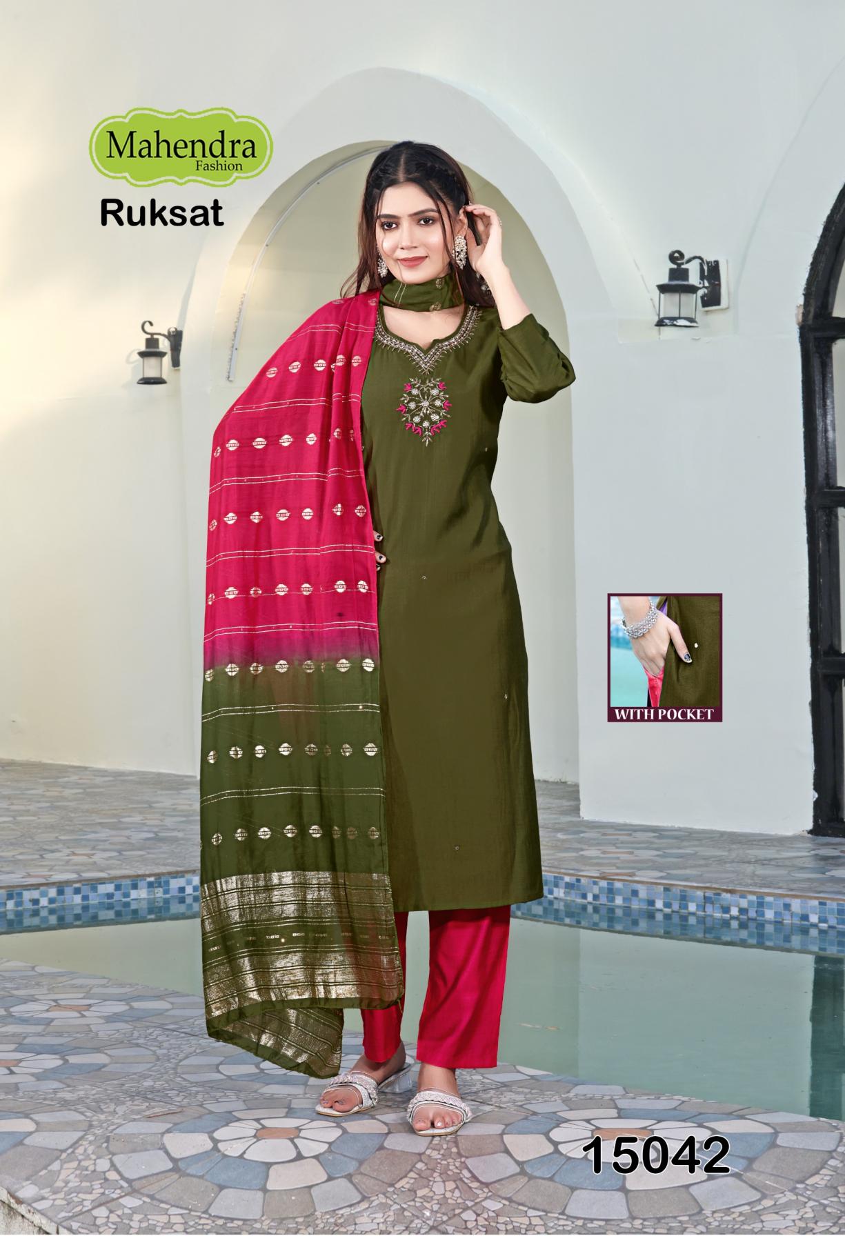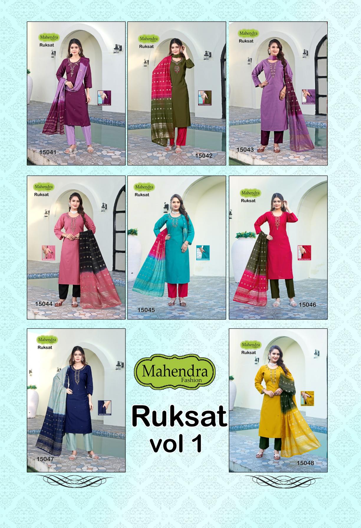 Looking for MAHENDRA FASHION RUKSAT VOL 1 PRETTY VATICAN FULL STITCH LADIES SUIT Full Catalouge at Best Price? Buy Now MAHENDRA FASHION RUKSAT VOL 1 PRETTY VATICAN FULL STITCH LADIES SUIT at Wholesale Rate of Rs 5640 with Total 8 Pcs from authroized dealer and supplier of Mahendra Fashion Brand. Cost of Each piece is just only Rs 705 which is very low and affordable price to resale the product in your retail store. rrgandhi is Surat based Wholesale Supplier & Dealer of Mahendra Fashion Brand. Click on Brand name to Know more about Brand's products.