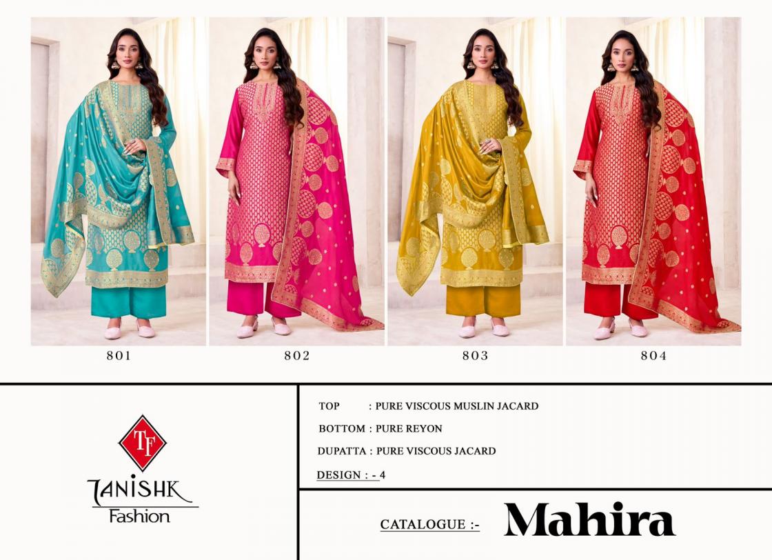 Looking for MAHIRA TANISHK FASHION MUSLIN JACQUARD SUIT FOR WOMENS Full Catalouge at Best Price? Buy Now MAHIRA TANISHK FASHION MUSLIN JACQUARD SUIT FOR WOMENS at Wholesale Rate of Rs 3400 with Total 4 Pcs from authroized dealer and supplier of Tanishk Fashion Brand. Cost of Each piece is just only Rs 850 which is very low and affordable price to resale the product in your retail store. rrgandhi is Surat based Wholesale Supplier & Dealer of Tanishk Fashion Brand. Click on Brand name to Know more about Brand's products.