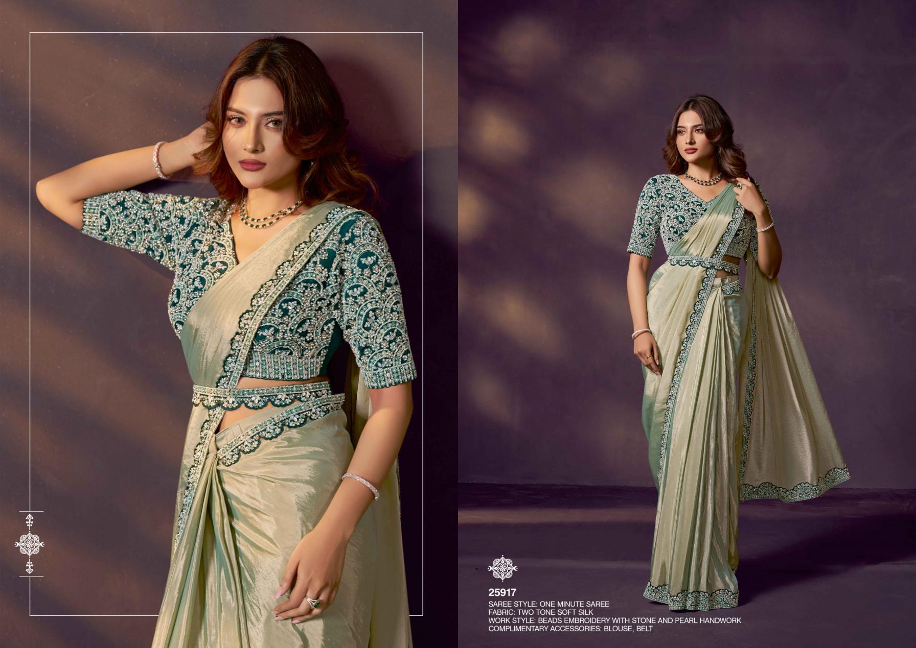 Looking for MAHOTSAV MOHMANTHAN 25900 CELESTE TWO TONE SATIN SILK DESIGNER ONE MINUTE SAREES Full Catalouge at Best Price? Buy Now MAHOTSAV MOHMANTHAN 25900 CELESTE TWO TONE SATIN SILK DESIGNER ONE MINUTE SAREES at Wholesale Rate of Rs 119625 with Total 29 Pcs from authroized dealer and supplier of Mahotsav Brand. Cost of Each piece is just only Rs 4125 which is very low and affordable price to resale the product in your retail store. rrgandhi is Surat based Wholesale Supplier & Dealer of Mahotsav Brand. Click on Brand name to Know more about Brand's products.