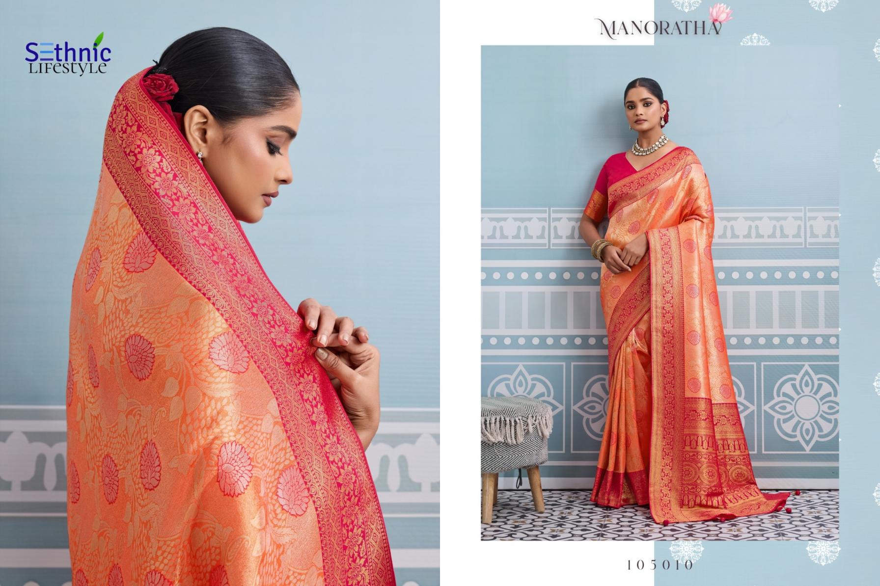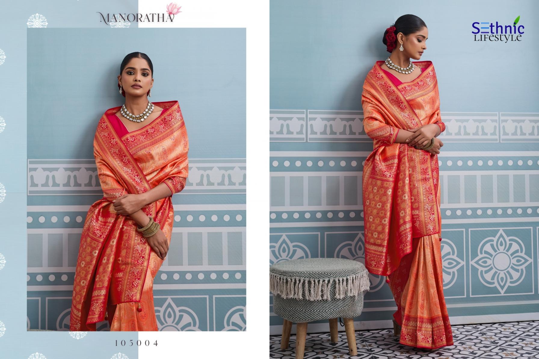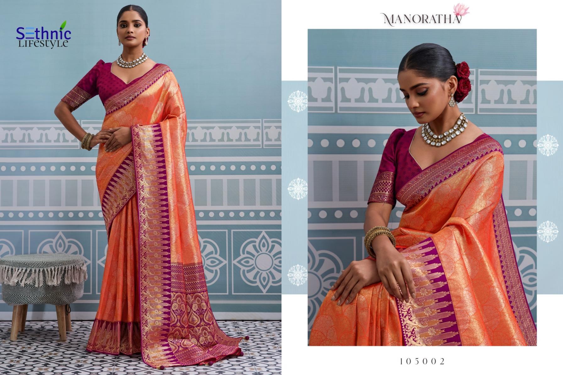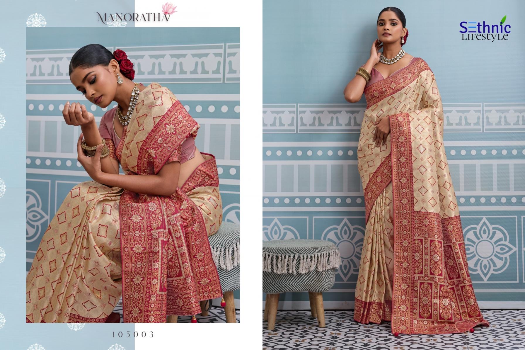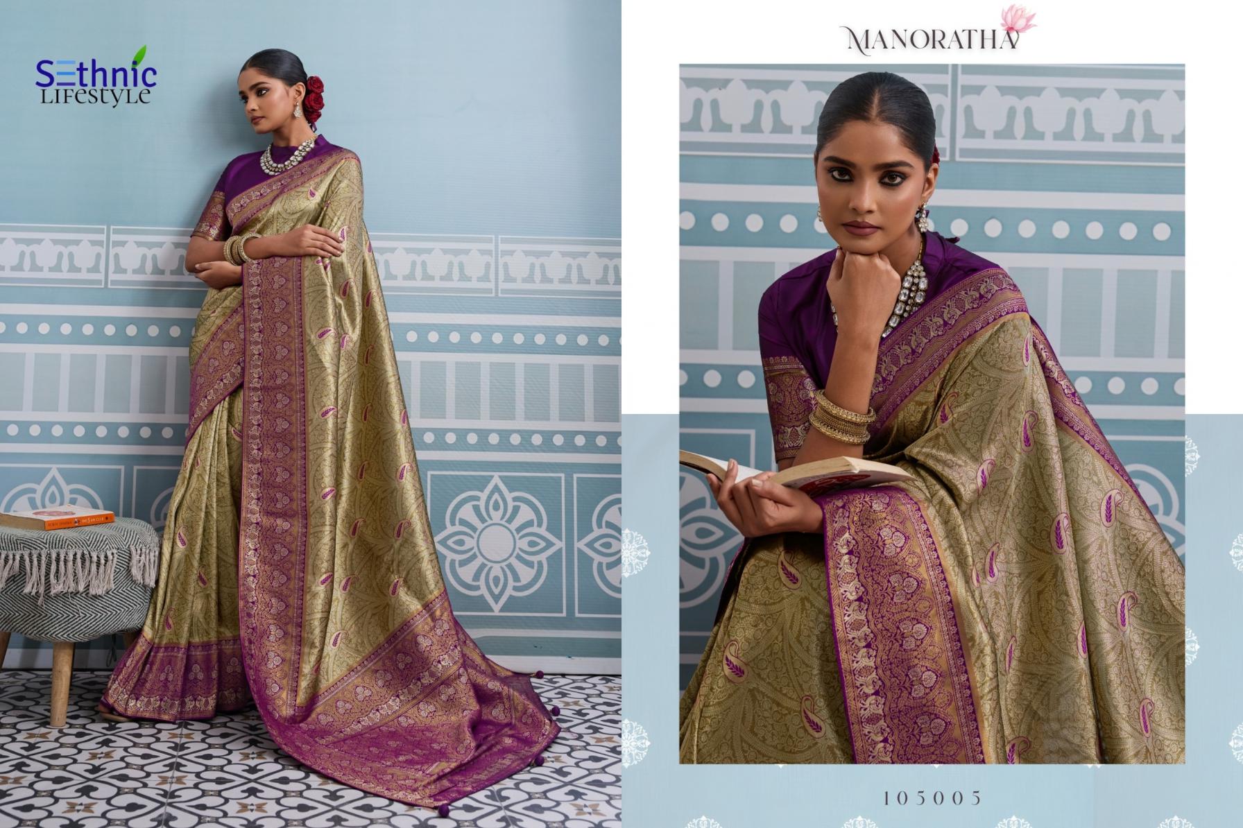 Looking for MANORATHA BY SETHNIC LIFESTYLE BEST KANJIVARAM SILK SAREE ONLINE Full Catalouge at Best Price? Buy Now MANORATHA BY SETHNIC LIFESTYLE BEST KANJIVARAM SILK SAREE ONLINE at Wholesale Rate of Rs 12950 with Total 10 Pcs from authroized dealer and supplier of Sethnic Lifestyle Brand. Cost of Each piece is just only Rs 1295 which is very low and affordable price to resale the product in your retail store. rrgandhi is Surat based Wholesale Supplier & Dealer of Sethnic Lifestyle Brand. Click on Brand name to Know more about Brand's products.