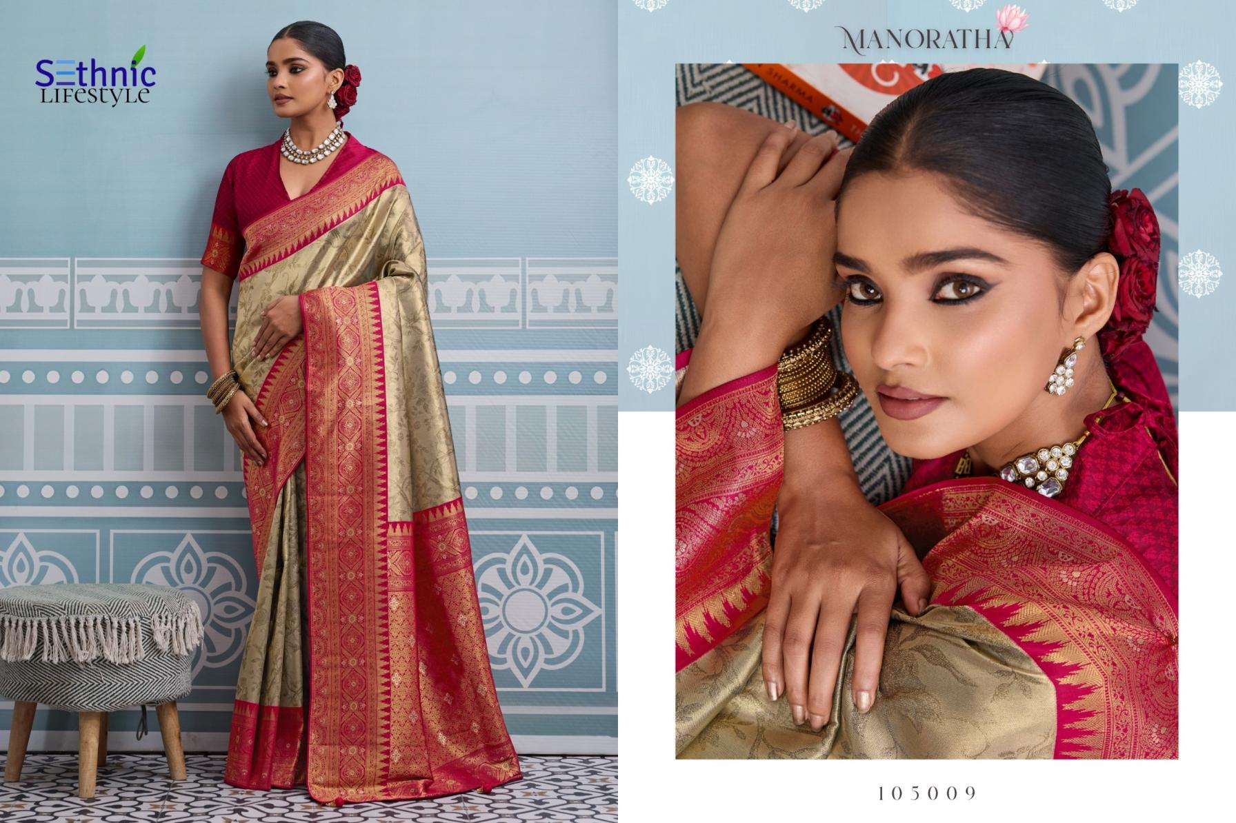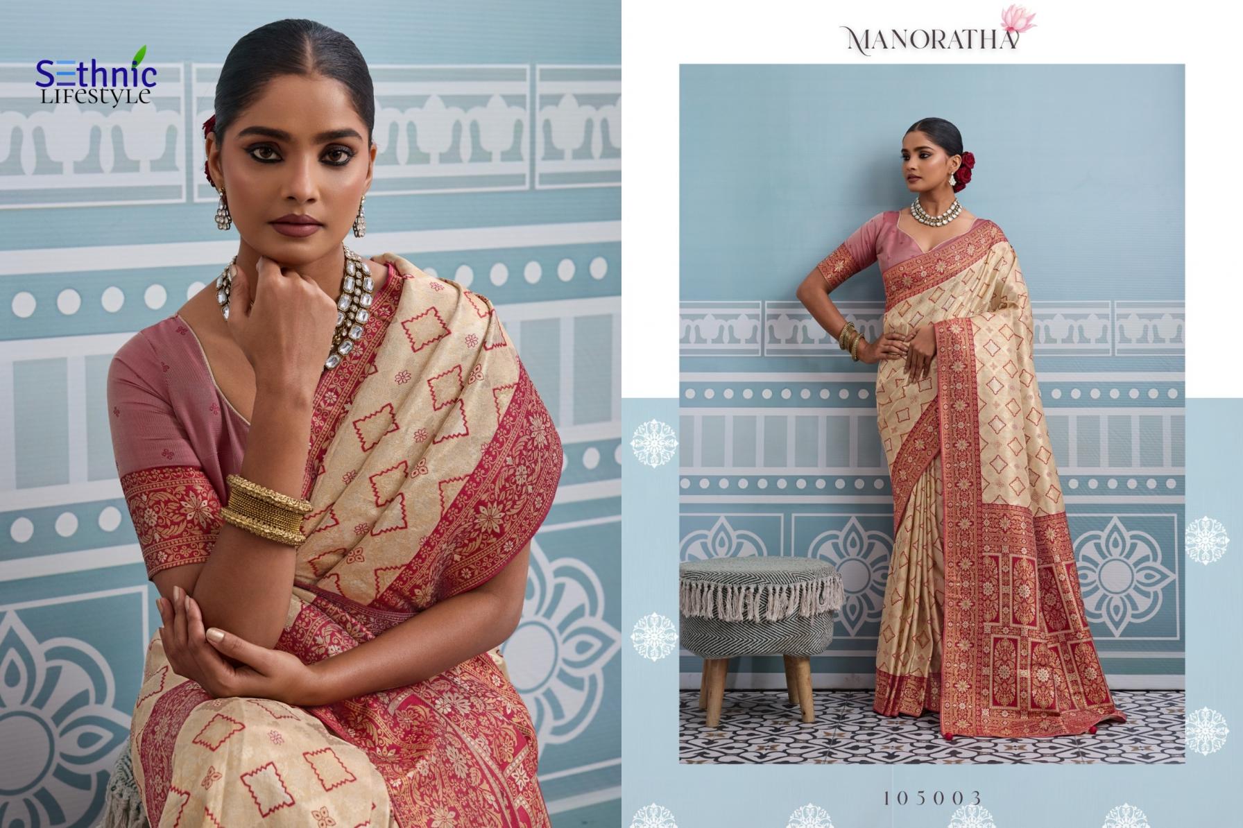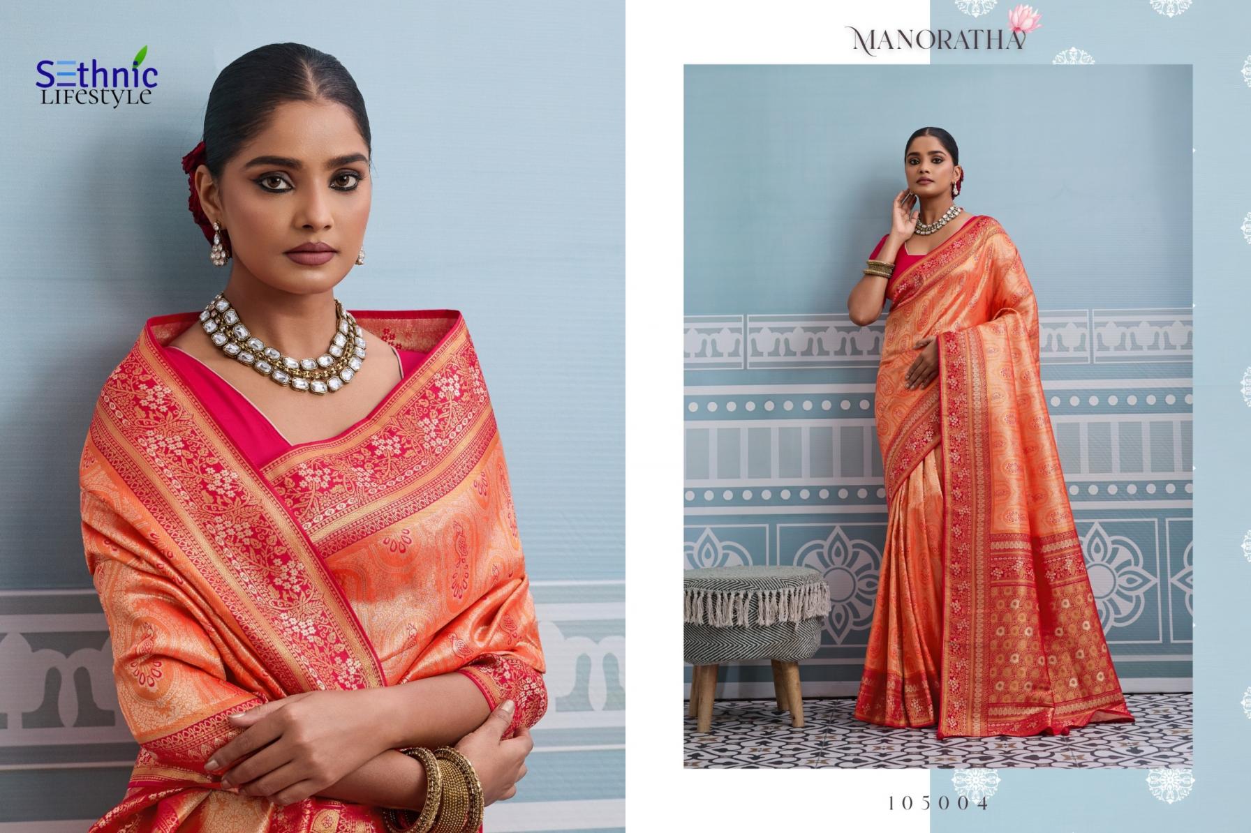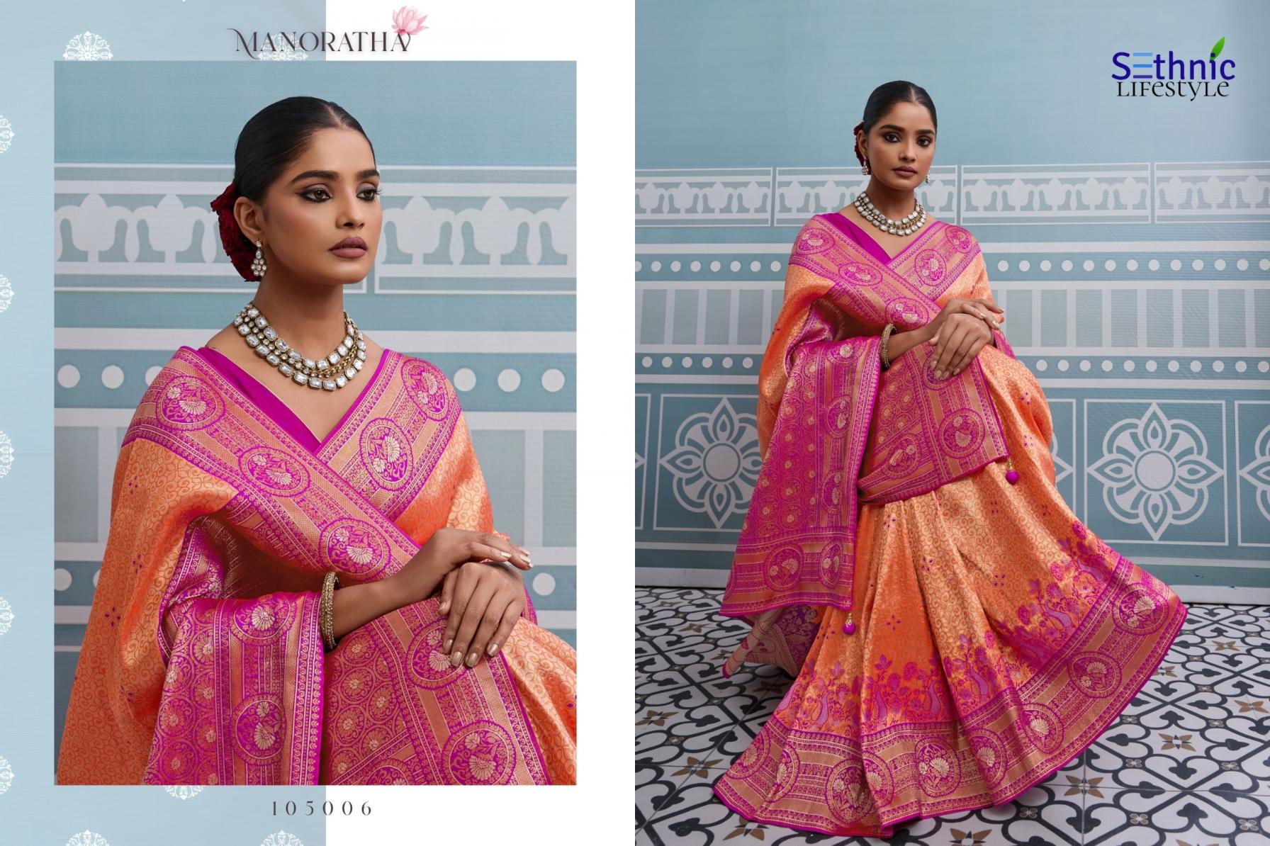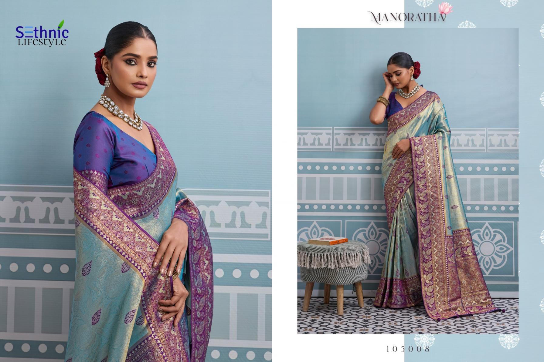 Looking for MANORATHA BY SETHNIC LIFESTYLE BEST KANJIVARAM SILK SAREE ONLINE Full Catalouge at Best Price? Buy Now MANORATHA BY SETHNIC LIFESTYLE BEST KANJIVARAM SILK SAREE ONLINE at Wholesale Rate of Rs 12950 with Total 10 Pcs from authroized dealer and supplier of Sethnic Lifestyle Brand. Cost of Each piece is just only Rs 1295 which is very low and affordable price to resale the product in your retail store. rrgandhi is Surat based Wholesale Supplier & Dealer of Sethnic Lifestyle Brand. Click on Brand name to Know more about Brand's products.