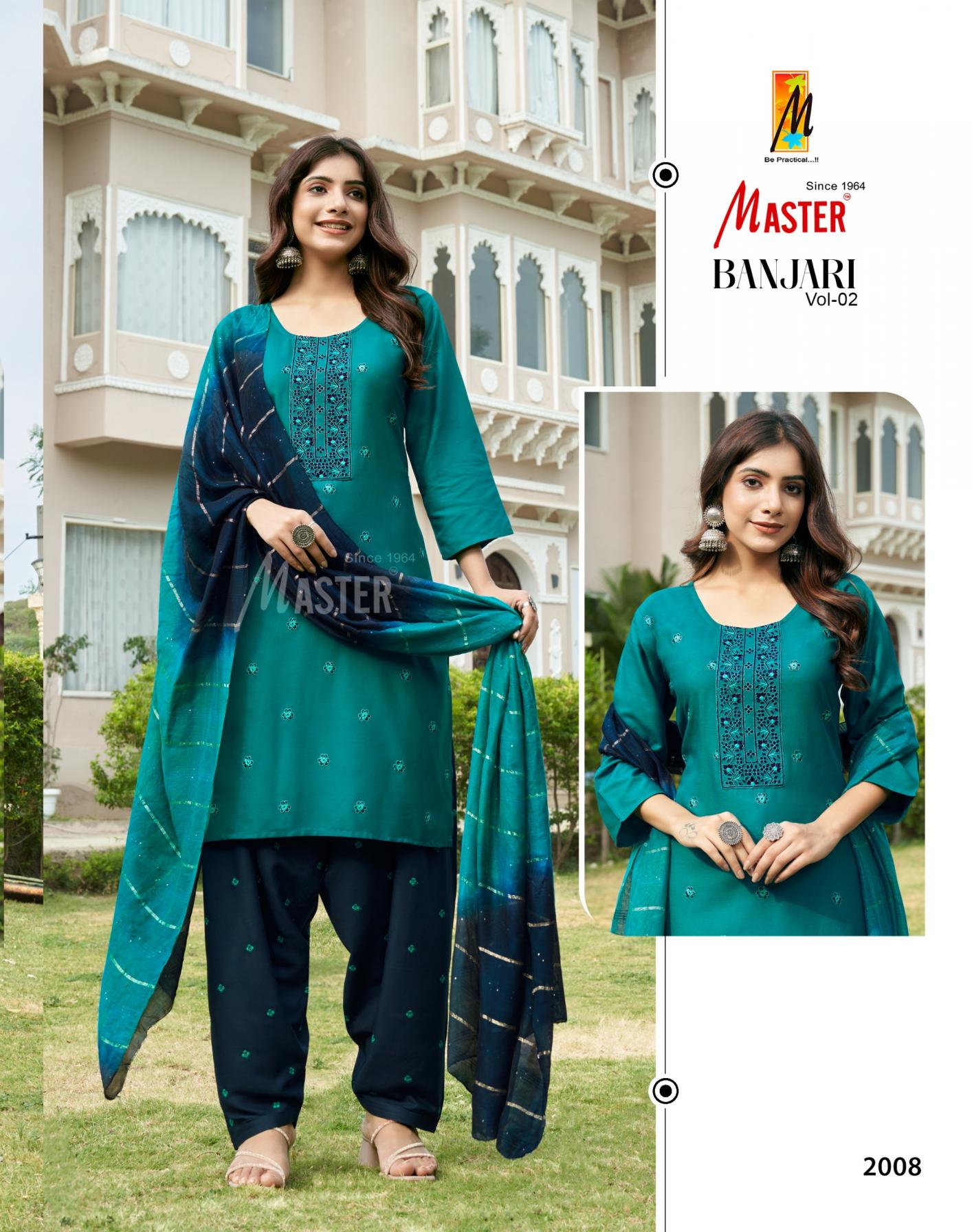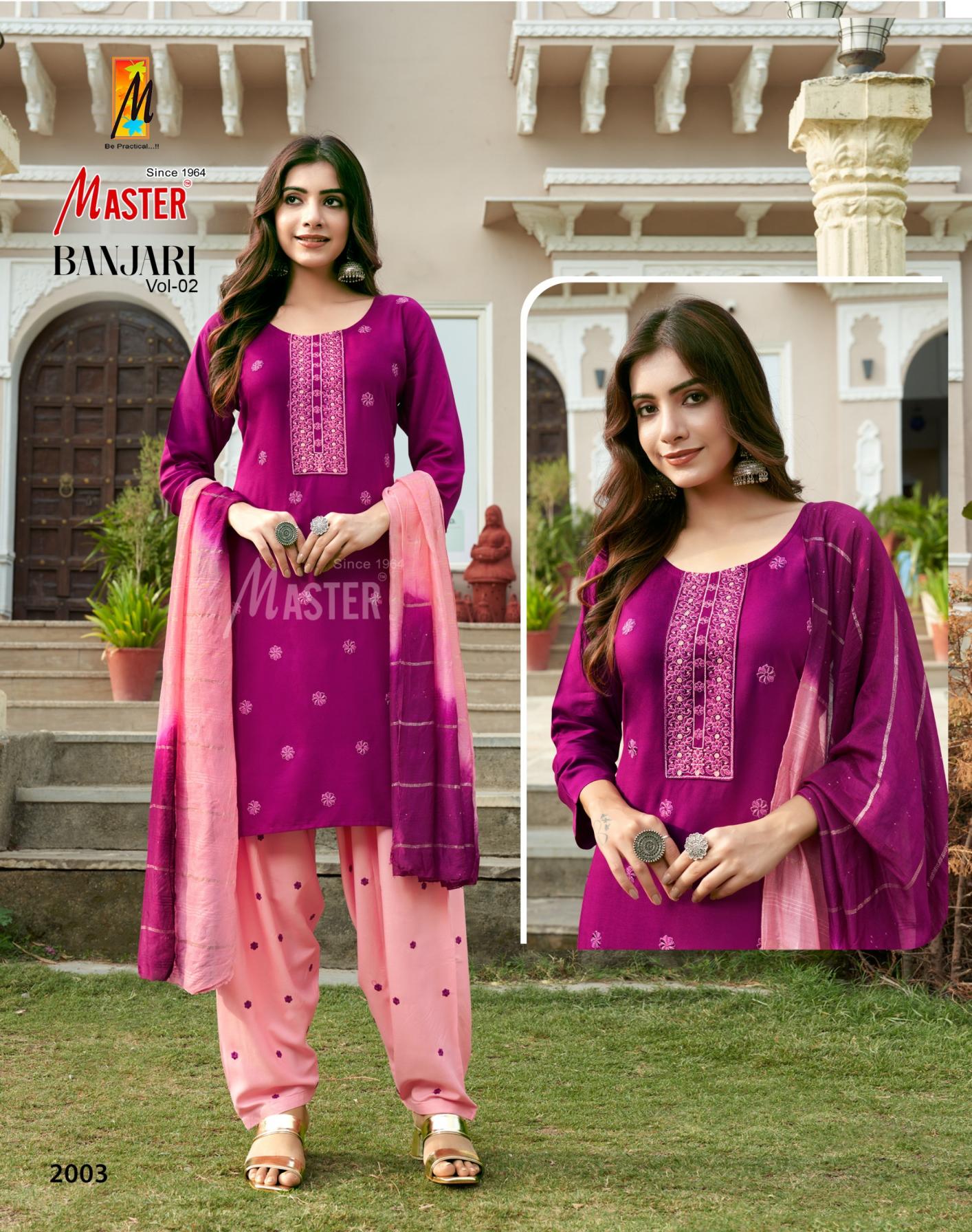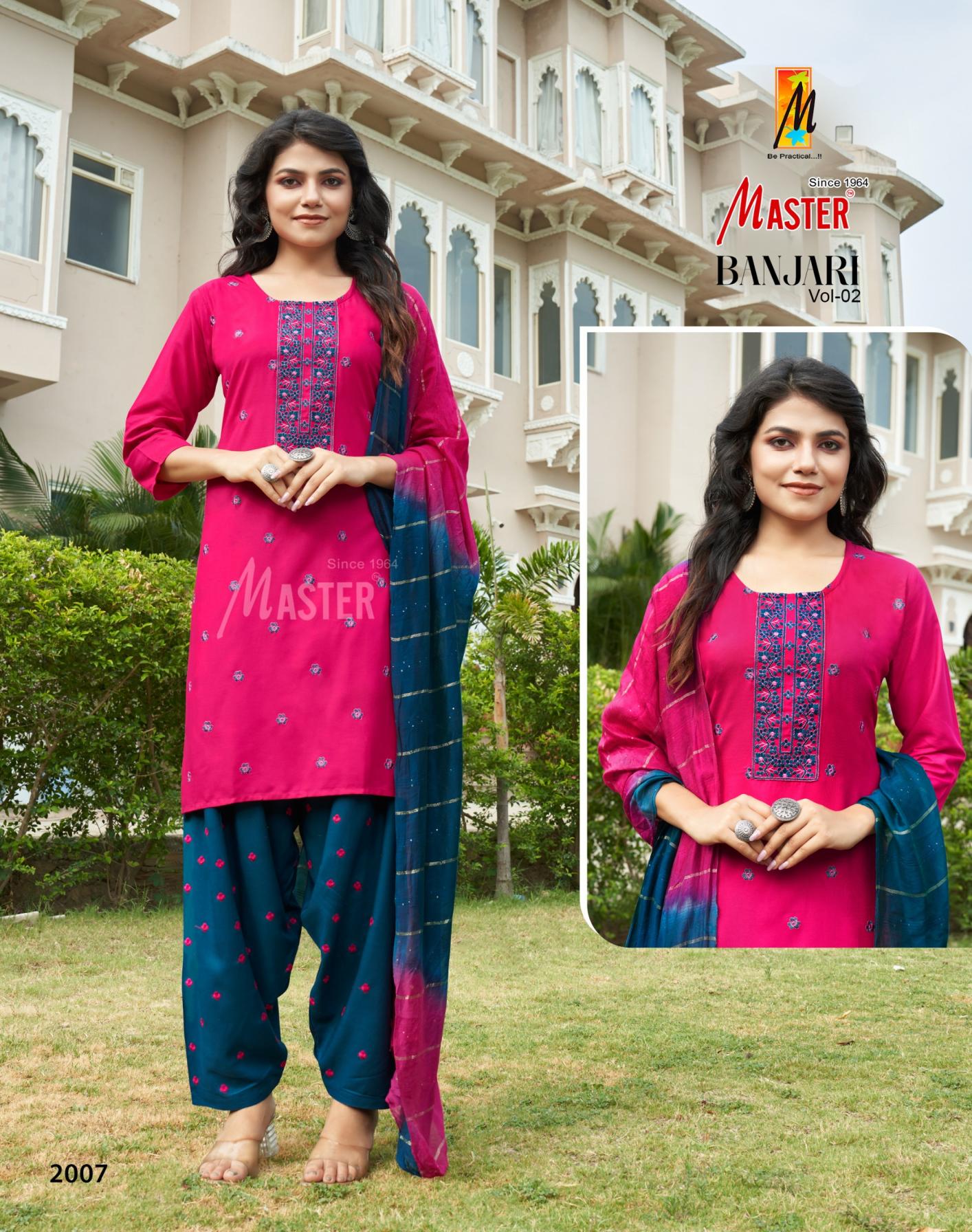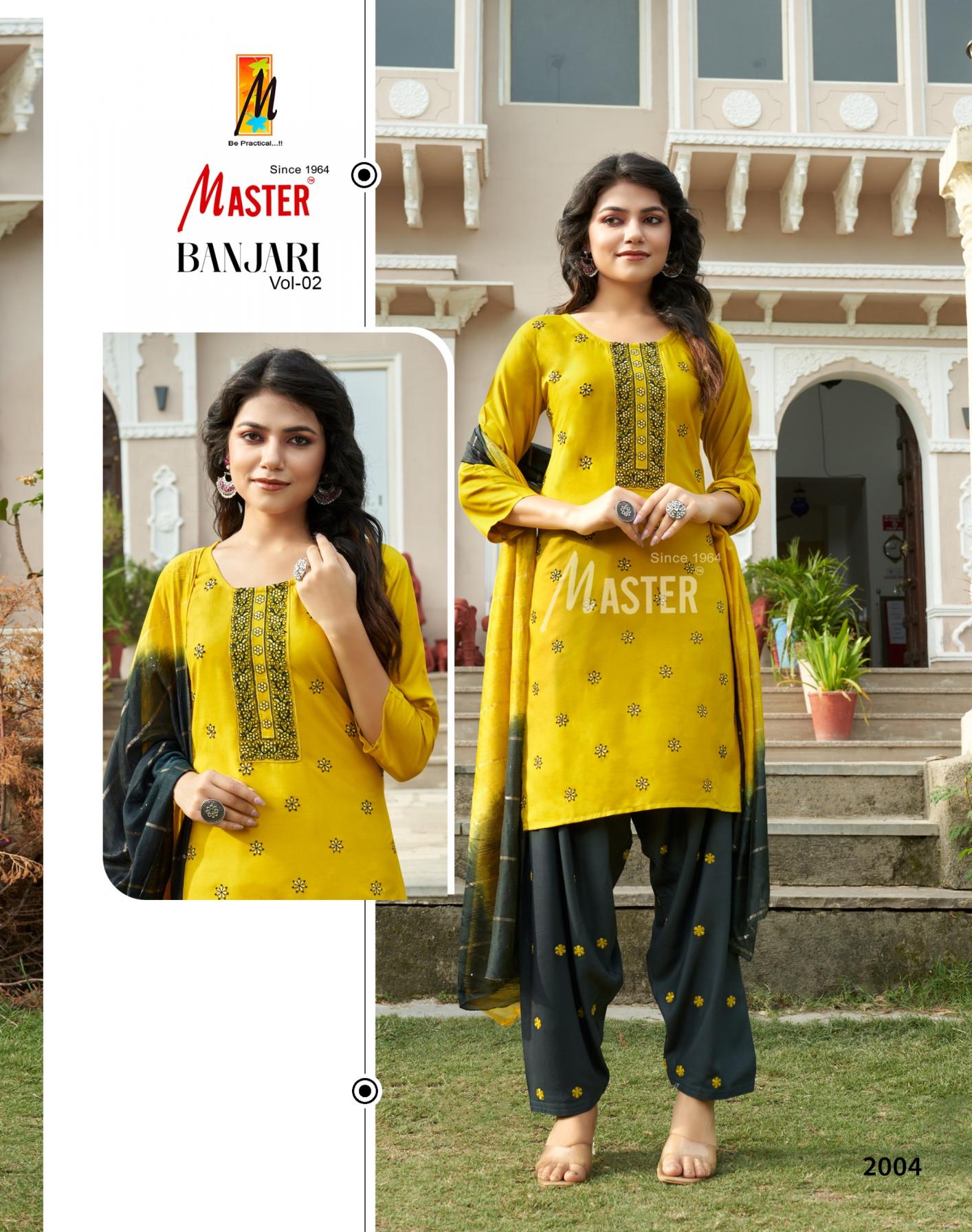 Looking for master banjari vol 2 readymade pretty look rayon patiyala suits Full Catalouge at Best Price? Buy Now master banjari vol 2 readymade pretty look rayon patiyala suits at Wholesale Rate of Rs 4800 with Total 8 Pcs from authroized dealer and supplier of Master Kurti Brand. Cost of Each piece is just only Rs 600 which is very low and affordable price to resale the product in your retail store. rrgandhi is Surat based Wholesale Supplier & Dealer of Master Kurti Brand. Click on Brand name to Know more about Brand's products.