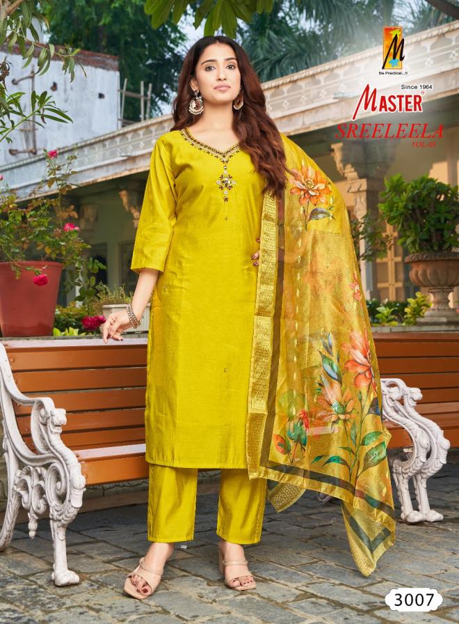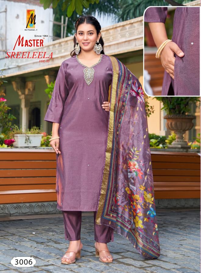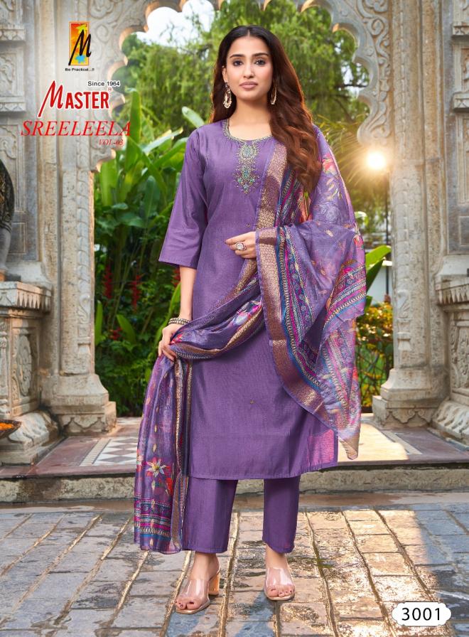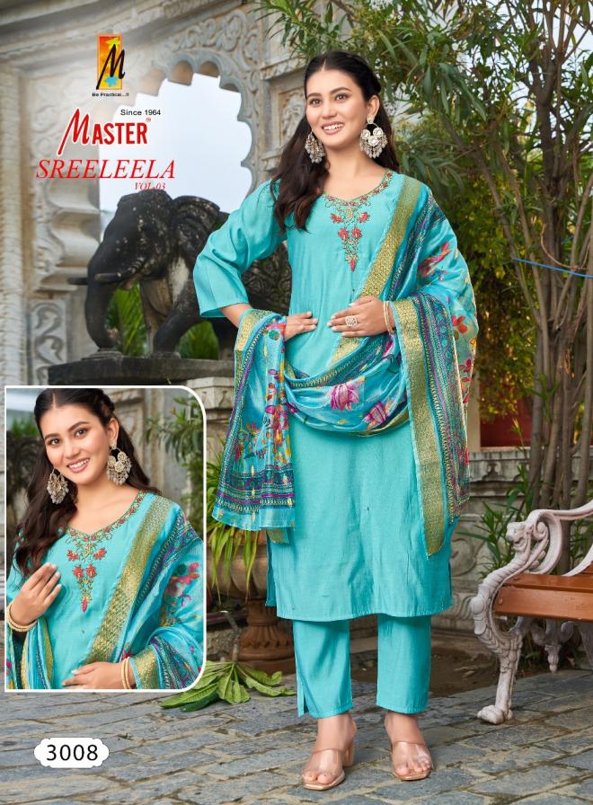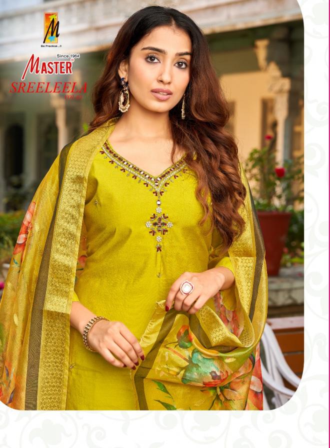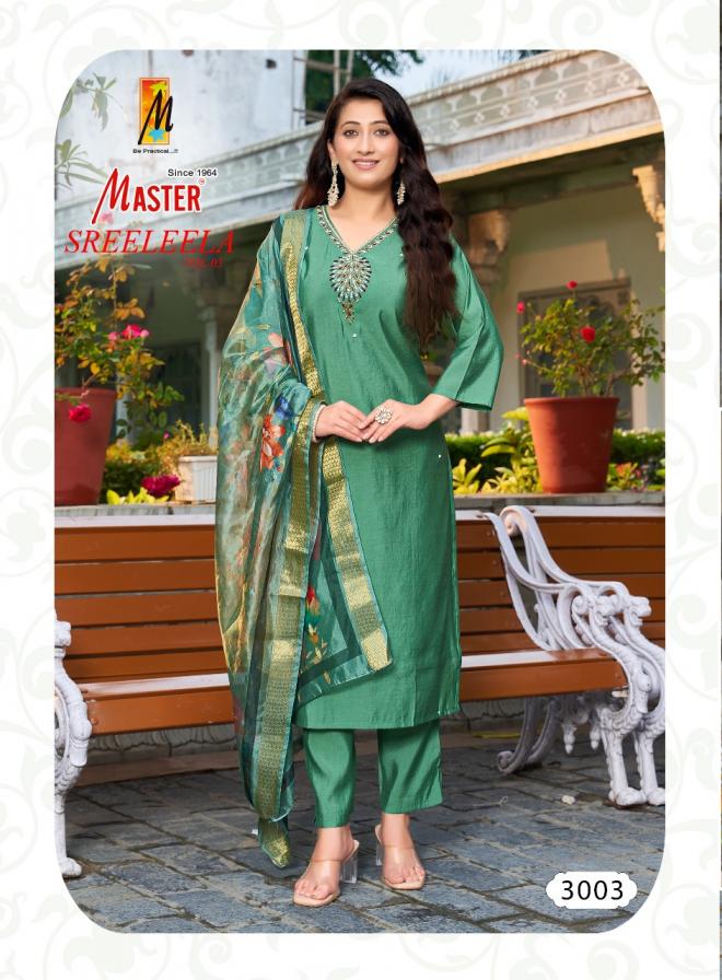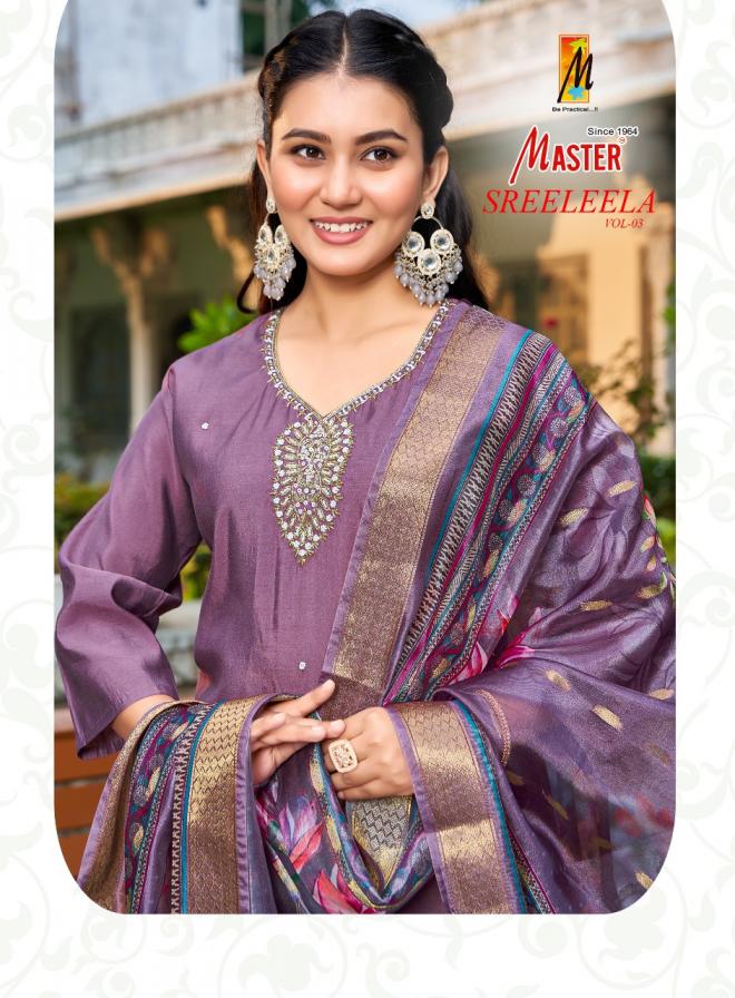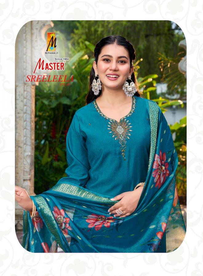 Looking for MASTER SREELEELA VOL 3 ROMAN SILK FULLY STITCH SUIT FOR WOMENS Full Catalouge at Best Price? Buy Now MASTER SREELEELA VOL 3 ROMAN SILK FULLY STITCH SUIT FOR WOMENS at Wholesale Rate of Rs 6000 with Total 8 Pcs from authroized dealer and supplier of Master Kurti Brand. Cost of Each piece is just only Rs 750 which is very low and affordable price to resale the product in your retail store. rrgandhi is Surat based Wholesale Supplier & Dealer of Master Kurti Brand. Click on Brand name to Know more about Brand's products.