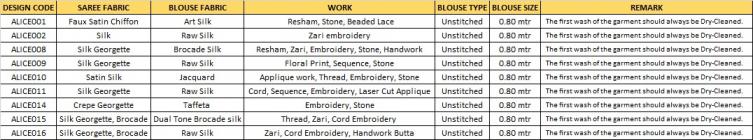 | Note | Stitching available on customer Requirment For Sarees , Salwar Kameez, Lehengha.(i.e M,L,XL,XXL). |