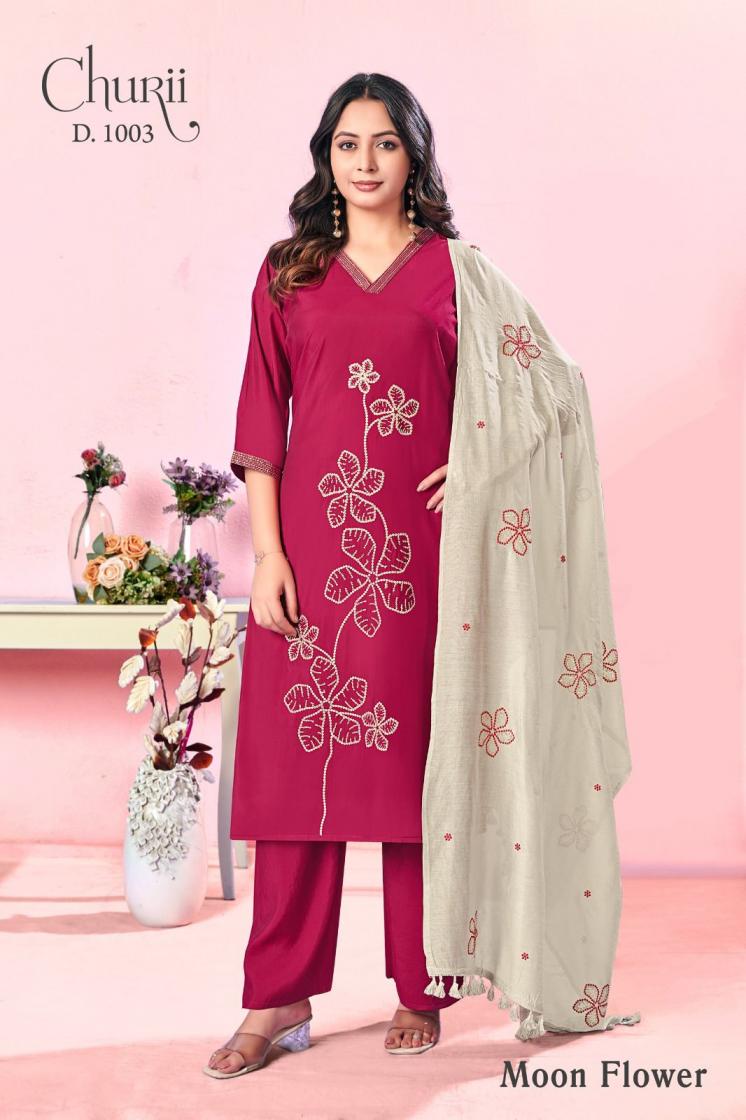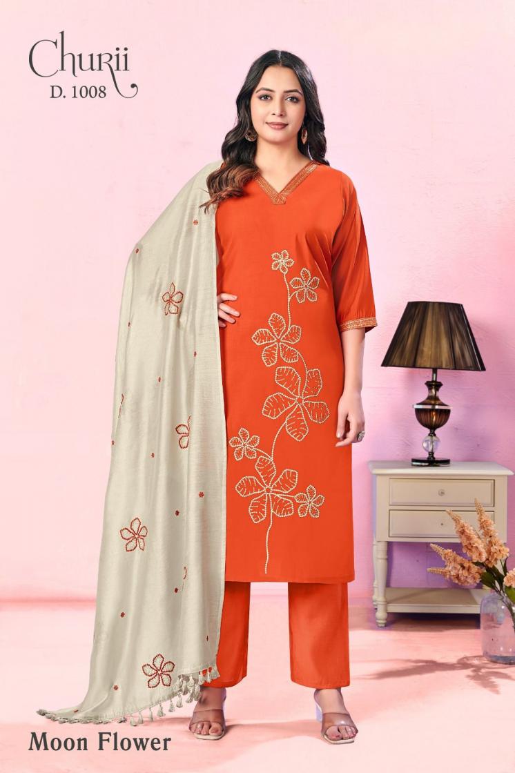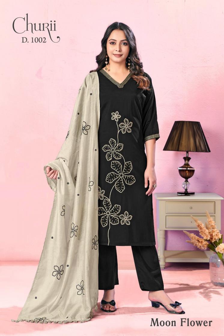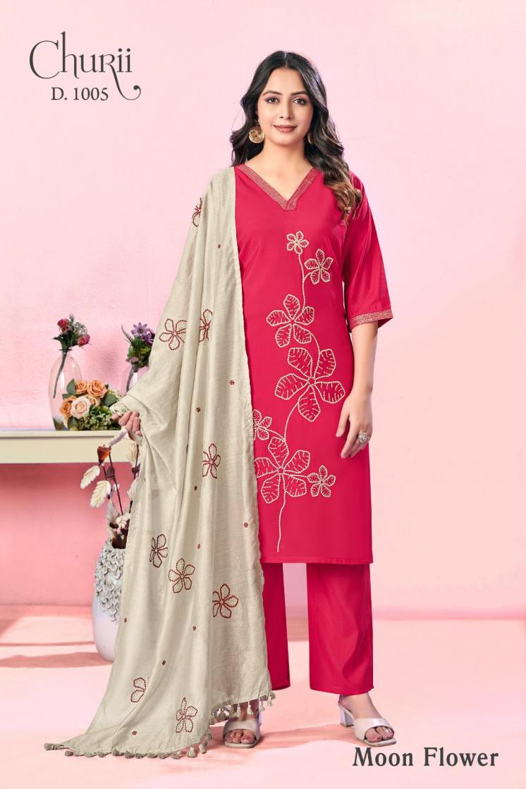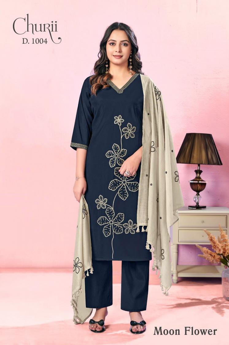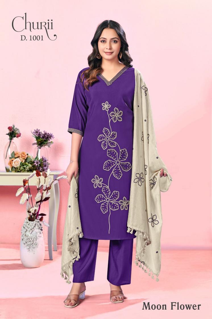 Looking for MOON FLOWER BY CHURII READYMADE VISCOSE ROMAN SILK COMBO SUIT Full Catalouge at Best Price? Buy Now MOON FLOWER BY CHURII READYMADE VISCOSE ROMAN SILK COMBO SUIT at Wholesale Rate of Rs 33120 with Total 32 Pcs from authroized dealer and supplier of Churii Brand. Cost of Each piece is just only Rs 1035 which is very low and affordable price to resale the product in your retail store. rrgandhi is Surat based Wholesale Supplier & Dealer of Churii Brand. Click on Brand name to Know more about Brand's products.
