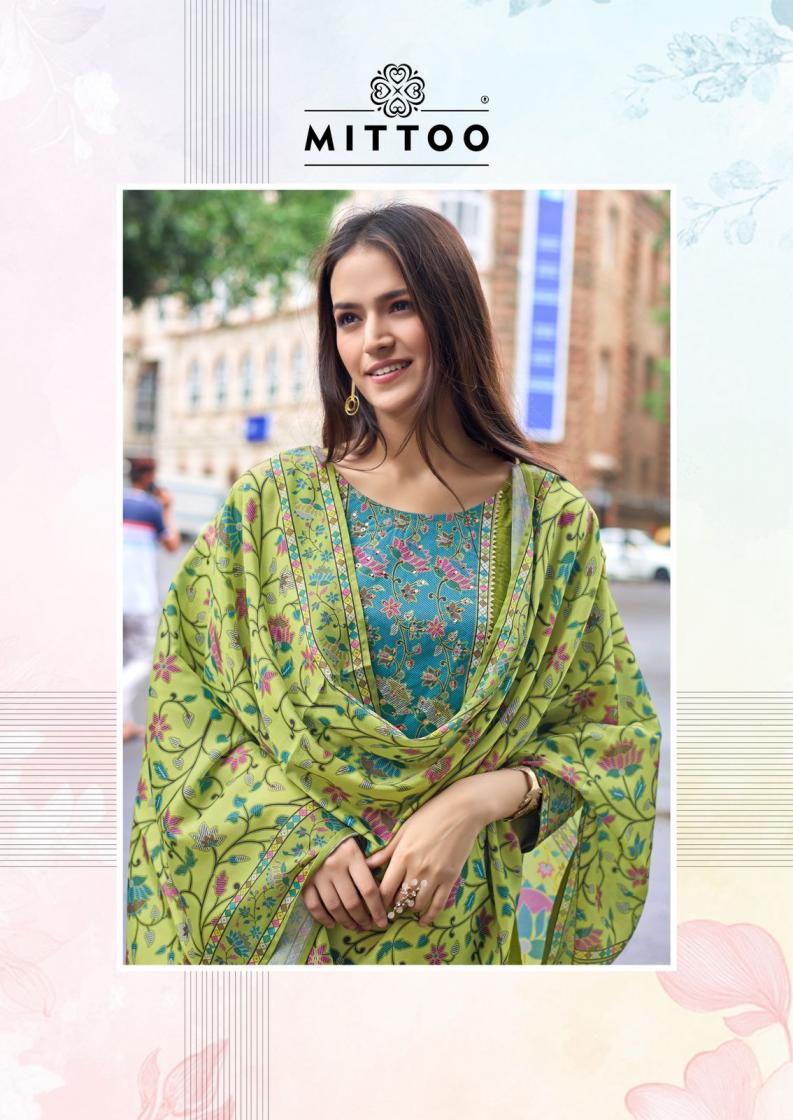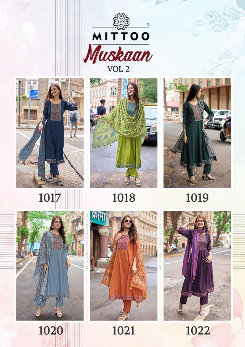 Looking for MUSKAAN VOL 2 BY MITTOO MODAL SILK FULL STITCH SUIT FOR WOMENS Full Catalouge at Best Price? Buy Now MUSKAAN VOL 2 BY MITTOO MODAL SILK FULL STITCH SUIT FOR WOMENS at Wholesale Rate of Rs 5970 with Total 6 Pcs from authroized dealer and supplier of Mittoo Brand. Cost of Each piece is just only Rs 995 which is very low and affordable price to resale the product in your retail store. rrgandhi is Surat based Wholesale Supplier & Dealer of Mittoo Brand. Click on Brand name to Know more about Brand's products.
