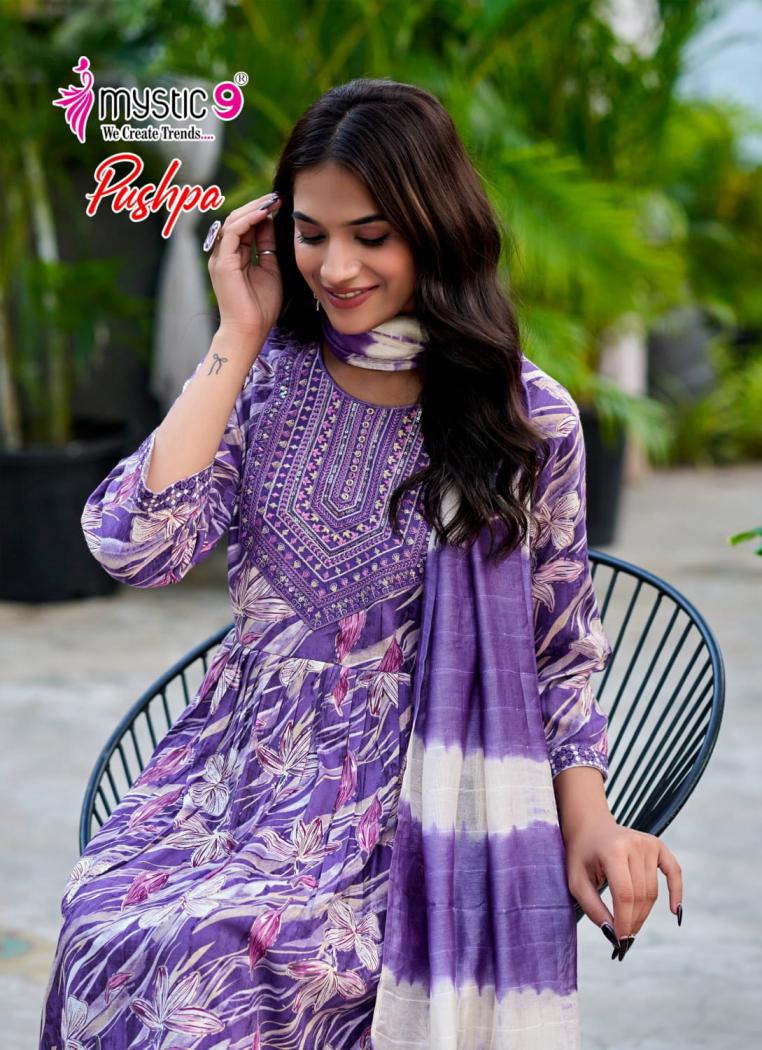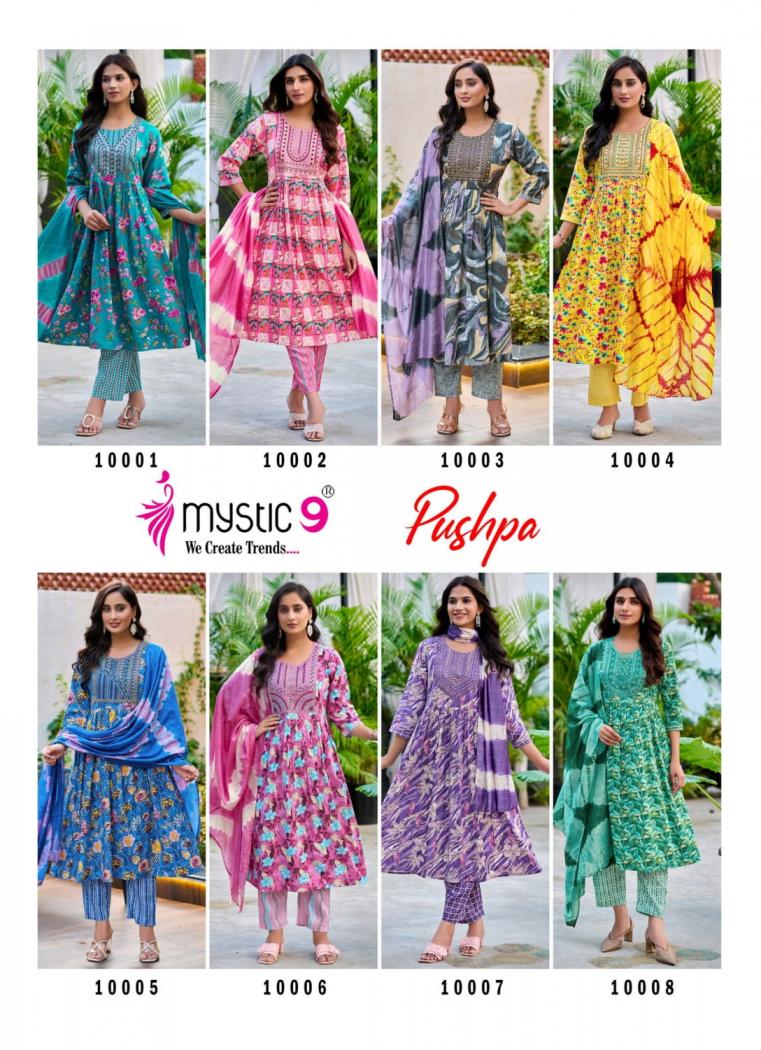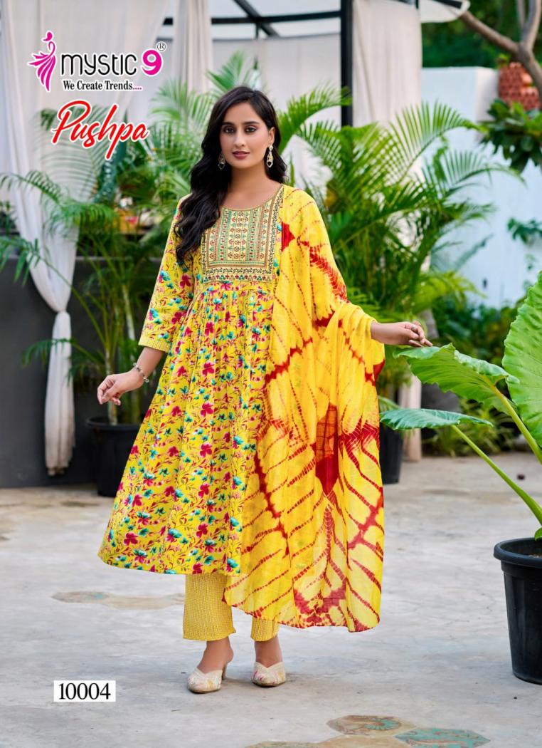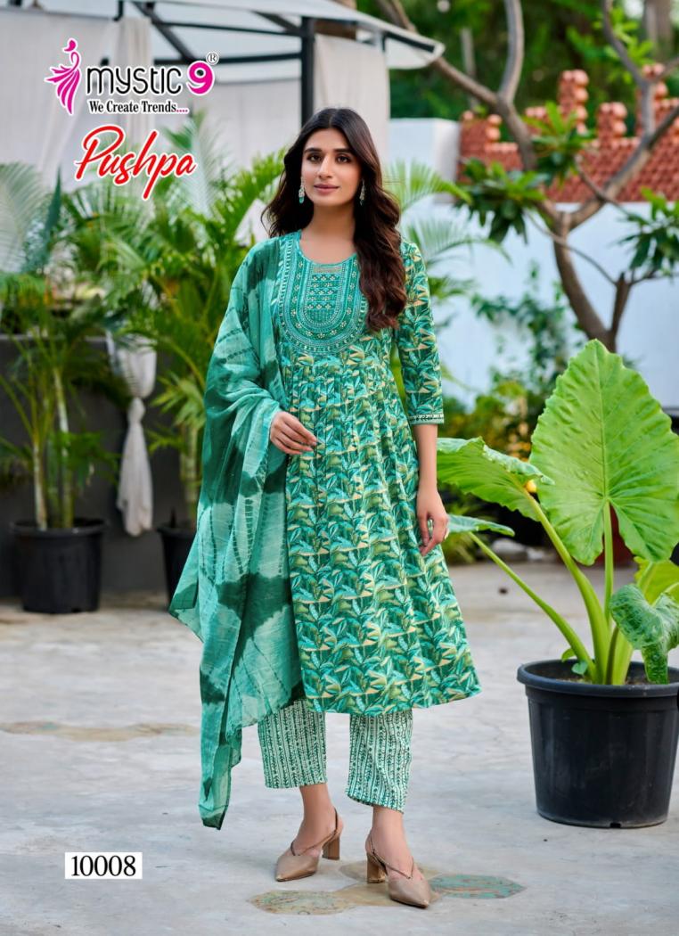 Looking for MYSTIC9 PUSHPA VOL 10 RAYON CAPSULE FULL STITCH 3PCS DRESS Full Catalouge at Best Price? Buy Now MYSTIC9 PUSHPA VOL 10 RAYON CAPSULE FULL STITCH 3PCS DRESS at Wholesale Rate of Rs 4600 with Total 8 Pcs from authroized dealer and supplier of Mystic9 Brand. Cost of Each piece is just only Rs 575 which is very low and affordable price to resale the product in your retail store. rrgandhi is Surat based Wholesale Supplier & Dealer of Mystic9 Brand. Click on Brand name to Know more about Brand's products.