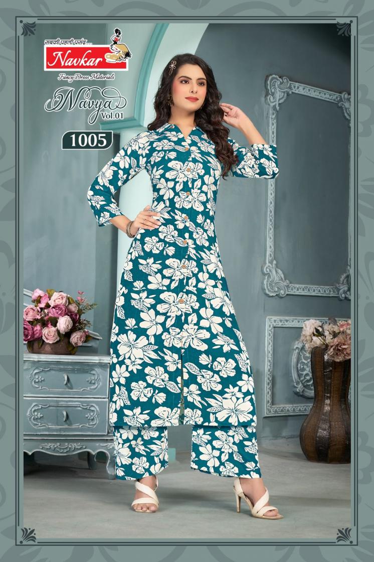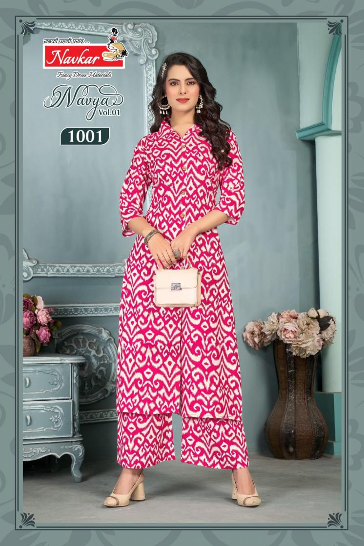 Looking for NAVKAR NAVYA VOL 1 READYMADE RAYON FANCY CO-ORD SETS Full Catalouge at Best Price? Buy Now NAVKAR NAVYA VOL 1 READYMADE RAYON FANCY CO-ORD SETS at Wholesale Rate of Rs 2960 with Total 8 Pcs from authroized dealer and supplier of Navkar Brand. Cost of Each piece is just only Rs 370 which is very low and affordable price to resale the product in your retail store. rrgandhi is Surat based Wholesale Supplier & Dealer of Navkar Brand. Click on Brand name to Know more about Brand's products.