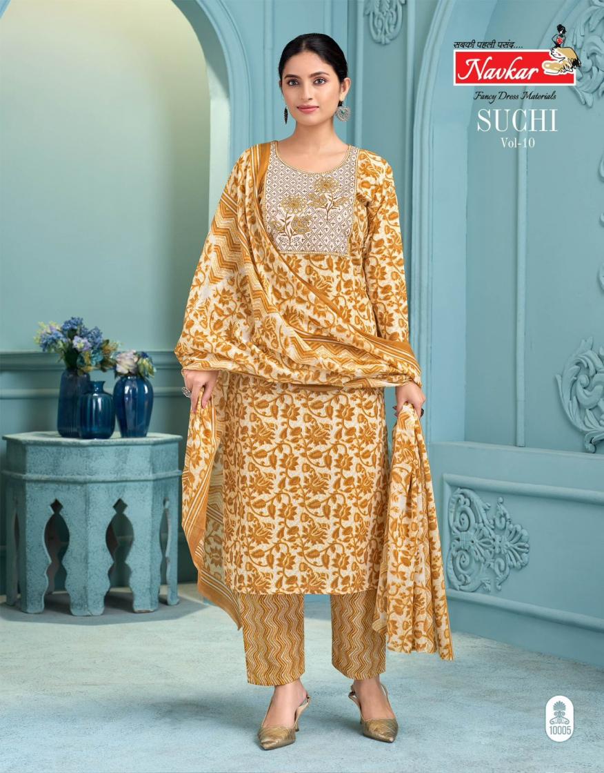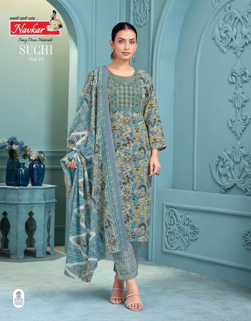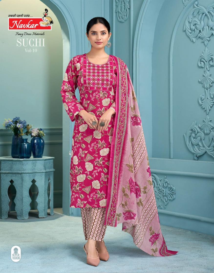 Looking for NAVKAR SUCHI VOL 10 HIT DESIGN COTTON FULLY STITCH 3PCS DRESS Full Catalouge at Best Price? Buy Now NAVKAR SUCHI VOL 10 HIT DESIGN COTTON FULLY STITCH 3PCS DRESS at Wholesale Rate of Rs 3800 with Total 8 Pcs from authroized dealer and supplier of Navkar Brand. Cost of Each piece is just only Rs 475 which is very low and affordable price to resale the product in your retail store. rrgandhi is Surat based Wholesale Supplier & Dealer of Navkar Brand. Click on Brand name to Know more about Brand's products.