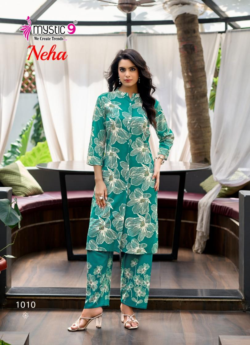 Looking for neha vol 1 by mystic9 rayon readymade attractive co-ord sets Full Catalouge at Best Price? Buy Now neha vol 1 by mystic9 rayon readymade attractive co-ord sets at Wholesale Rate of Rs 4550 with Total 10 Pcs from authroized dealer and supplier of Mystic9 Brand. Cost of Each piece is just only Rs 455 which is very low and affordable price to resale the product in your retail store. rrgandhi is Surat based Wholesale Supplier & Dealer of Mystic9 Brand. Click on Brand name to Know more about Brand's products.