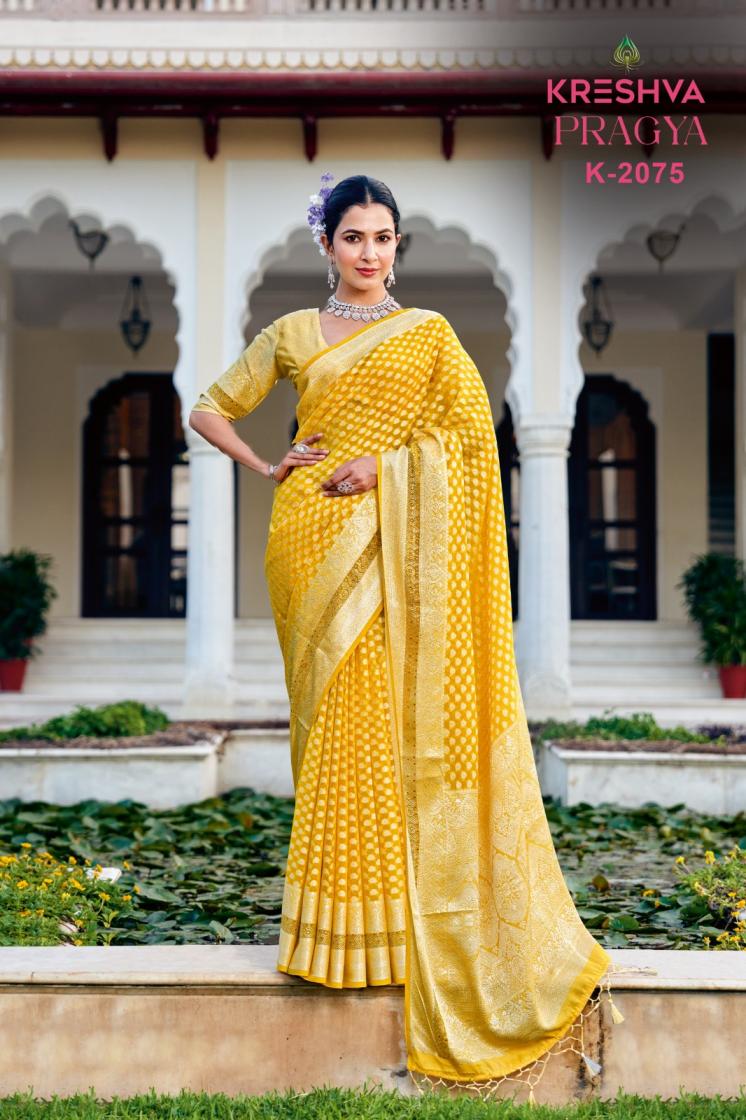 Looking for PRAGYA BY KRESHVA AMAZING GEORGETTE SAREES Full Catalouge at Best Price? Buy Now PRAGYA BY KRESHVA AMAZING GEORGETTE SAREES at Wholesale Rate of Rs 8970 with Total 6 Pcs from authroized dealer and supplier of Kreshva Brand. Cost of Each piece is just only Rs 1495 which is very low and affordable price to resale the product in your retail store. rrgandhi is Surat based Wholesale Supplier & Dealer of Kreshva Brand. Click on Brand name to Know more about Brand's products.