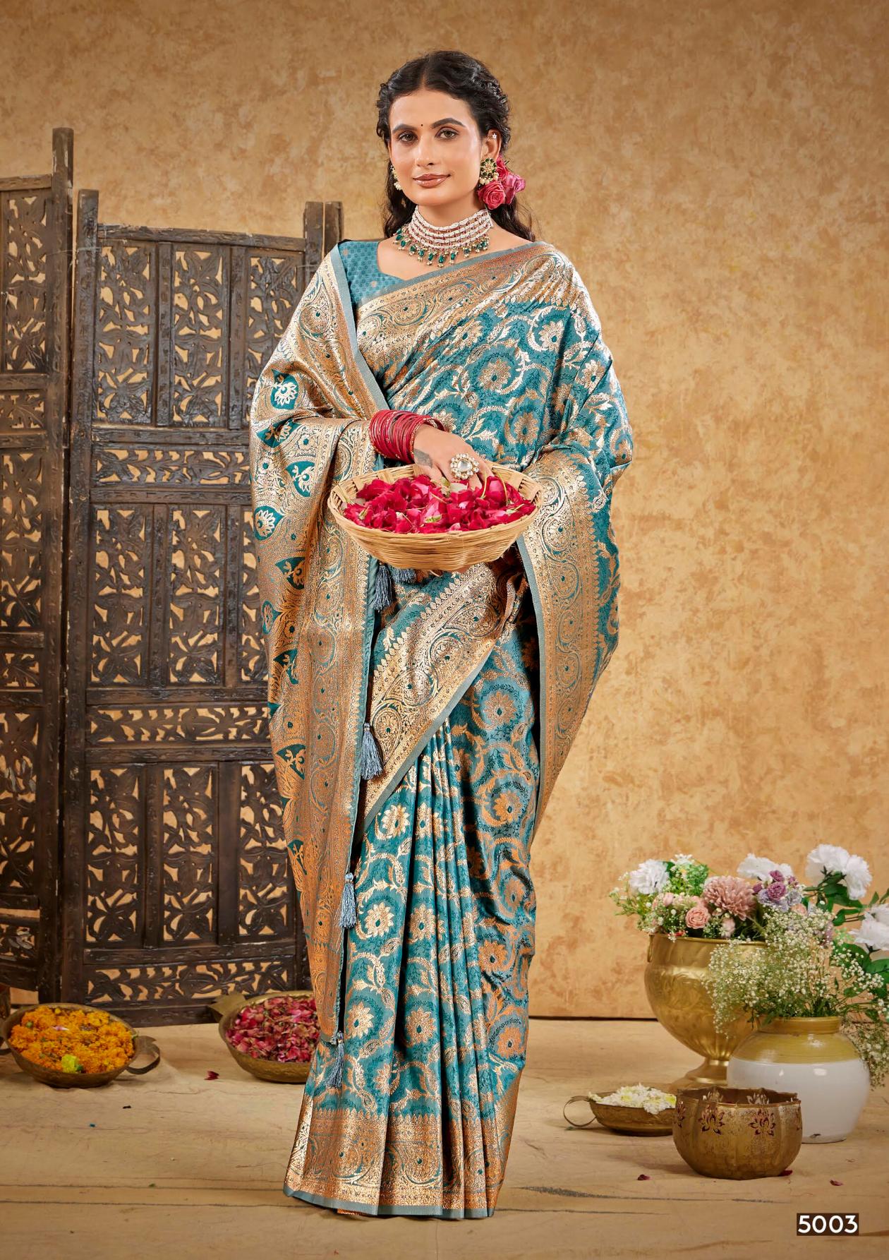 Looking for Preet bahar saroski Saroj vol.5 semi satin silk Full Catalouge at Best Price? Buy Now Preet bahar saroski Saroj vol.5 semi satin silk at Wholesale Rate of Rs 3480 with Total 4 Pcs from authroized dealer and supplier of Saroj Textiles Brand. Cost of Each piece is just only Rs 870 which is very low and affordable price to resale the product in your retail store. rrgandhi is Surat based Wholesale Supplier & Dealer of Saroj Textiles Brand. Click on Brand name to Know more about Brand's products.