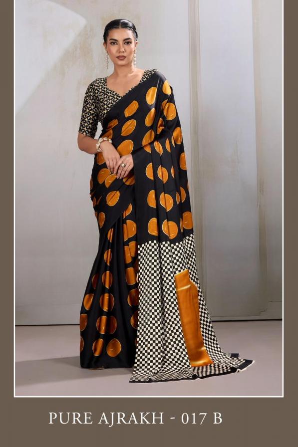 Looking for PURE AJRAKH 017 BY RAJTEX MODAL SATIN STYLISH SAREES Full Catalouge at Best Price? Buy Now PURE AJRAKH 017 BY RAJTEX MODAL SATIN STYLISH SAREES at Wholesale Rate of Rs 3330 with Total 6 Pcs from authroized dealer and supplier of Rajtex Brand. Cost of Each piece is just only Rs 555 which is very low and affordable price to resale the product in your retail store. rrgandhi is Surat based Wholesale Supplier & Dealer of Rajtex Brand. Click on Brand name to Know more about Brand's products.
