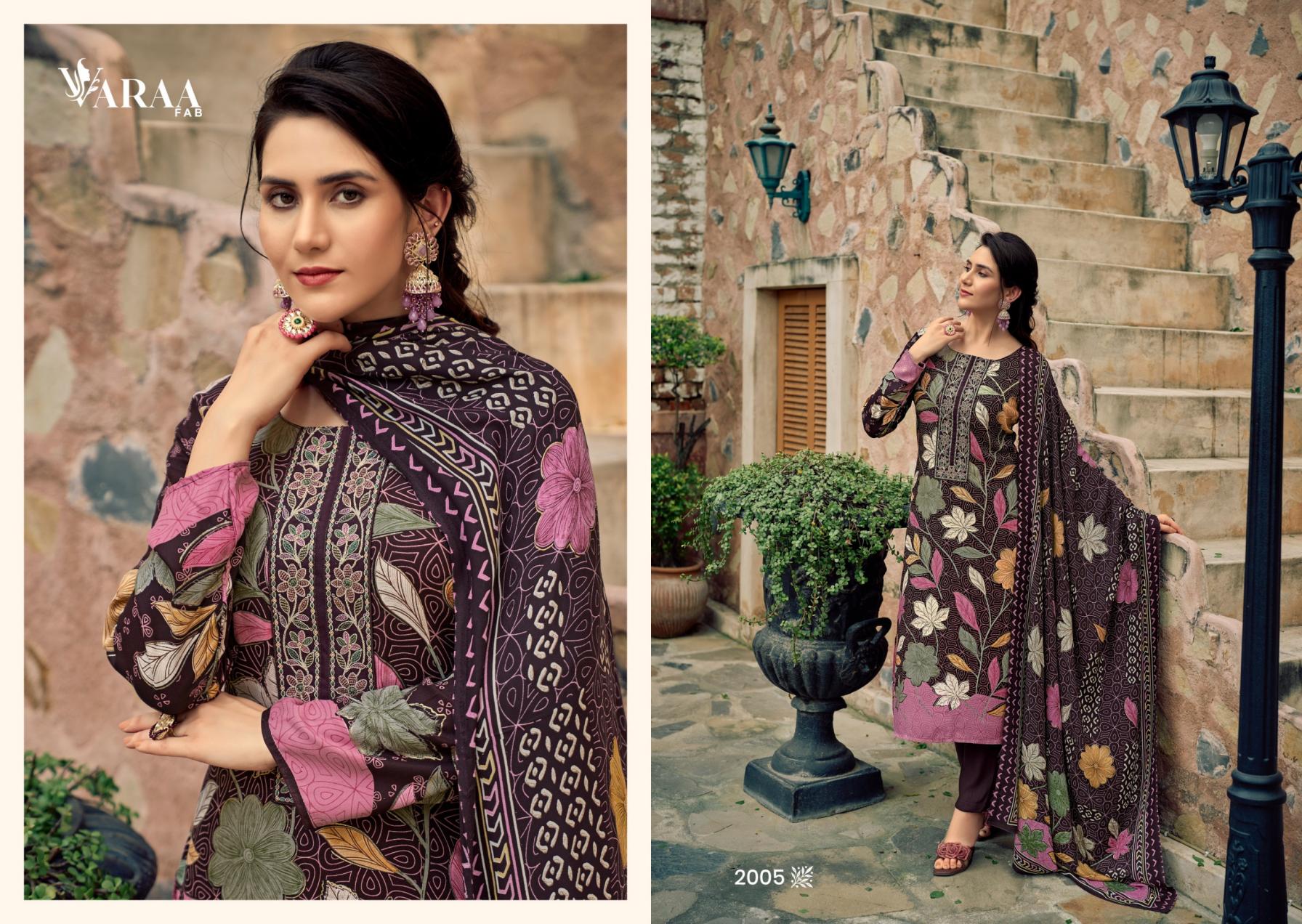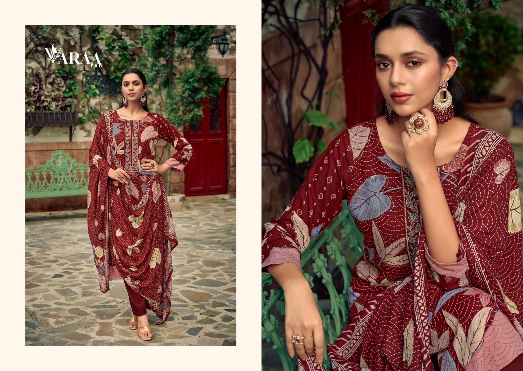 Looking for PVARAA FAB ARIZAAD VOL 2 VISCOSE PASHMINA UNSTITCH SUITS Full Catalouge at Best Price? Buy Now PVARAA FAB ARIZAAD VOL 2 VISCOSE PASHMINA UNSTITCH SUITS at Wholesale Rate of Rs 7170 with Total 6 Pcs from authroized dealer and supplier of Varaa Fab Brand. Cost of Each piece is just only Rs 1195 which is very low and affordable price to resale the product in your retail store. rrgandhi is Surat based Wholesale Supplier & Dealer of Varaa Fab Brand. Click on Brand name to Know more about Brand's products.