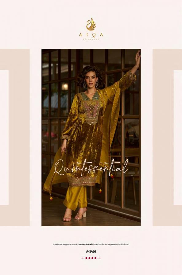 Looking for QEAILZ BY AIQA LIFESTYLE VISCOSE VELVET WINTER DREES MATERIALS Full Catalouge at Best Price? Buy Now QEAILZ BY AIQA LIFESTYLE VISCOSE VELVET WINTER DREES MATERIALS at Wholesale Rate of Rs 21426 with Total 6 Pcs from authroized dealer and supplier of Aiqa Lifestyle Brand. Cost of Each piece is just only Rs 3571 which is very low and affordable price to resale the product in your retail store. rrgandhi is Surat based Wholesale Supplier & Dealer of Aiqa Lifestyle Brand. Click on Brand name to Know more about Brand's products.