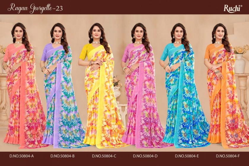 Looking for RAGAA GEORGETTE VOL 23 BY RUCHI GEORGETTE FANCY SAREES Full Catalouge at Best Price? Buy Now RAGAA GEORGETTE VOL 23 BY RUCHI GEORGETTE FANCY SAREES at Wholesale Rate of Rs 5676 with Total 12 Pcs from authroized dealer and supplier of Ruchi Brand. Cost of Each piece is just only Rs 473 which is very low and affordable price to resale the product in your retail store. rrgandhi is Surat based Wholesale Supplier & Dealer of Ruchi Brand. Click on Brand name to Know more about Brand's products.