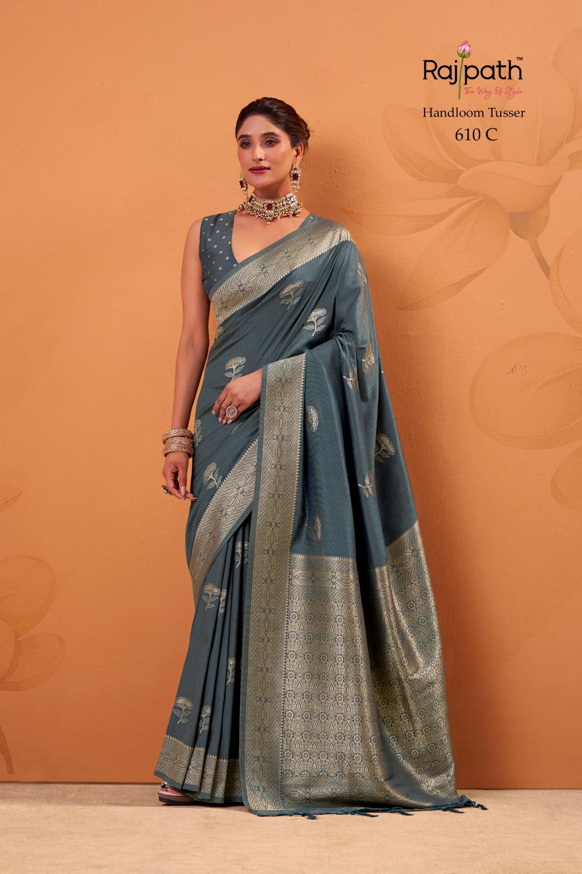Looking for RAJPATH DHATU SILK UNIQUE HANDLOOM TUSSER SAREE ONLINE Full Catalouge at Best Price? Buy Now RAJPATH DHATU SILK UNIQUE HANDLOOM TUSSER SAREE ONLINE at Wholesale Rate of Rs 11960 with Total 8 Pcs from authroized dealer and supplier of Rajpath Brand. Cost of Each piece is just only Rs 1495 which is very low and affordable price to resale the product in your retail store. rrgandhi is Surat based Wholesale Supplier & Dealer of Rajpath Brand. Click on Brand name to Know more about Brand's products.