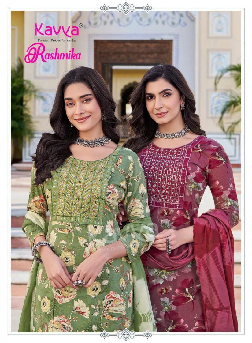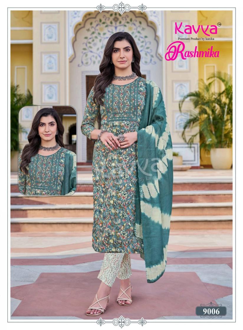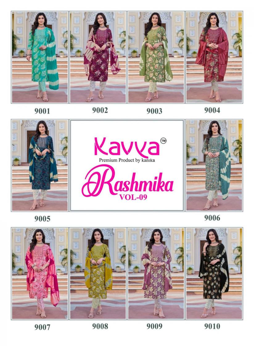 Looking for RASHMIKA VOL 9 BY KAVYA RAYON FULL STITCH PRETTY SUITS Full Catalouge at Best Price? Buy Now RASHMIKA VOL 9 BY KAVYA RAYON FULL STITCH PRETTY SUITS at Wholesale Rate of Rs 5000 with Total 10 Pcs from authroized dealer and supplier of Kavya by Kanika Brand. Cost of Each piece is just only Rs 500 which is very low and affordable price to resale the product in your retail store. rrgandhi is Surat based Wholesale Supplier & Dealer of Kavya by Kanika Brand. Click on Brand name to Know more about Brand's products.